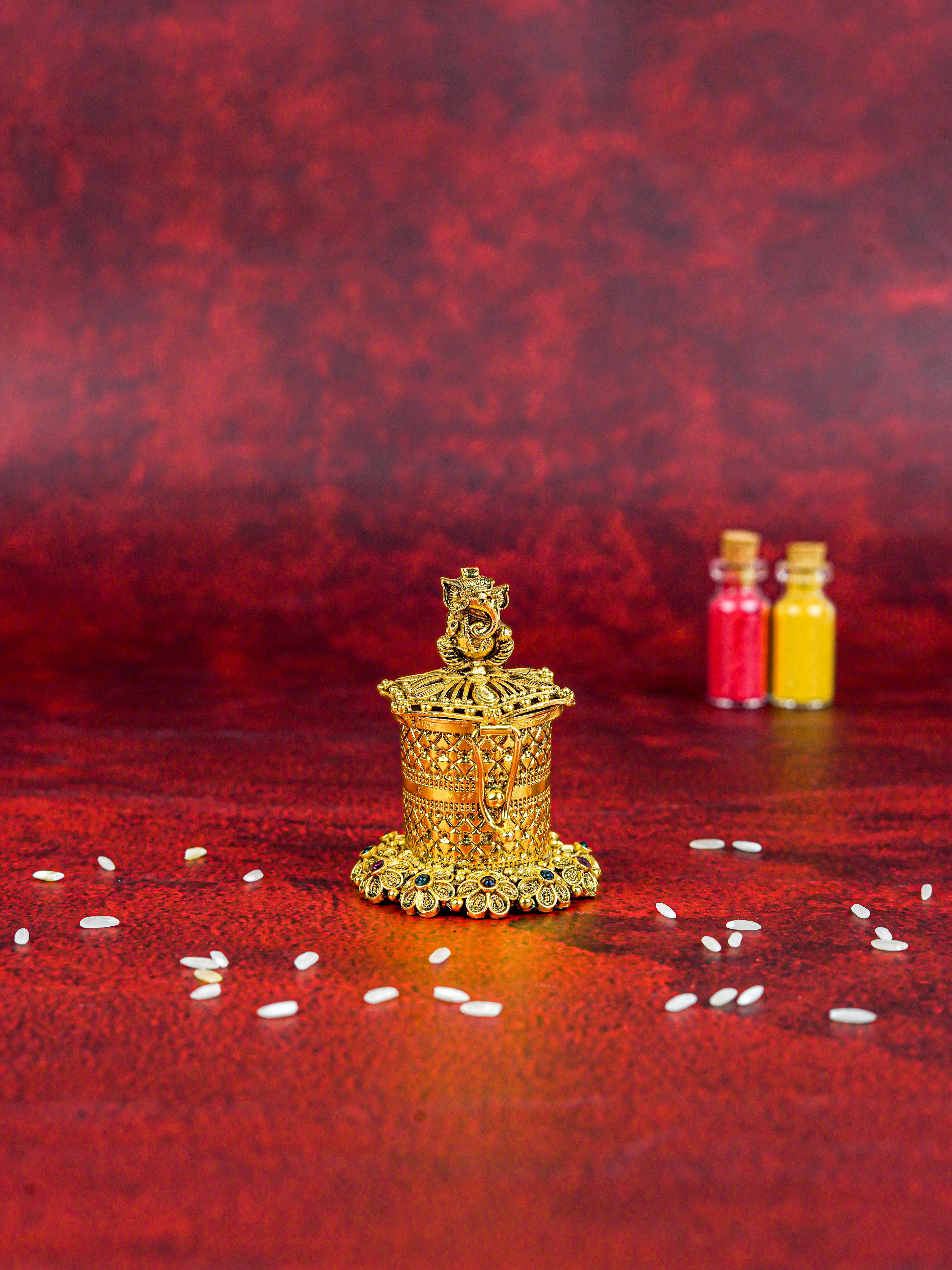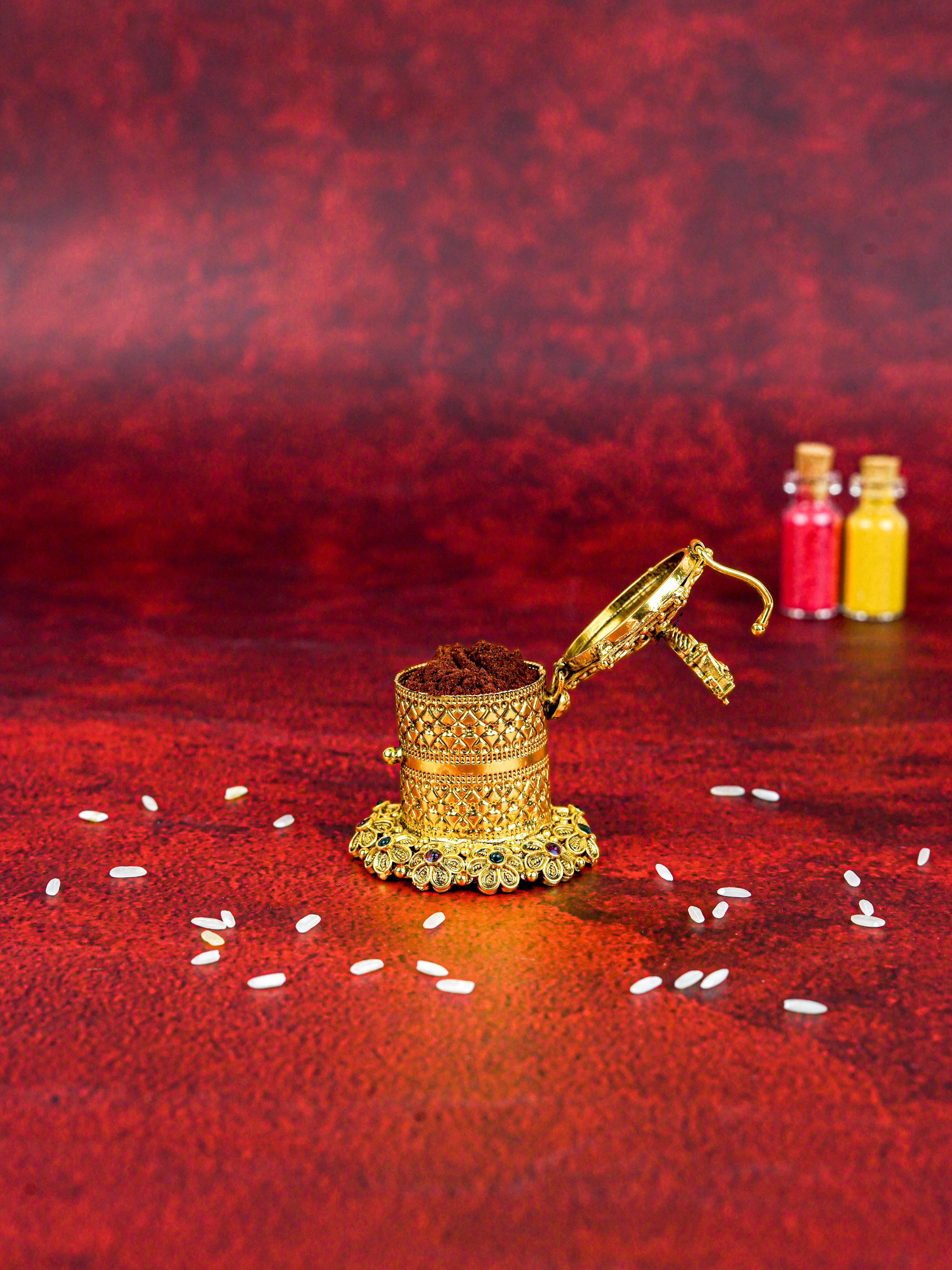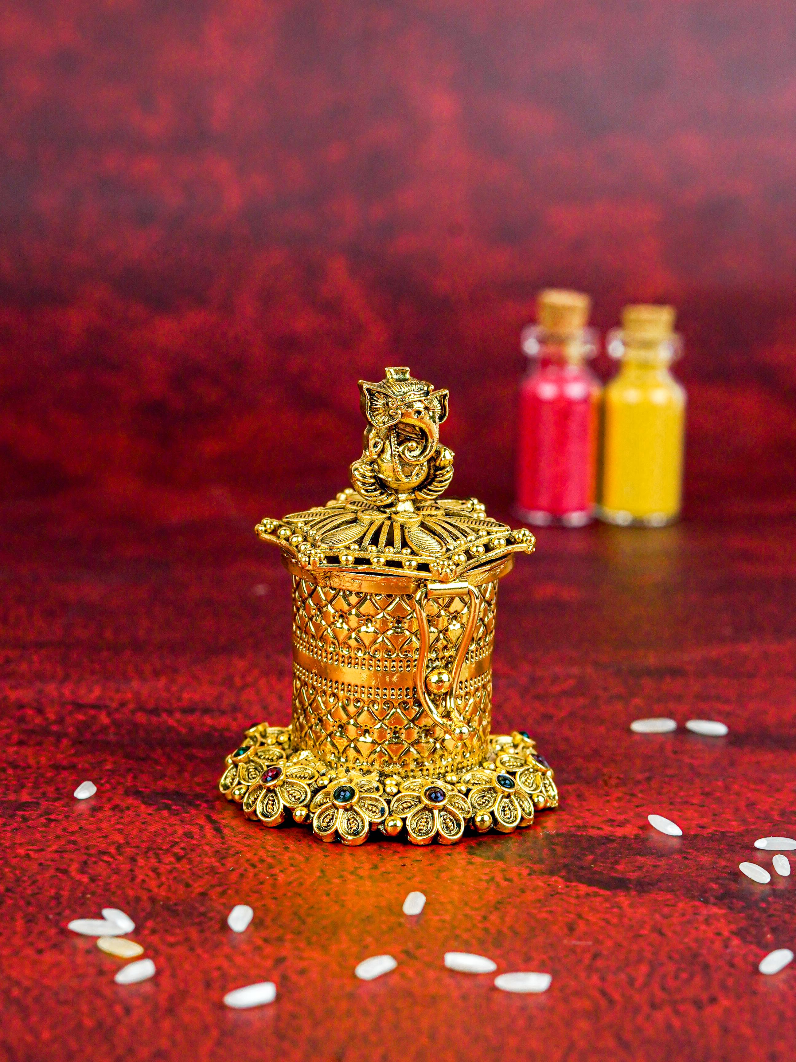 - Add Elegance to Your Puja Room with our Exquisite Ganesha Design Kumkum Holder.