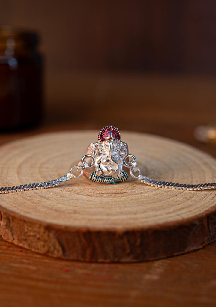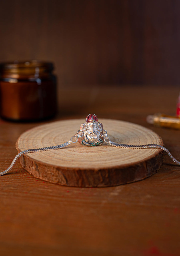 Designer Rakhi - Silver - Ganesha - WBG1887-2