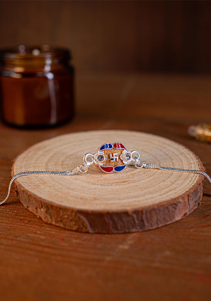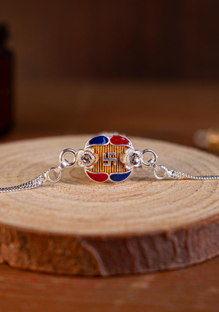 Designer Rakhi - Silver - Swastik - WBG1887-3