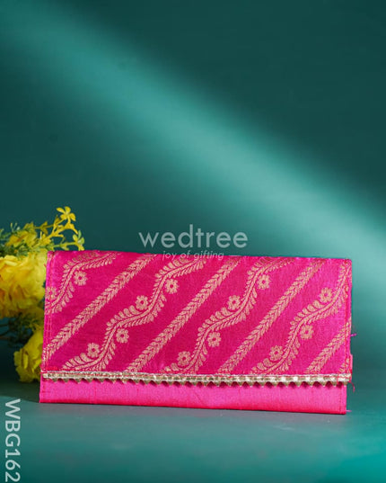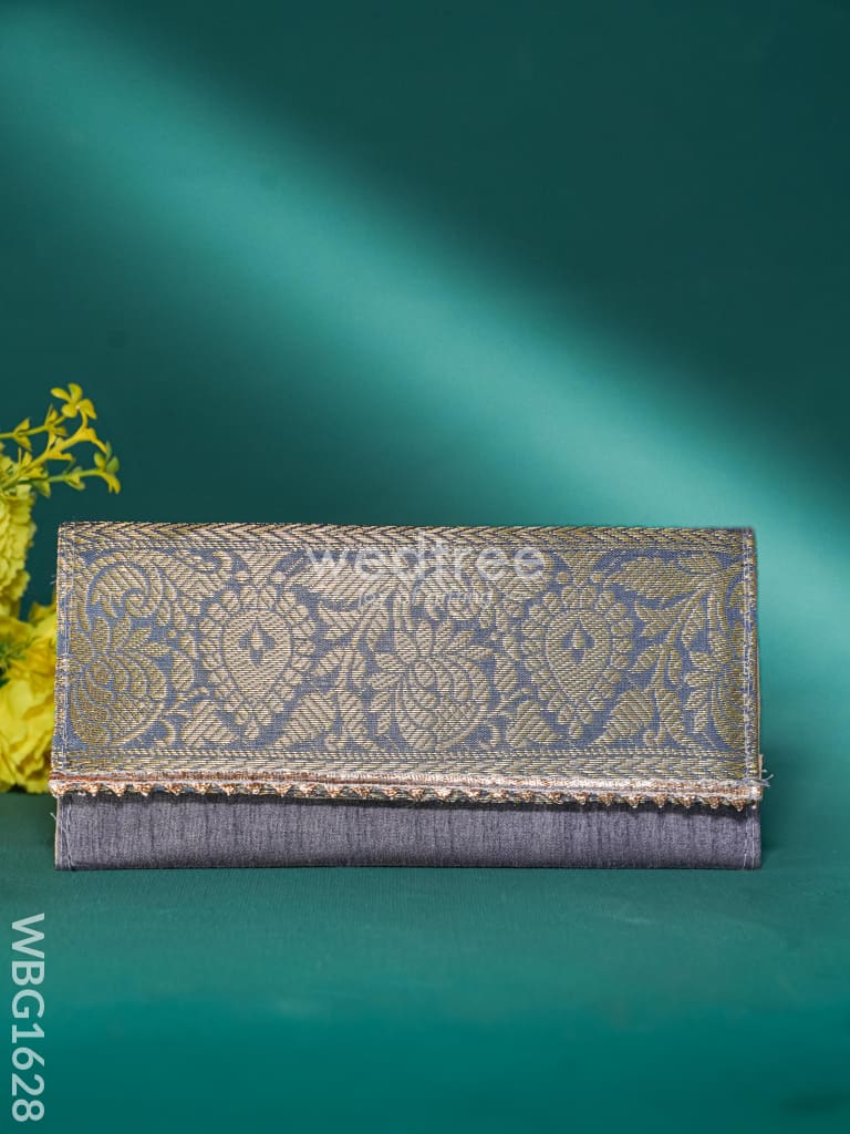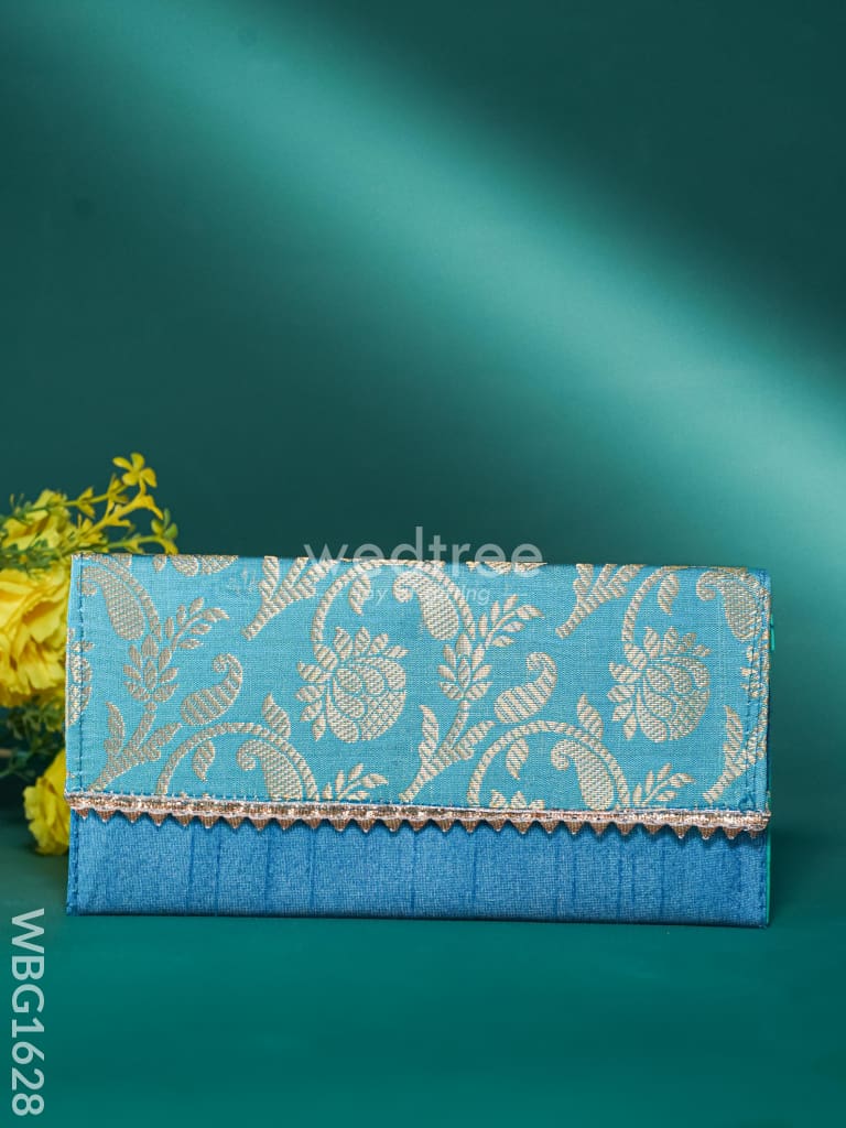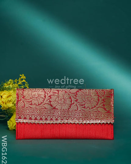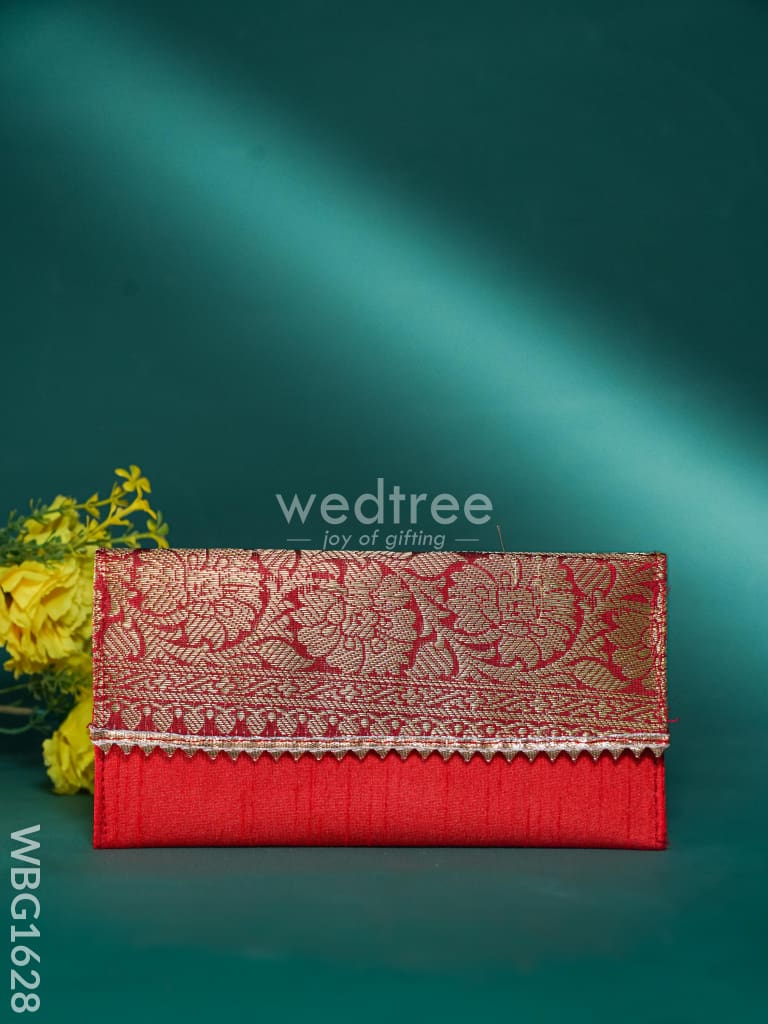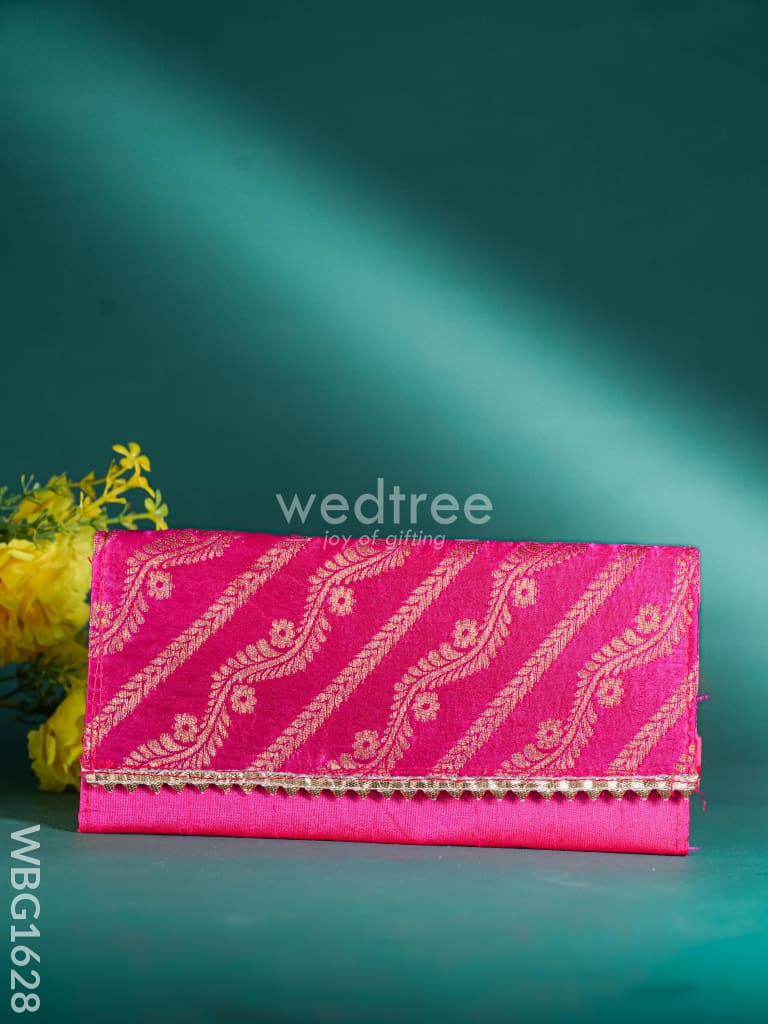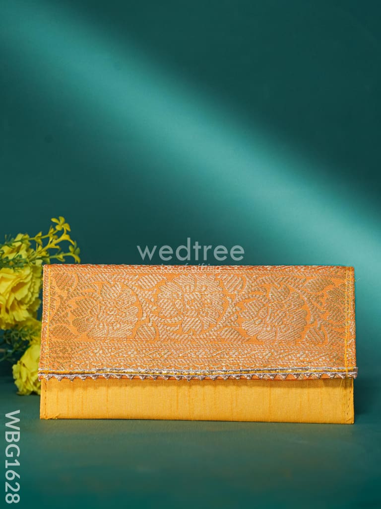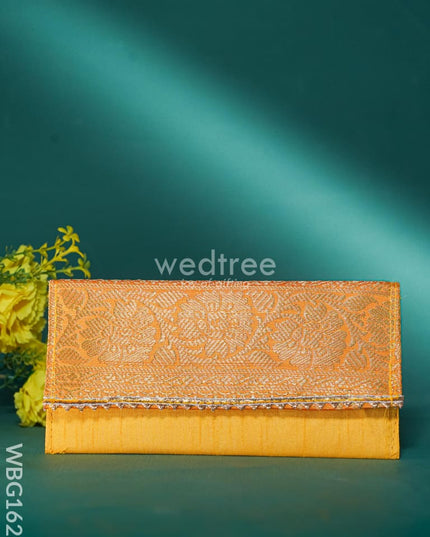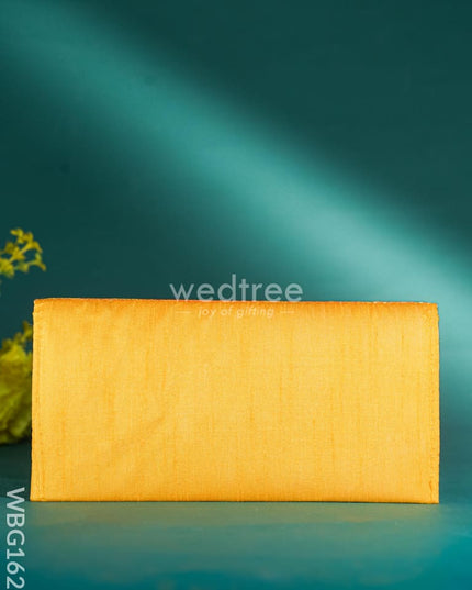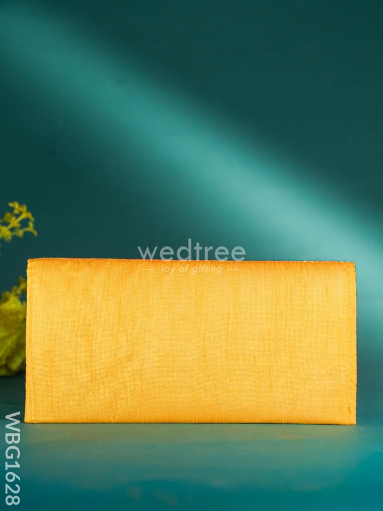 Material & Fabric: Made from Raw Silk Fabric, the Purse is Adorned with Delicate Golden Design, lending it a Rich and Regal Appeal.