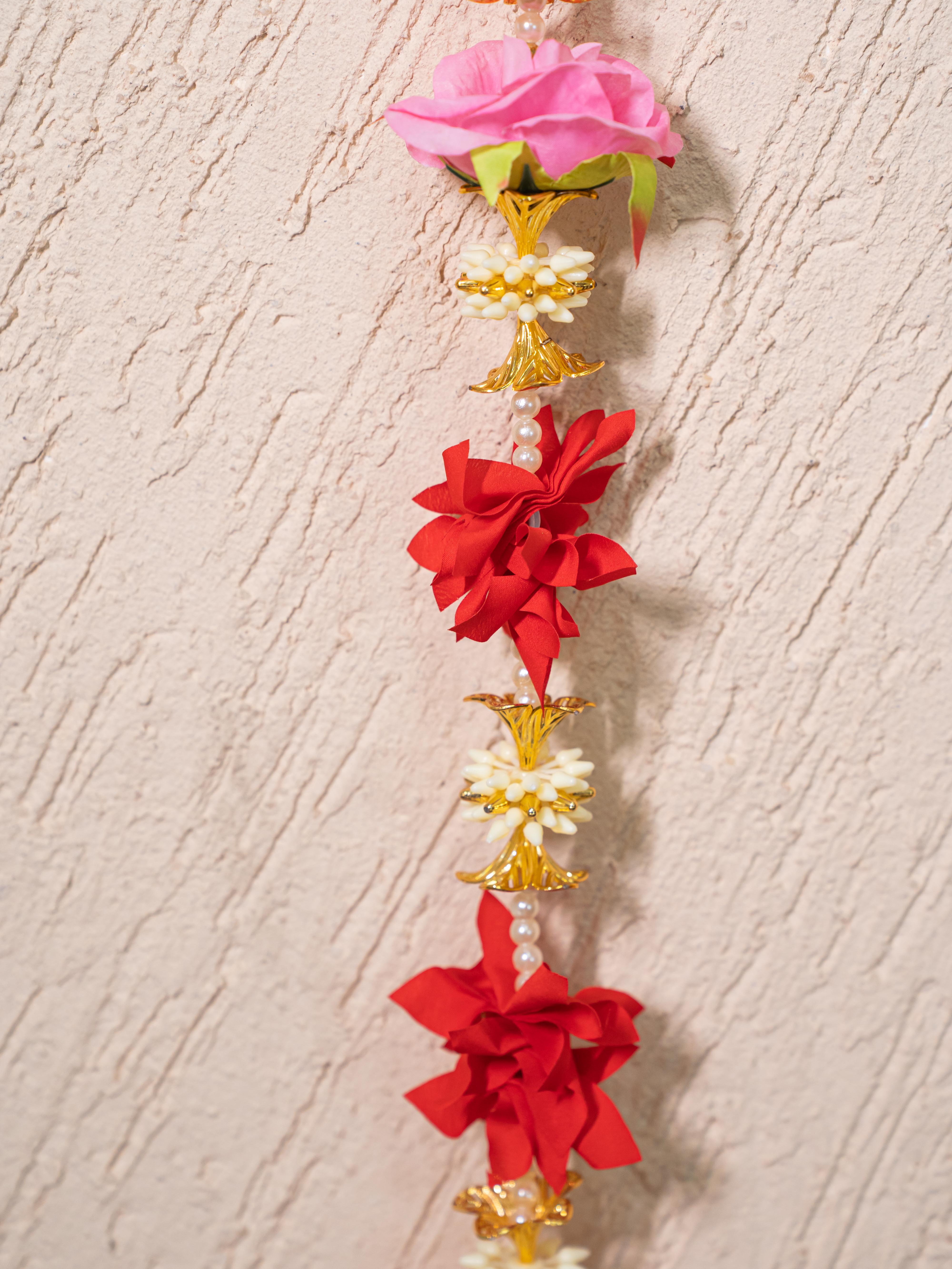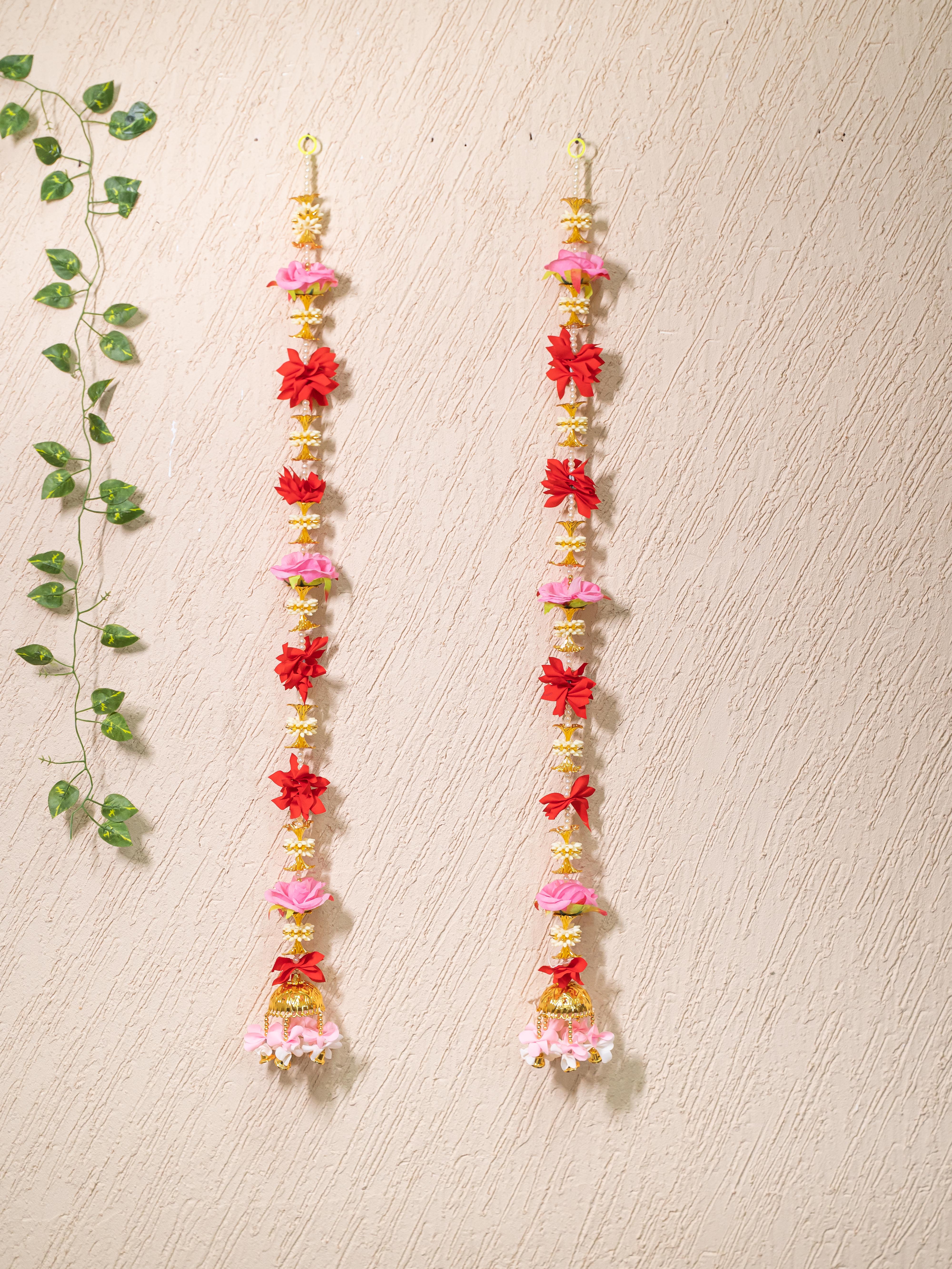 Add a Splash of Festive Charm to your Home with this Vibrant Decorative Pair, Designed with a Blend of Artificial Flowers & Pearls.