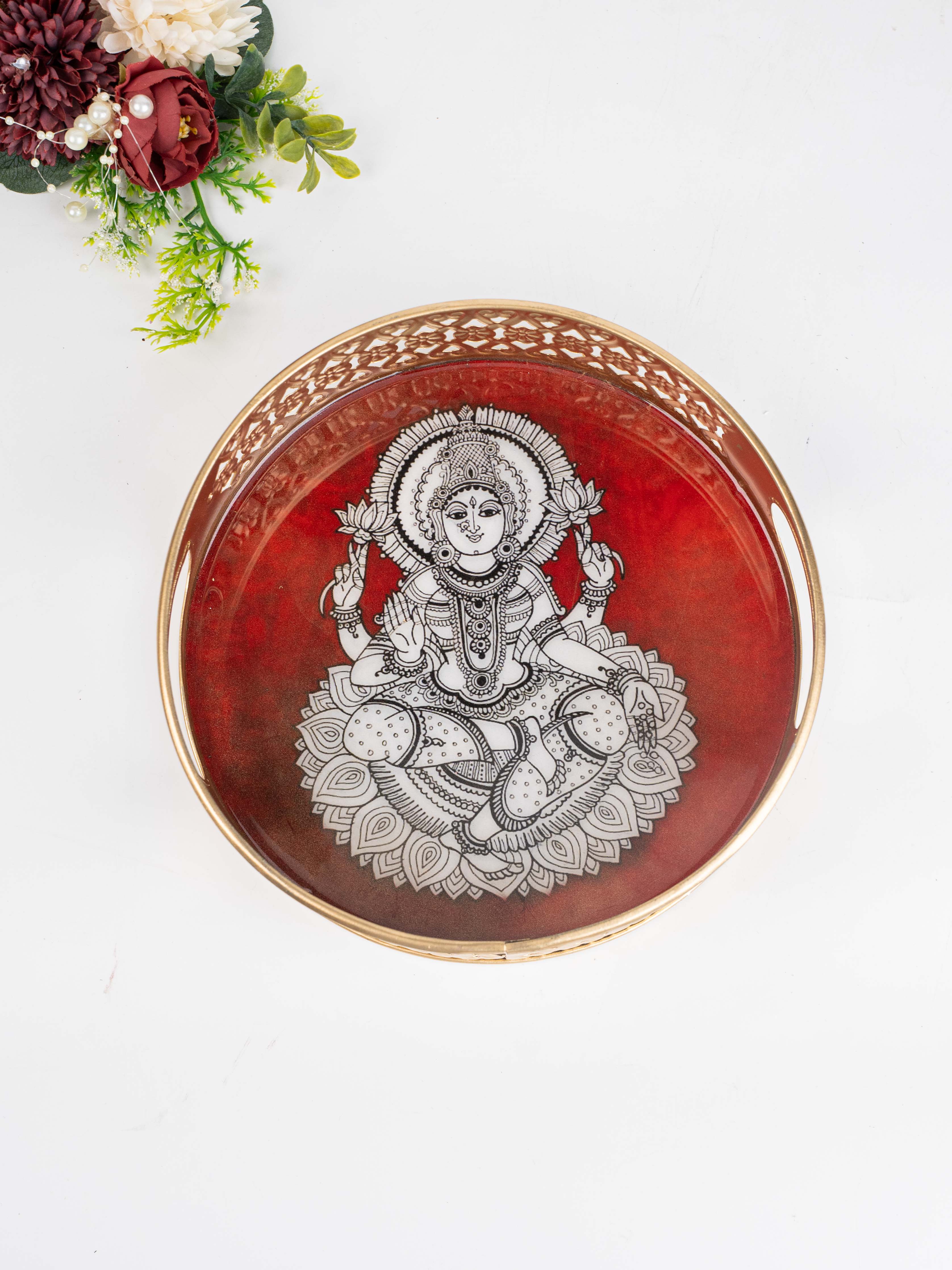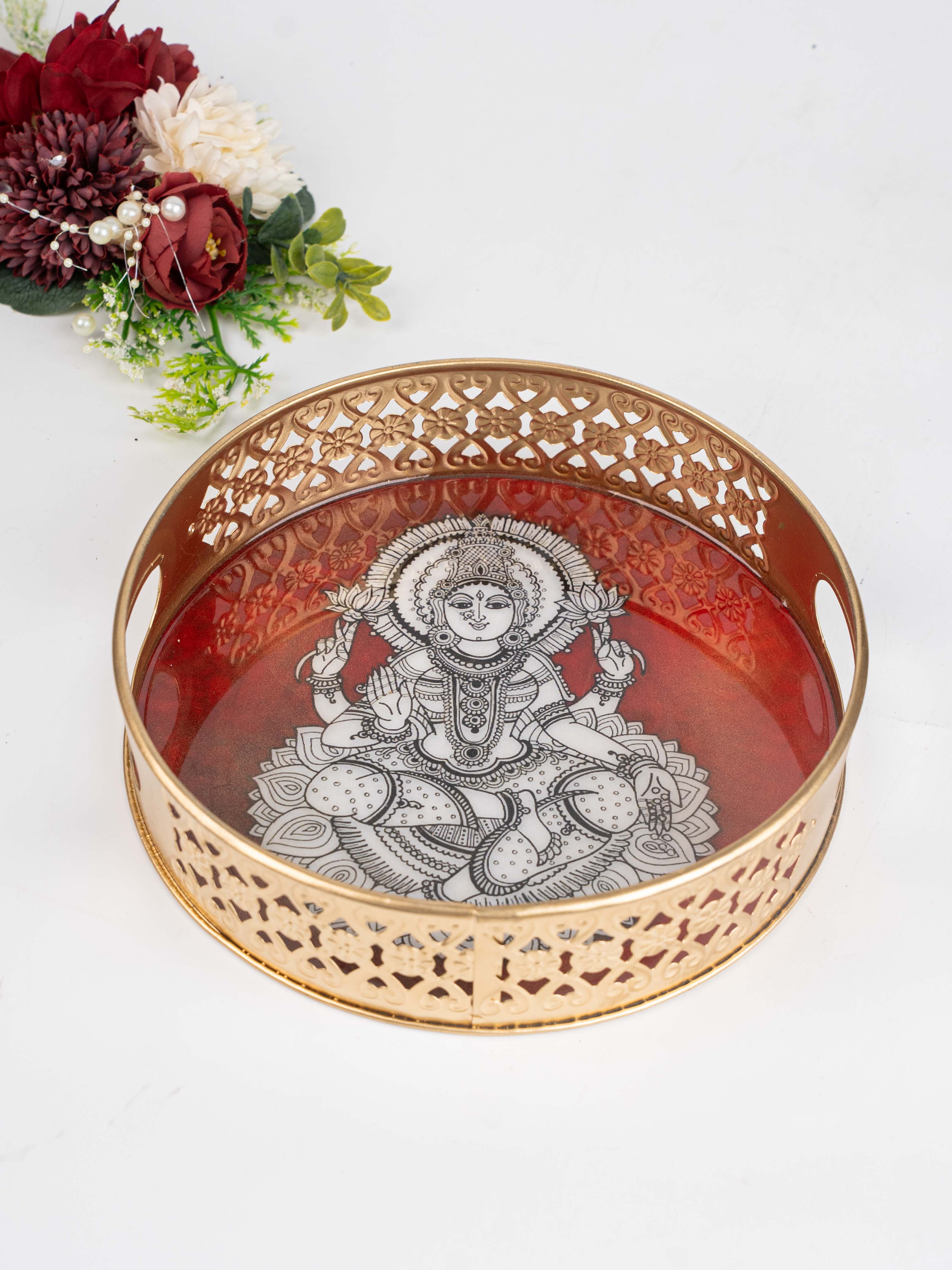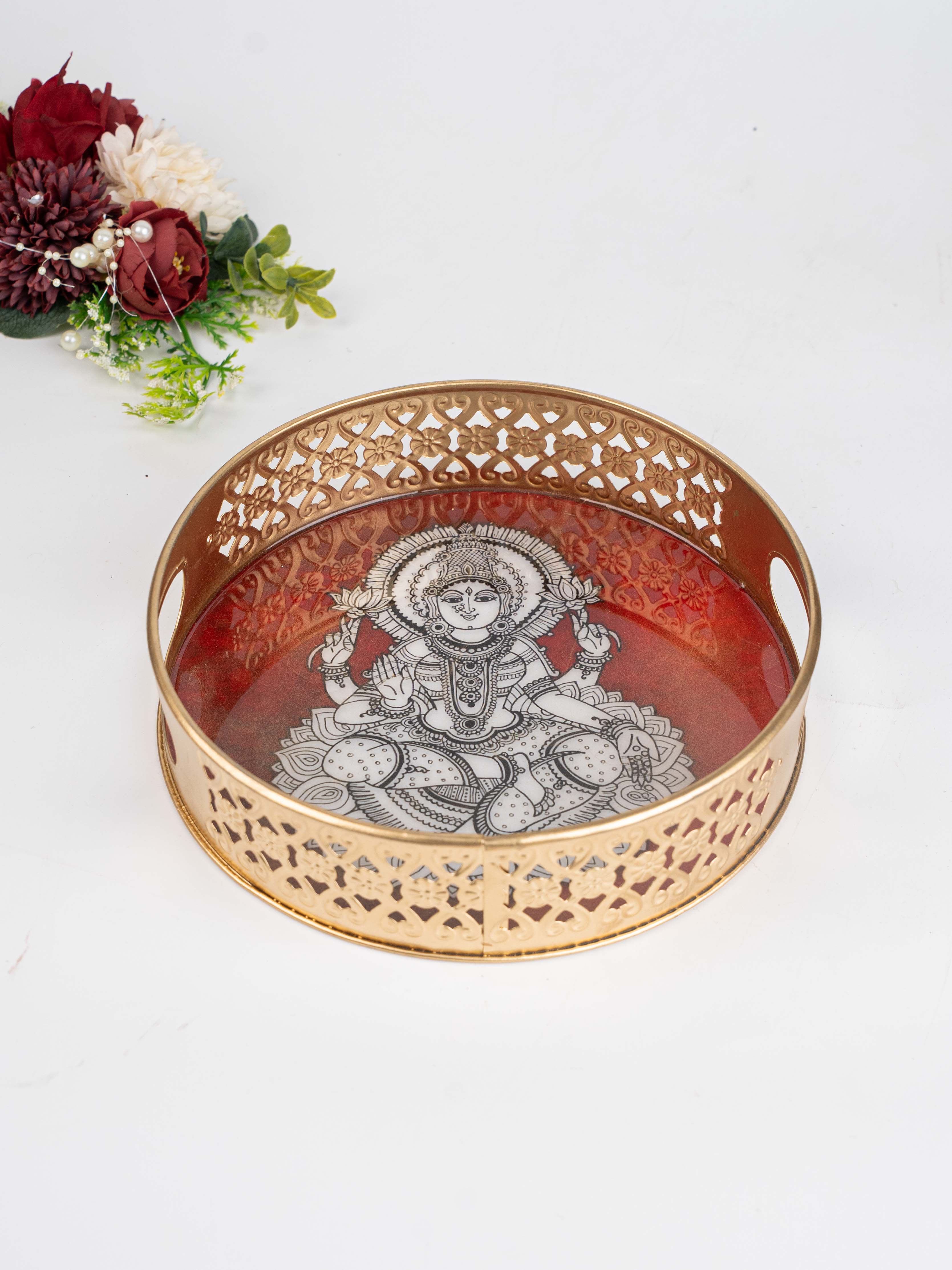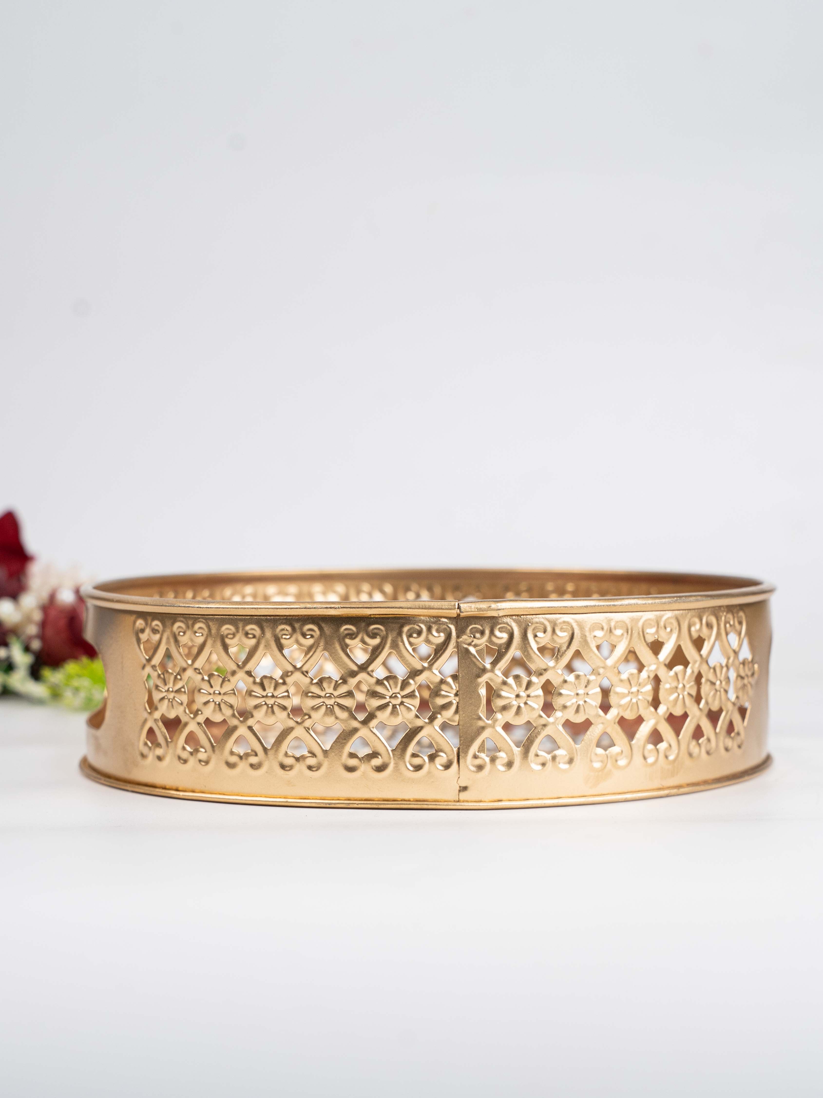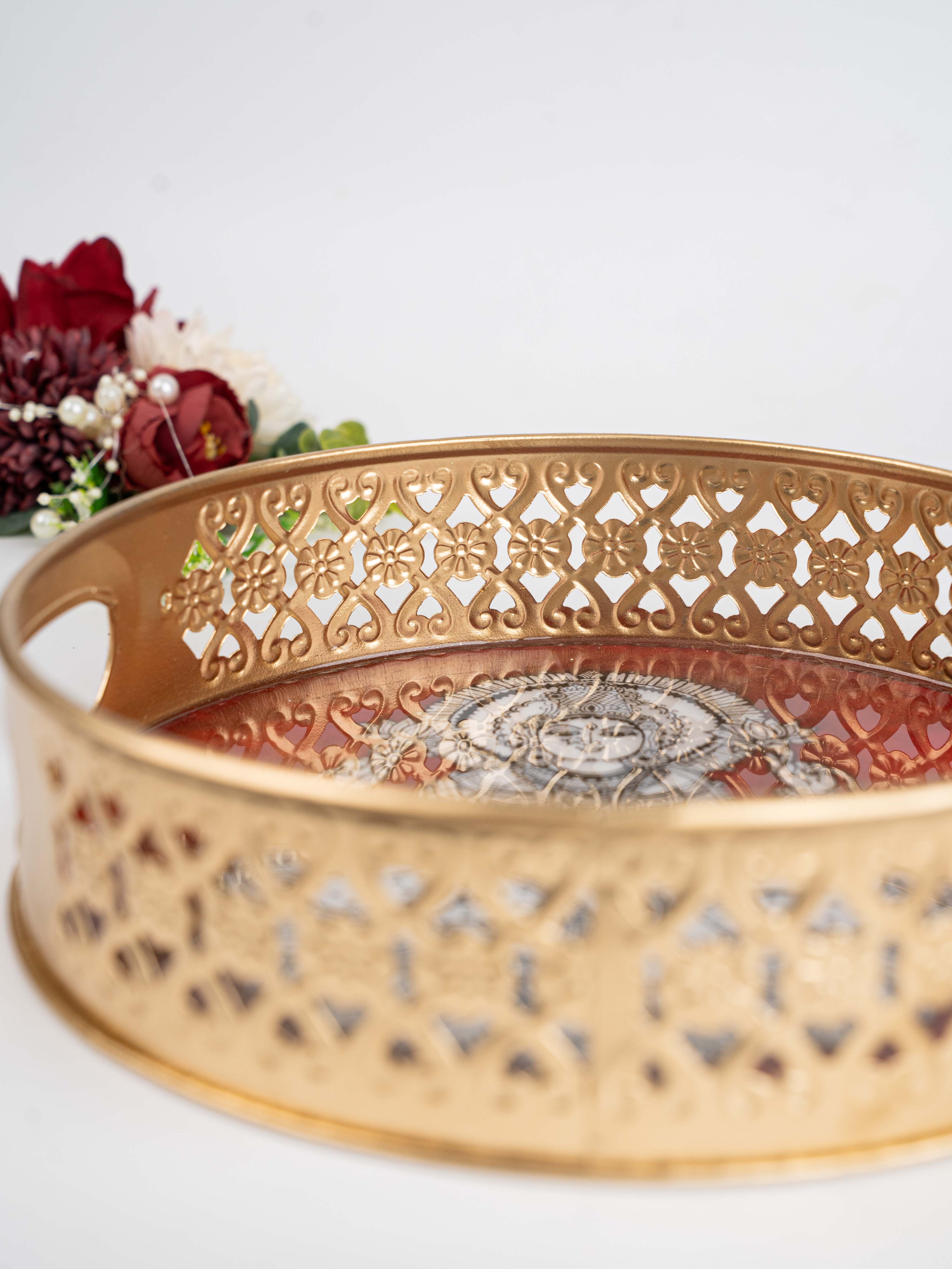 - This Tray is Bordered with a Beautifull Jaali Cut Pattern in an Gold Tone, adding Traditional Charm and a Luxurious Feel.
