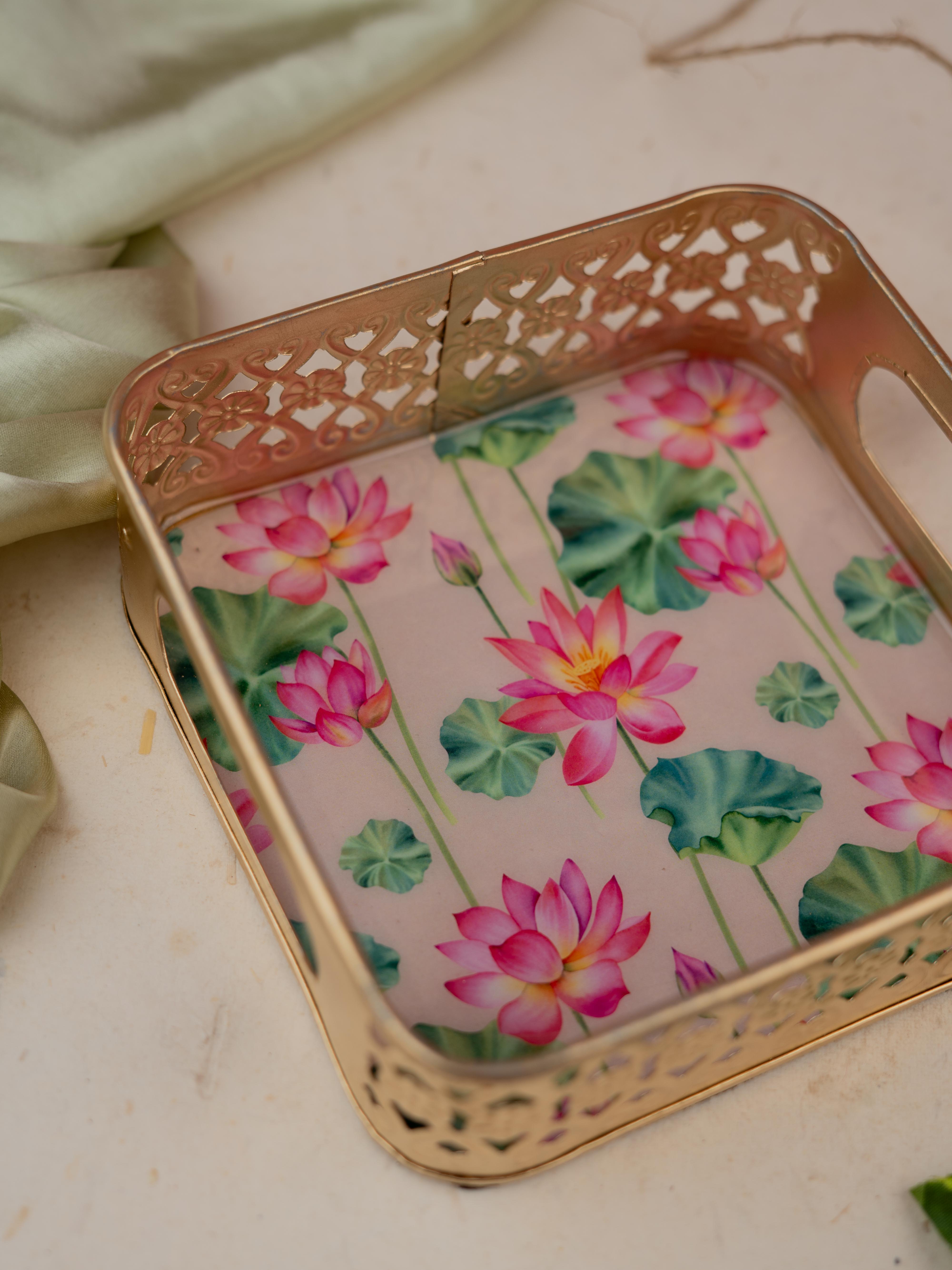 - This Tray is Bordered with a Beautifull Jaali Cut Pattern in an Gold Tone, adding Traditional Charm and a Luxurious Feel.