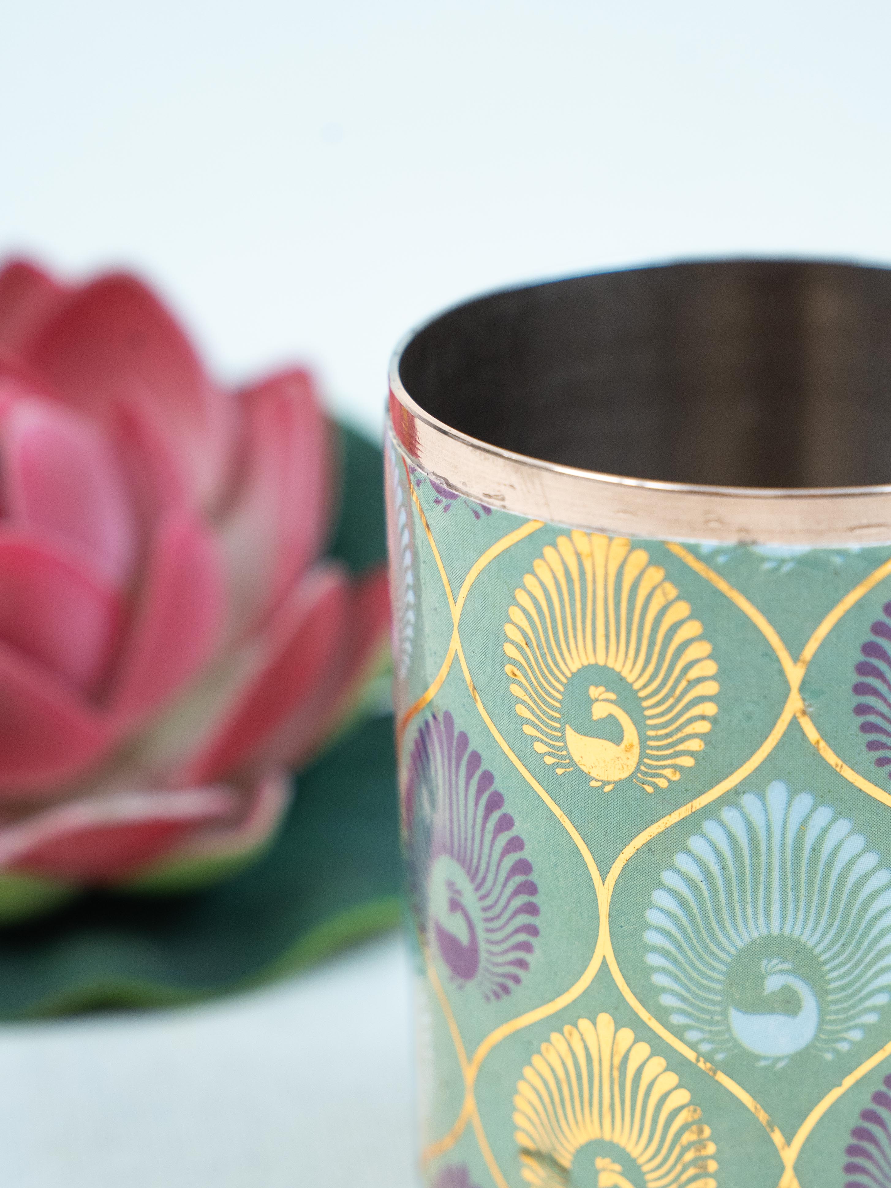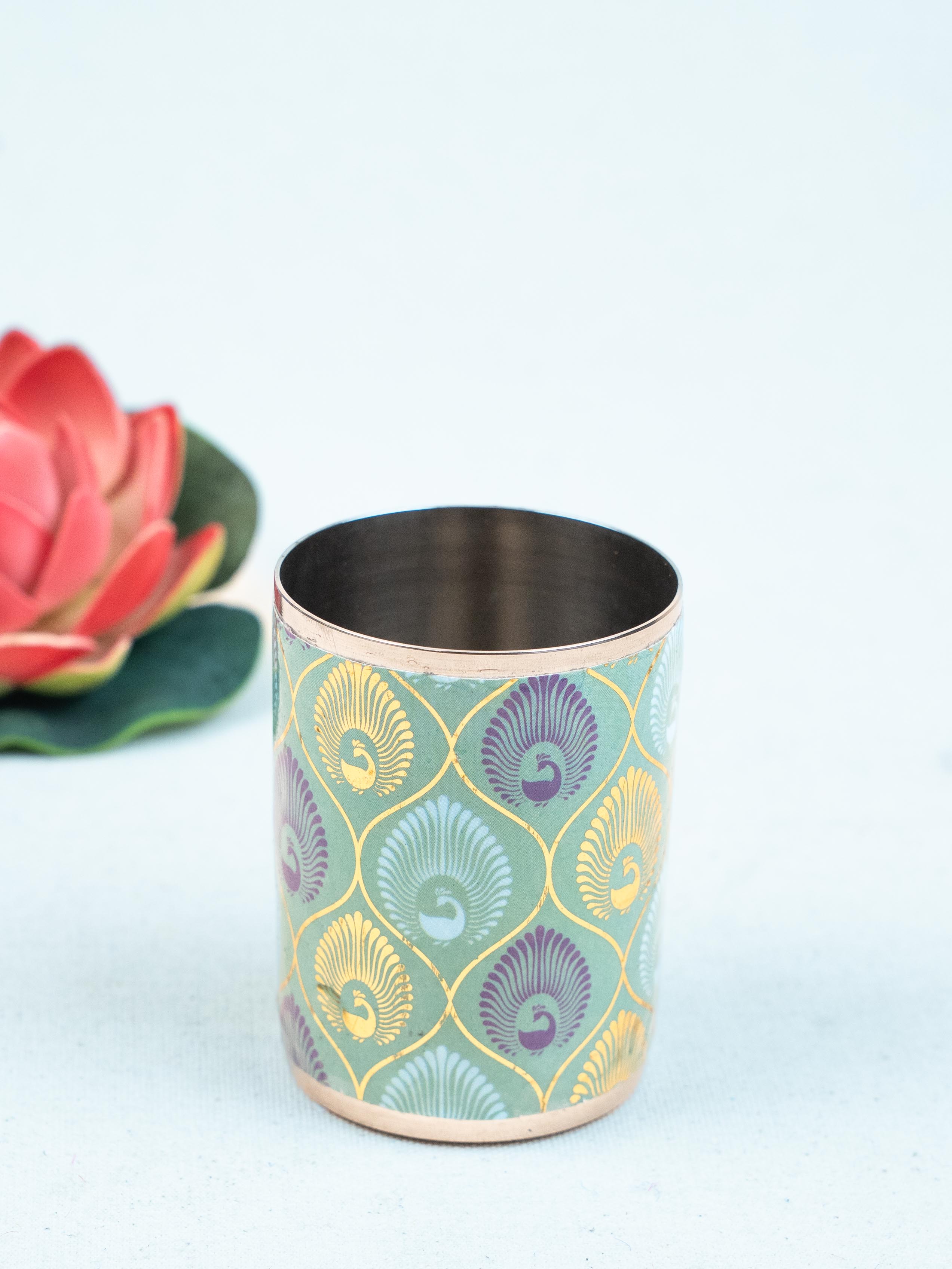 - Add a Splash of Elegance to your Tableware with this Beautifully Crafted Digital Print Glass Featuring an Intricate Peacock Feather Design.