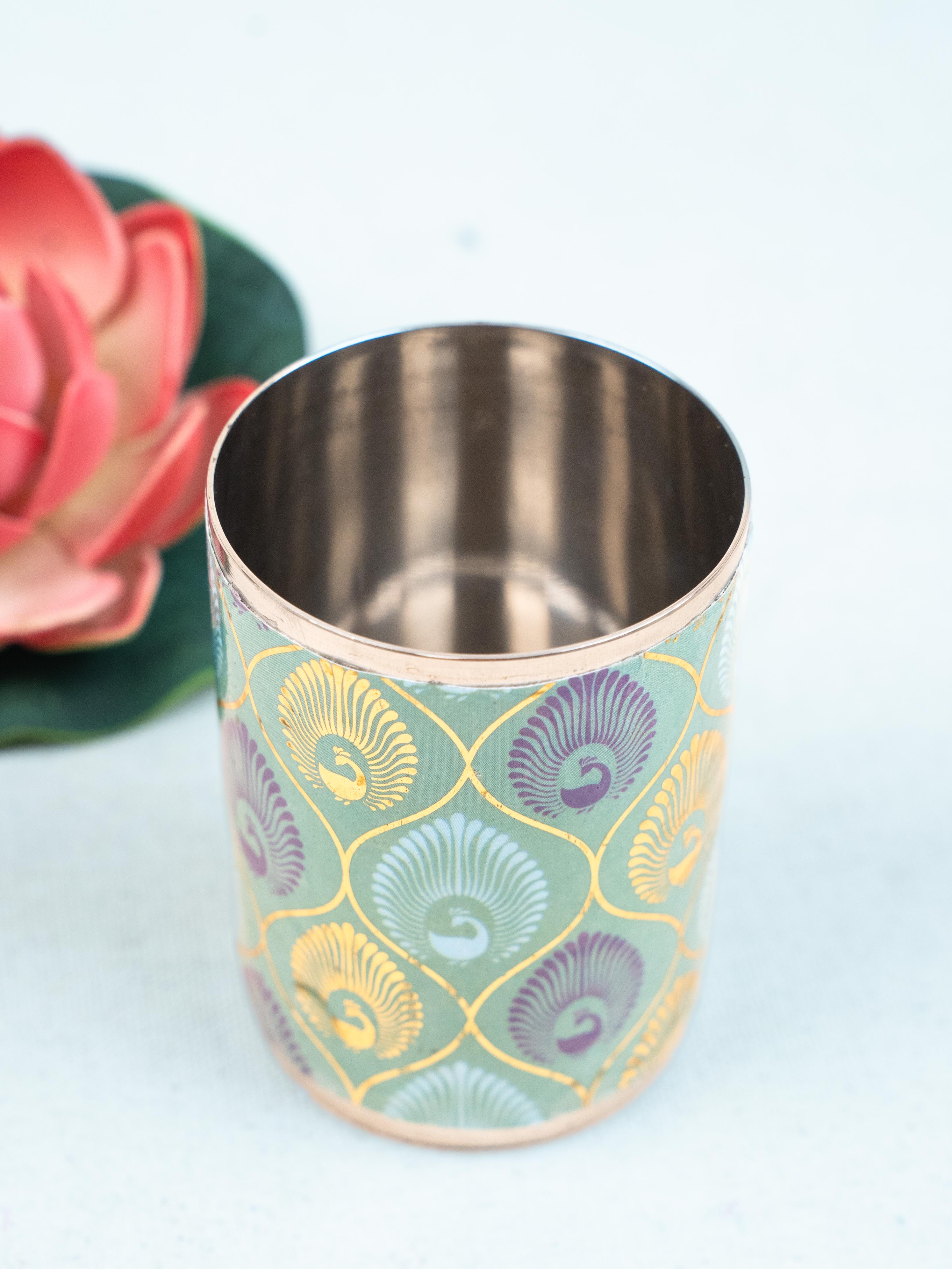 Digital Printed Meenakari - Peacock Design Glass - WBG1778