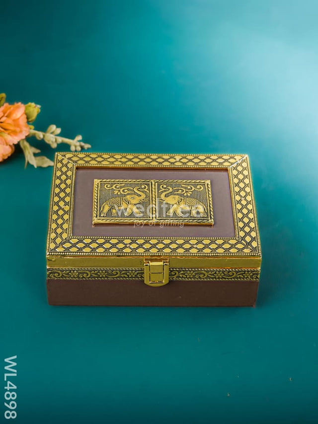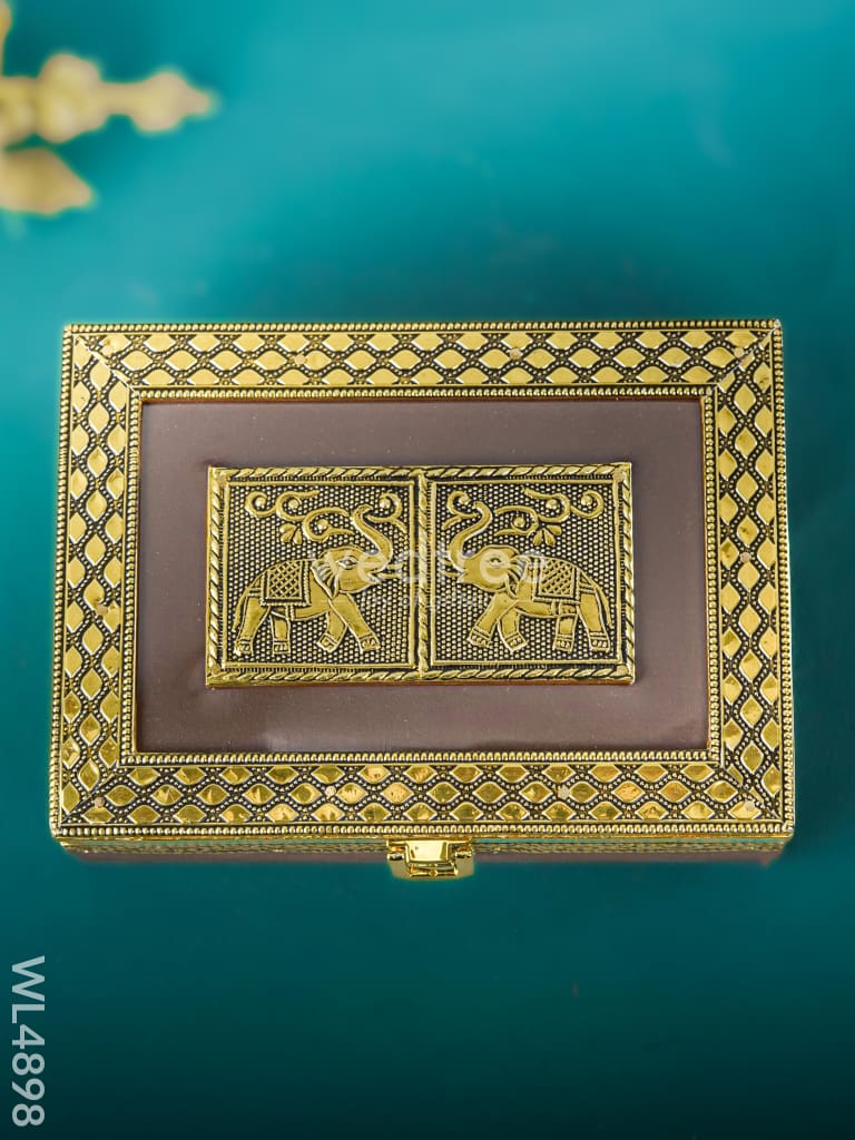 - This Luxurious Wooden Jewel Box, Comes with a Chocolate Brown Colour with Two Elephant On Top.