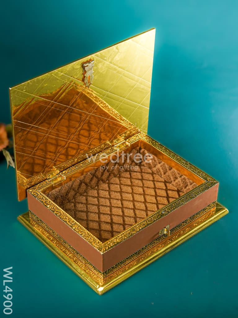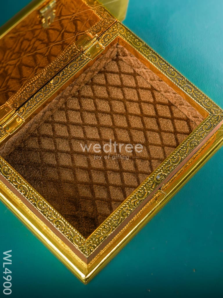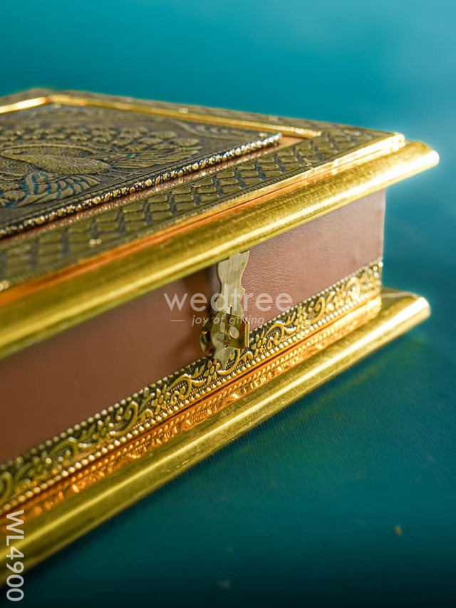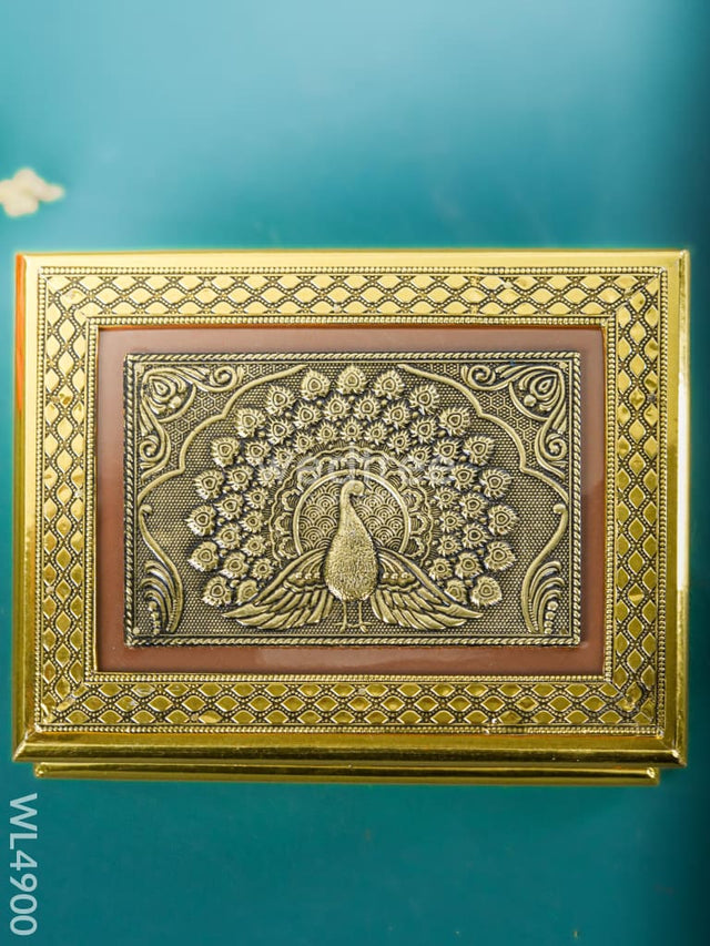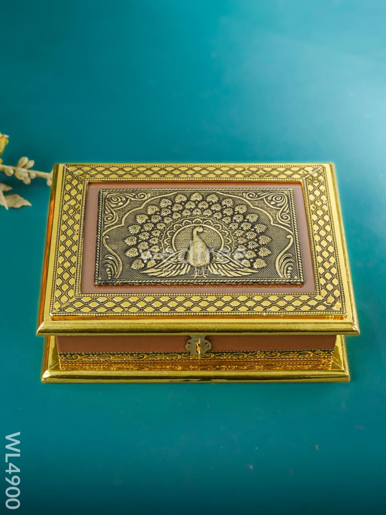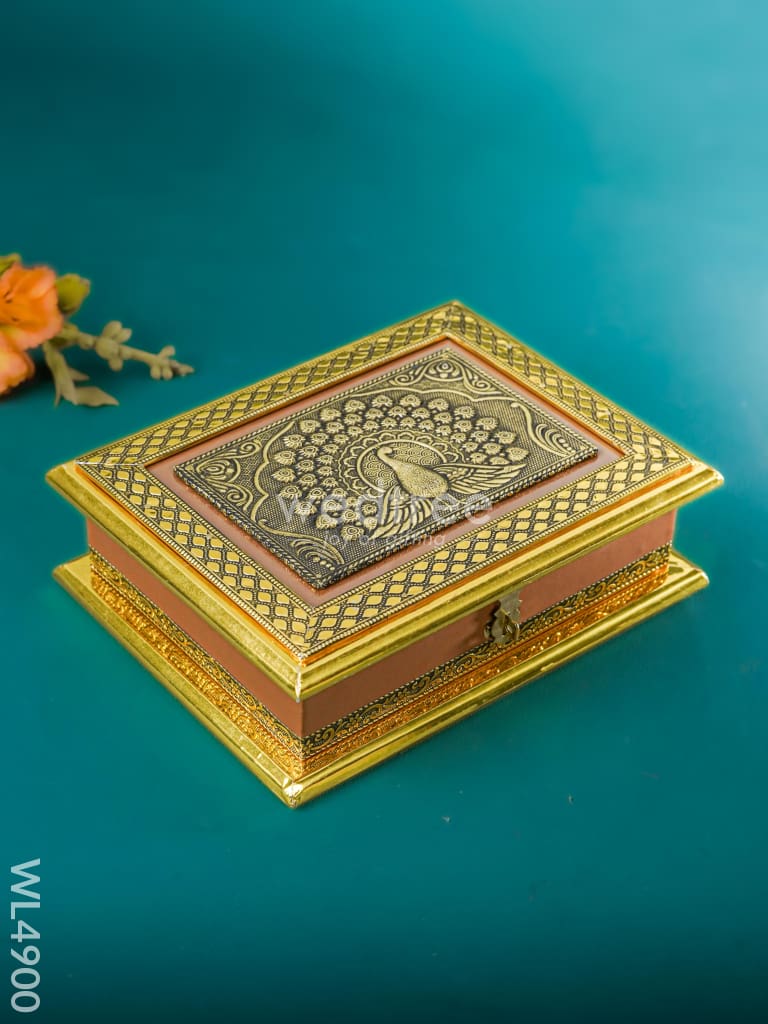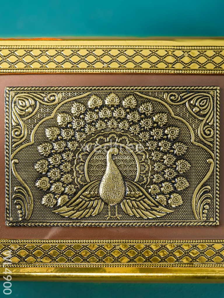- Golden Foil Work All Around the Dry Fruit Box with Peacock Design on Top.