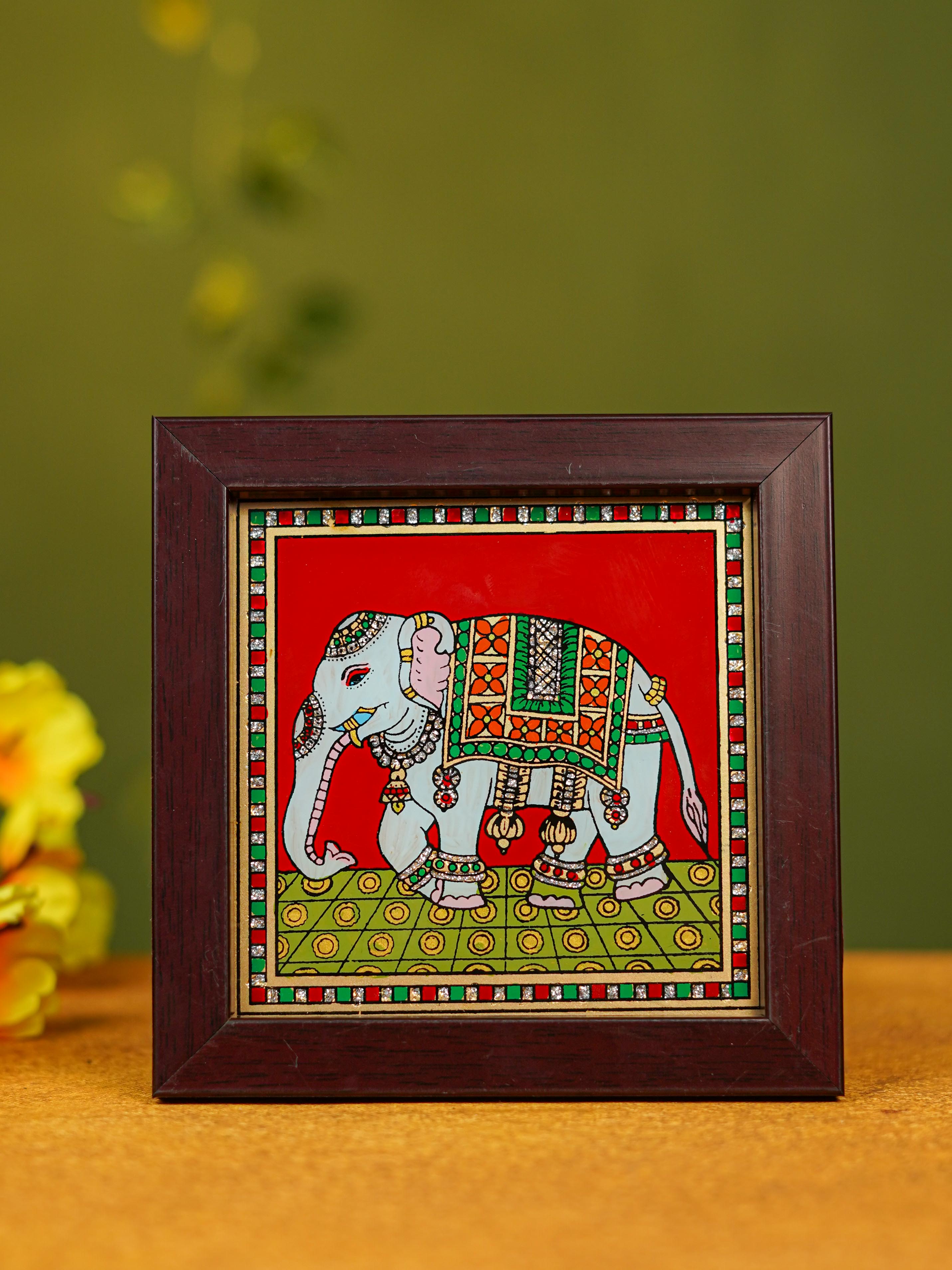 Elephant Reverse Glass Painting Frame - 4 x 4 inch - WL4608