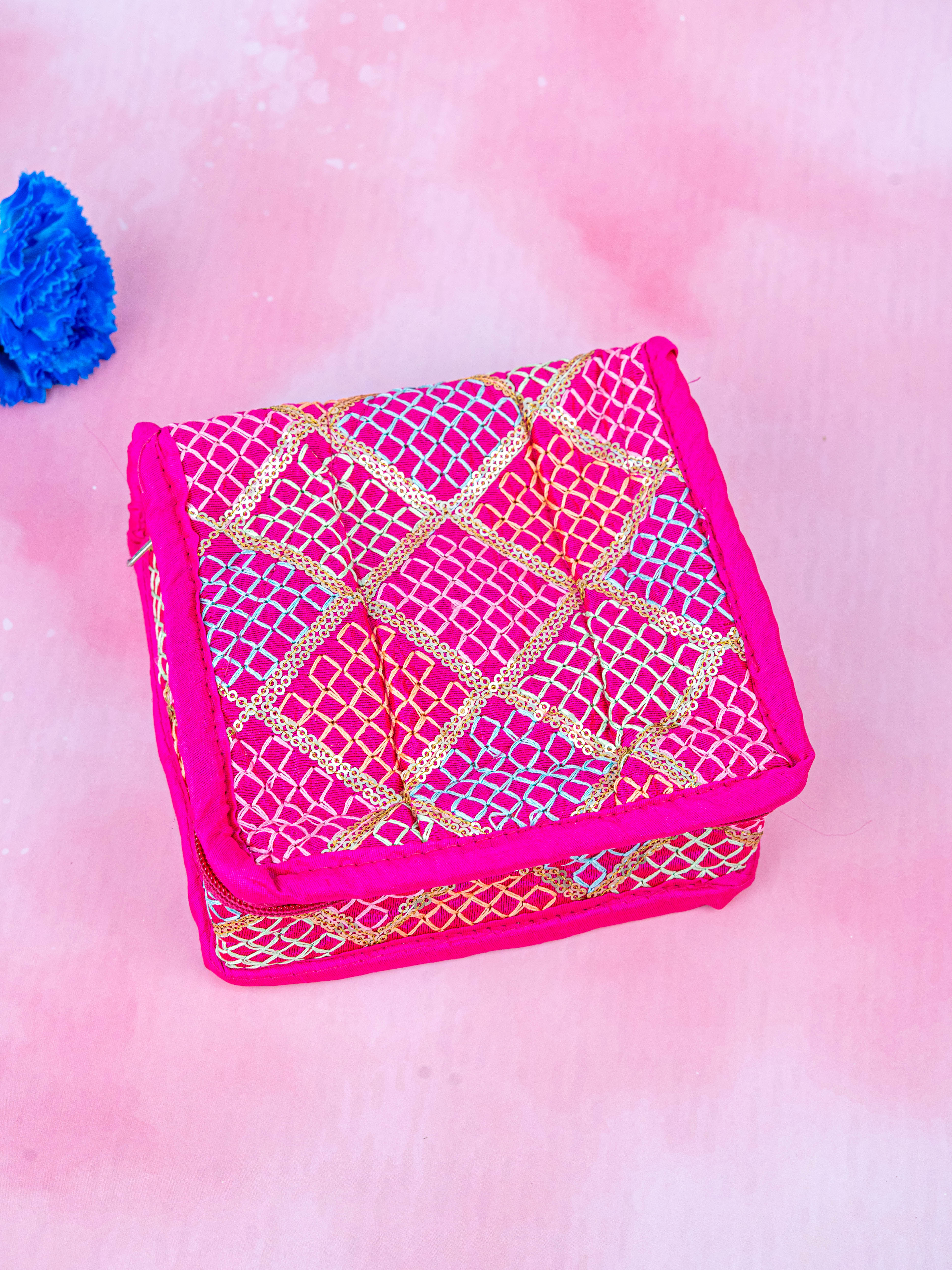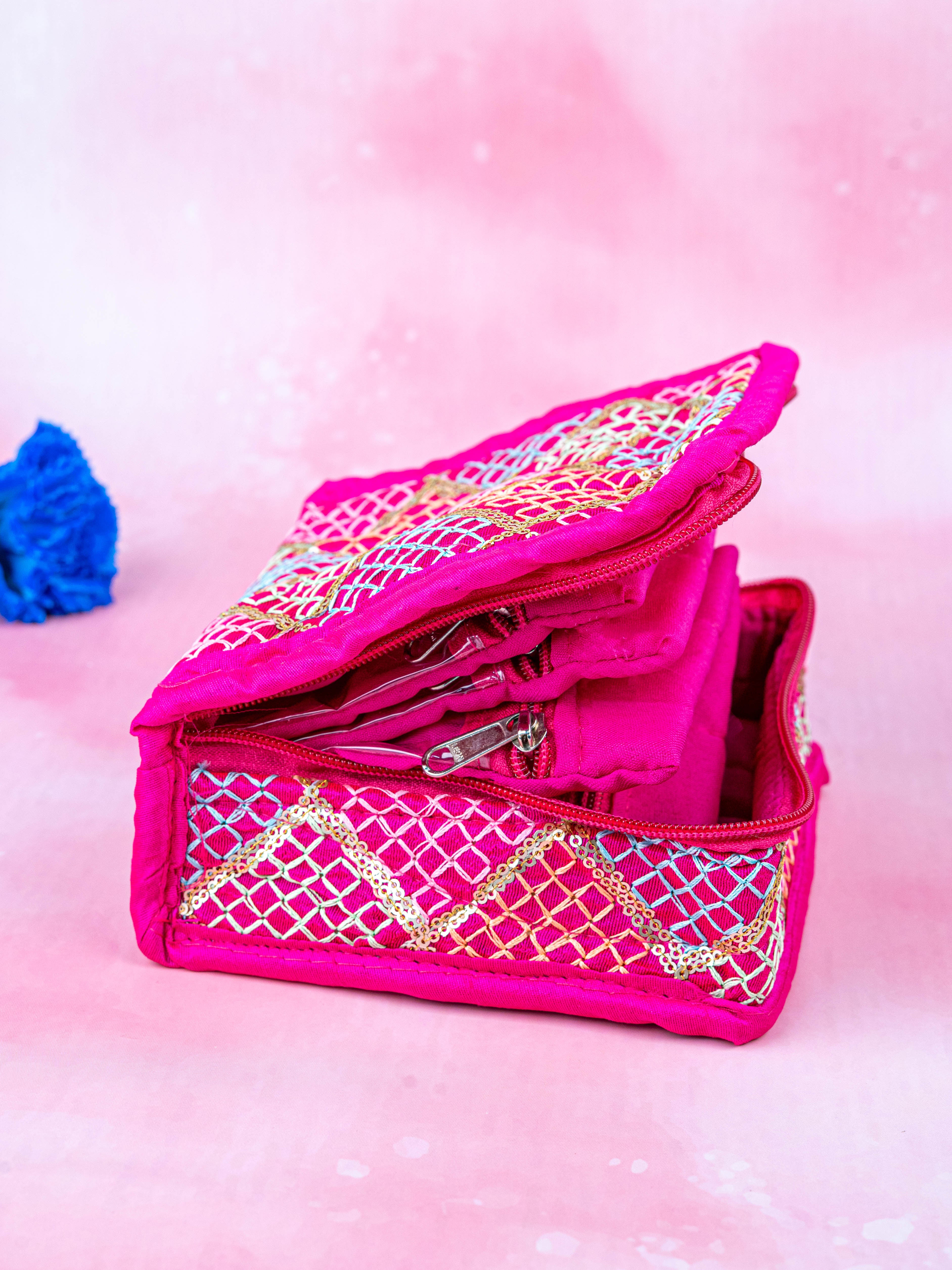 - This Embroidered Jewellery Pouch is expertly crafted with intricate embroidery, making it a beautiful and functional accessory for storing your jewelry.
