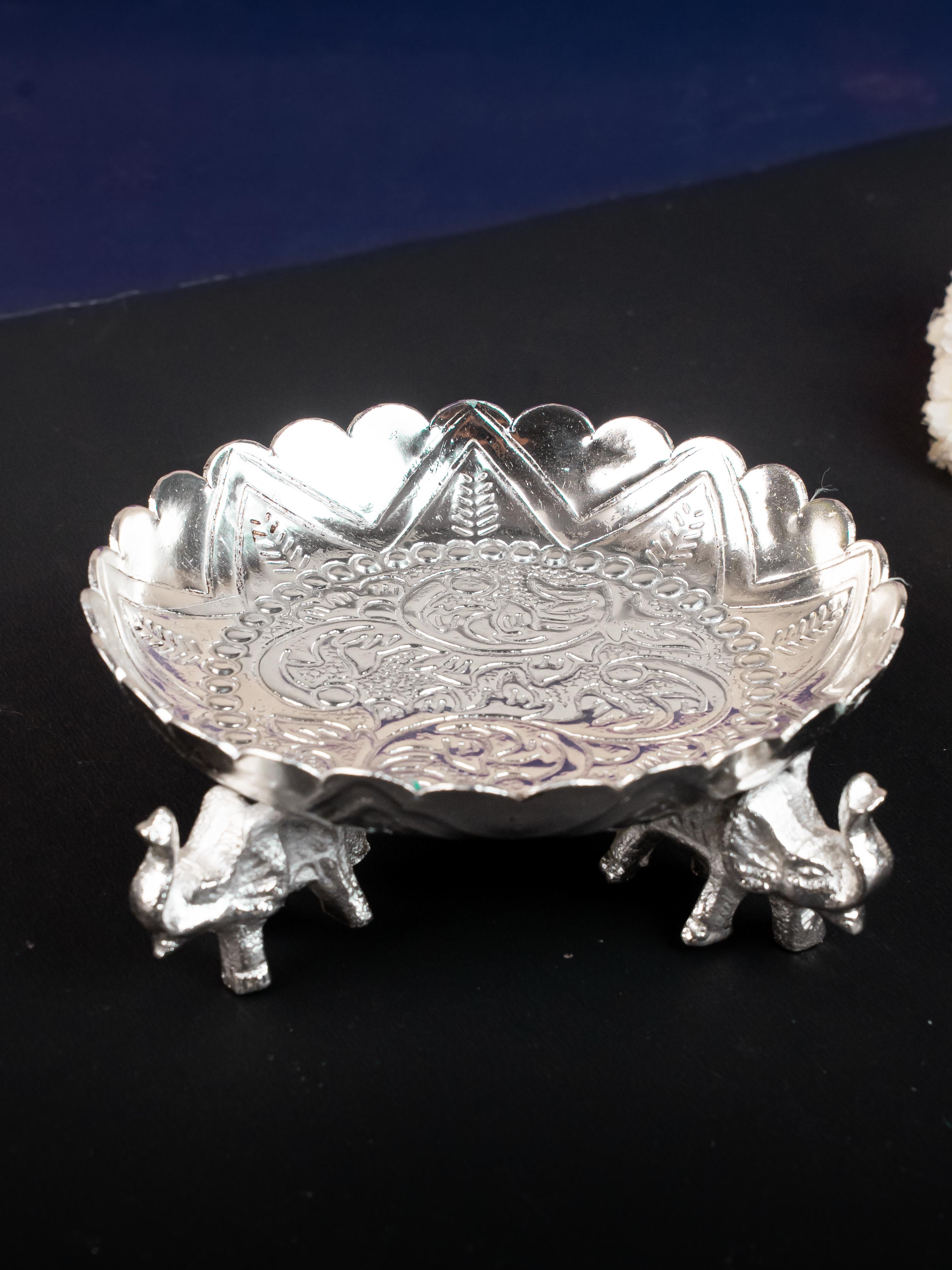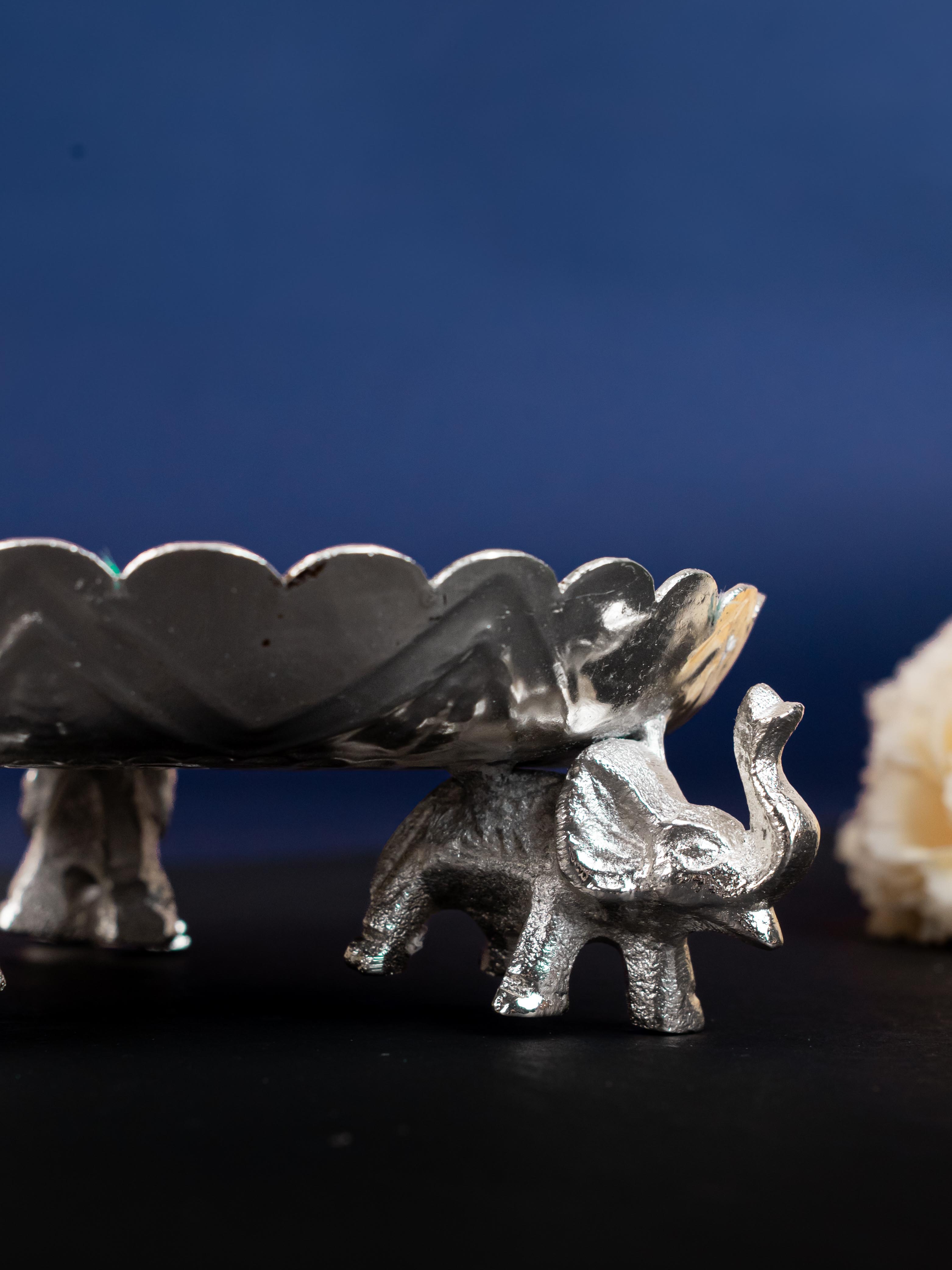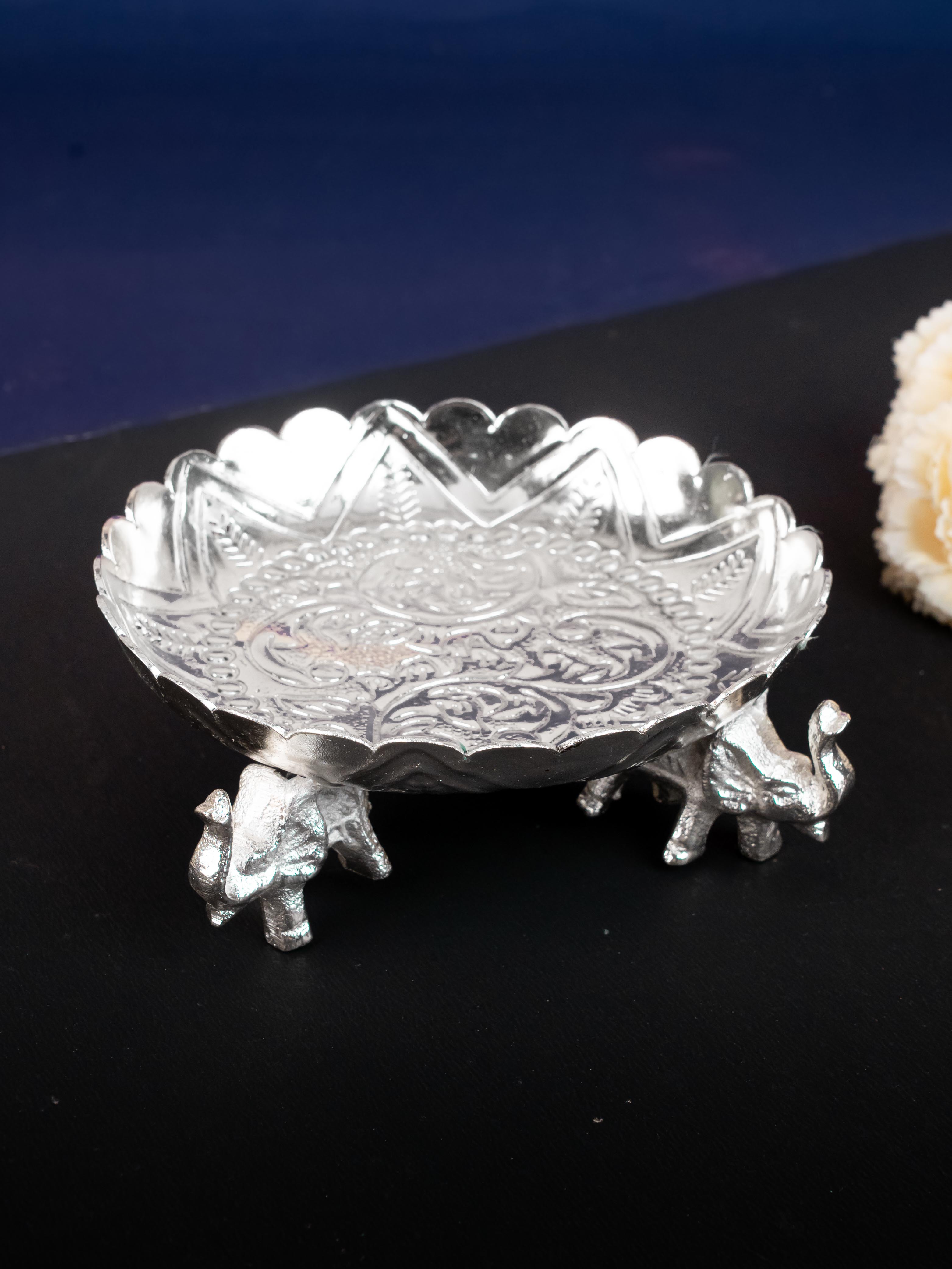 - And, with three elephants gently supporting the tray, this piece is sure to be the centerpiece of your home. Perfect for keeping puja items and offering a special gift for friends and family on special occasions like Wedding, Housewarming or Poojas!