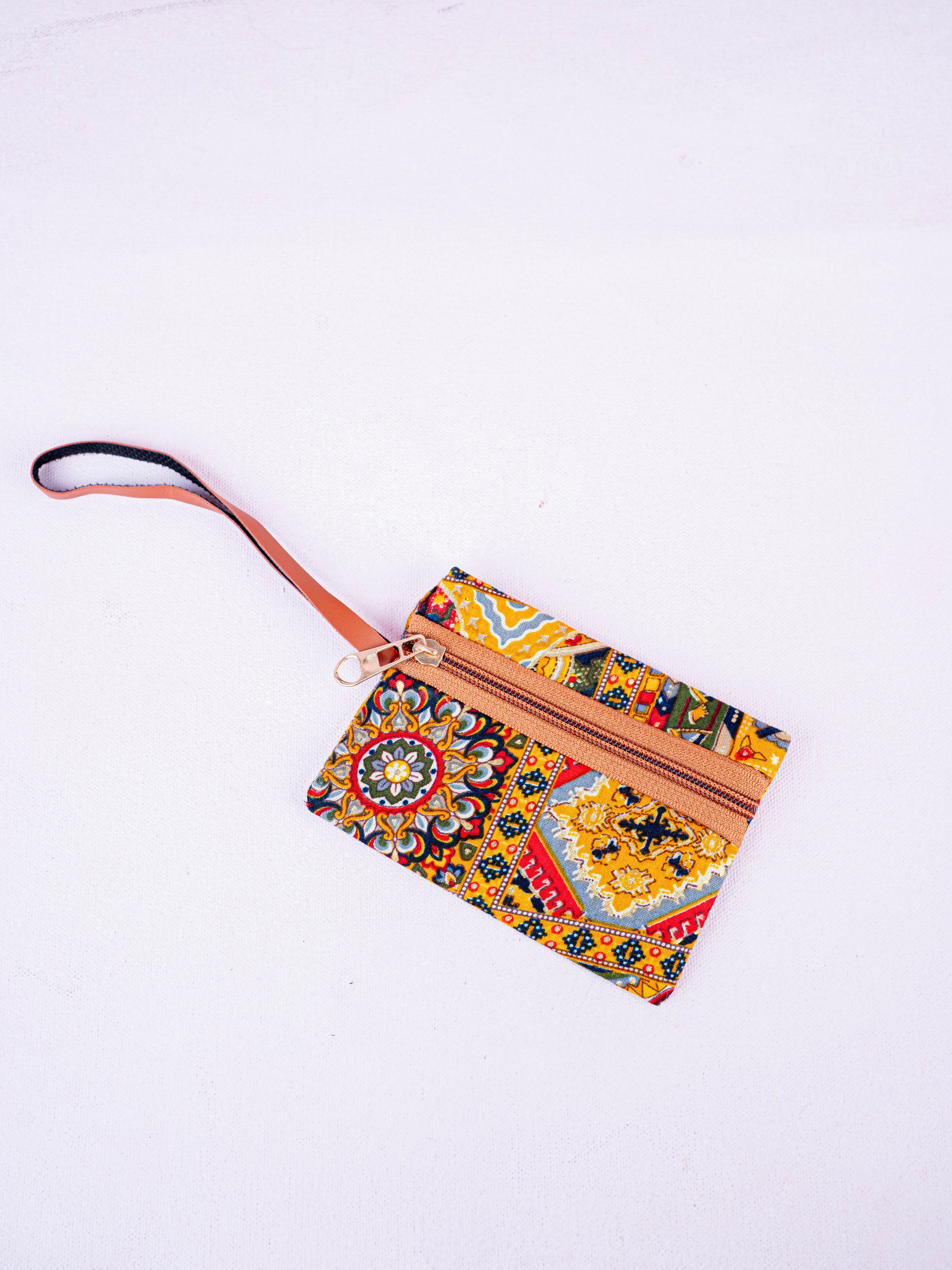 - It has faux leather handle facilitating a good grip while the back zipper can hold your essentials such as keys, coins, etc.