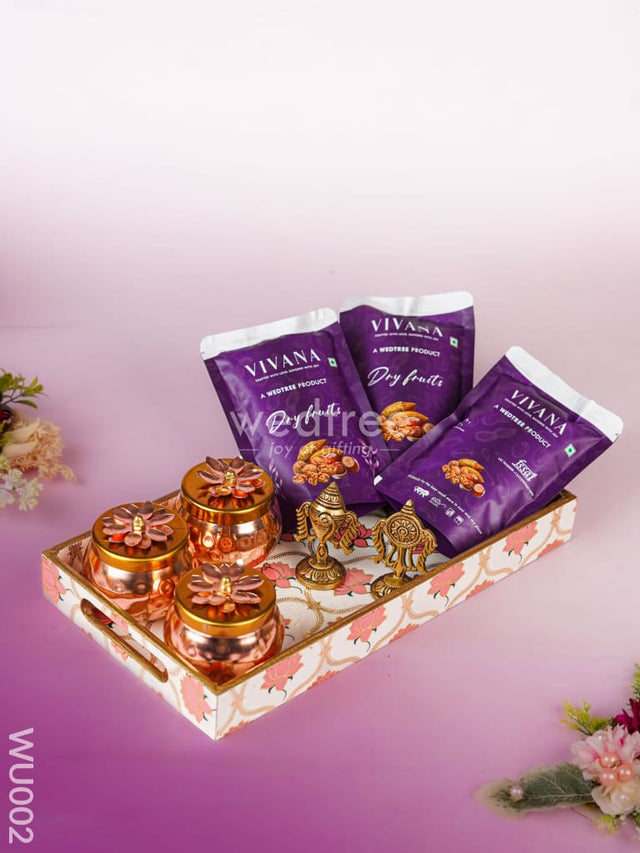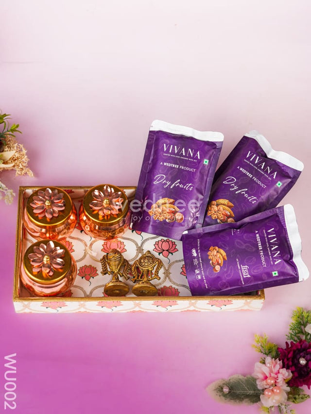Festive Combo - Lotus Tray with Floral Jar & Dry Fruits - WU002