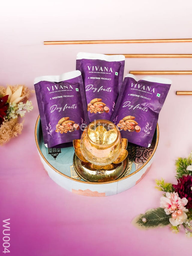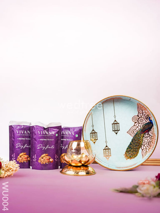 Festive Combo - Peacock Tray with Candle Holder & Dry Fruits - WU004