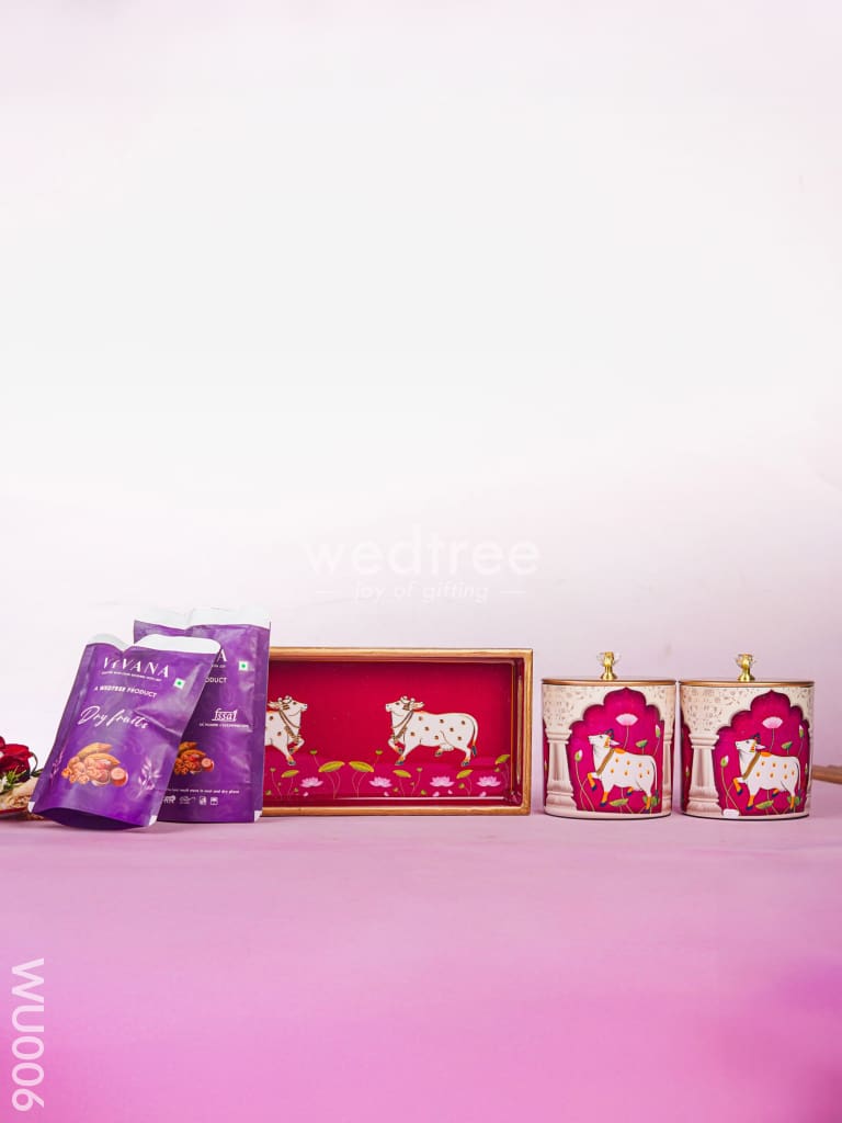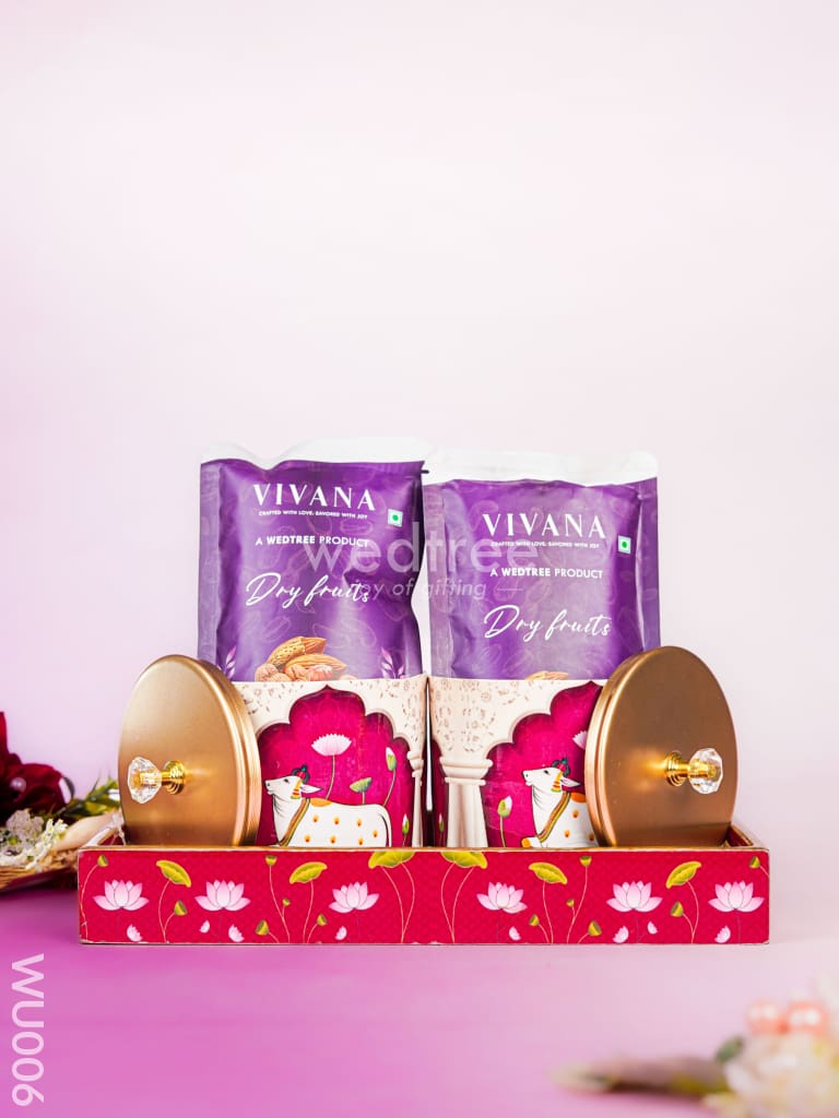 Festive Combo - Pichwai Tray with Dry Fruit Jar & Dry Fruits - WU006