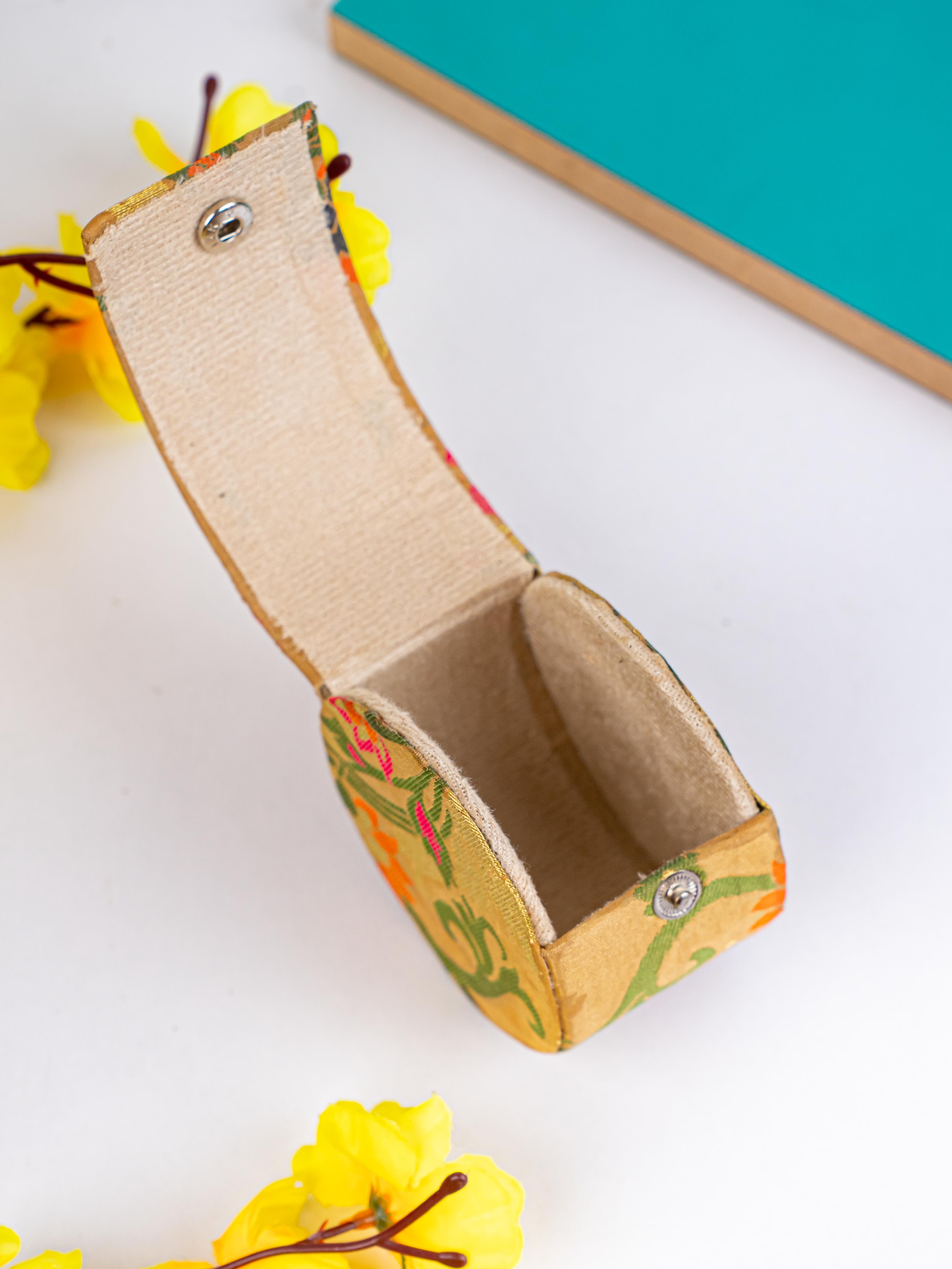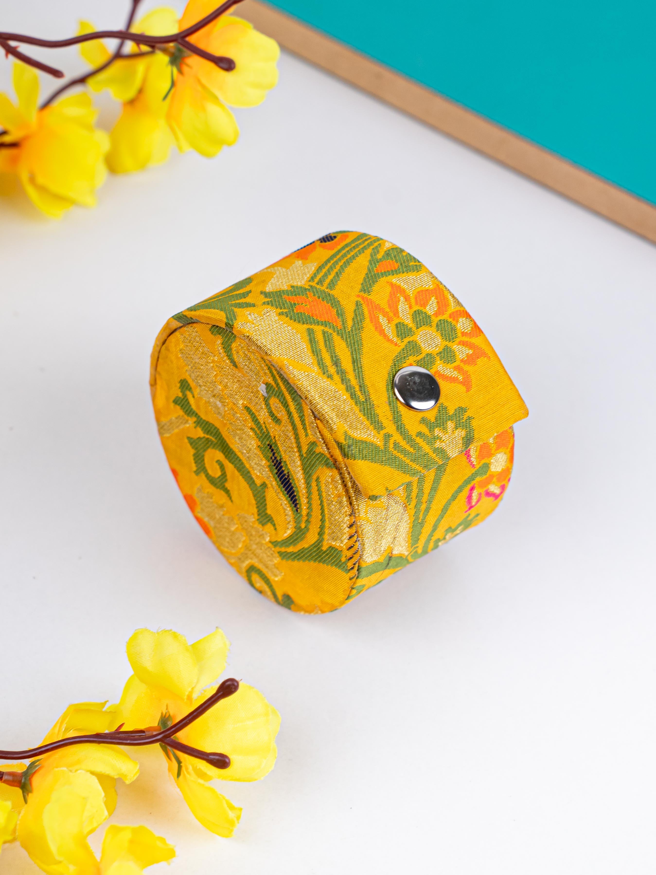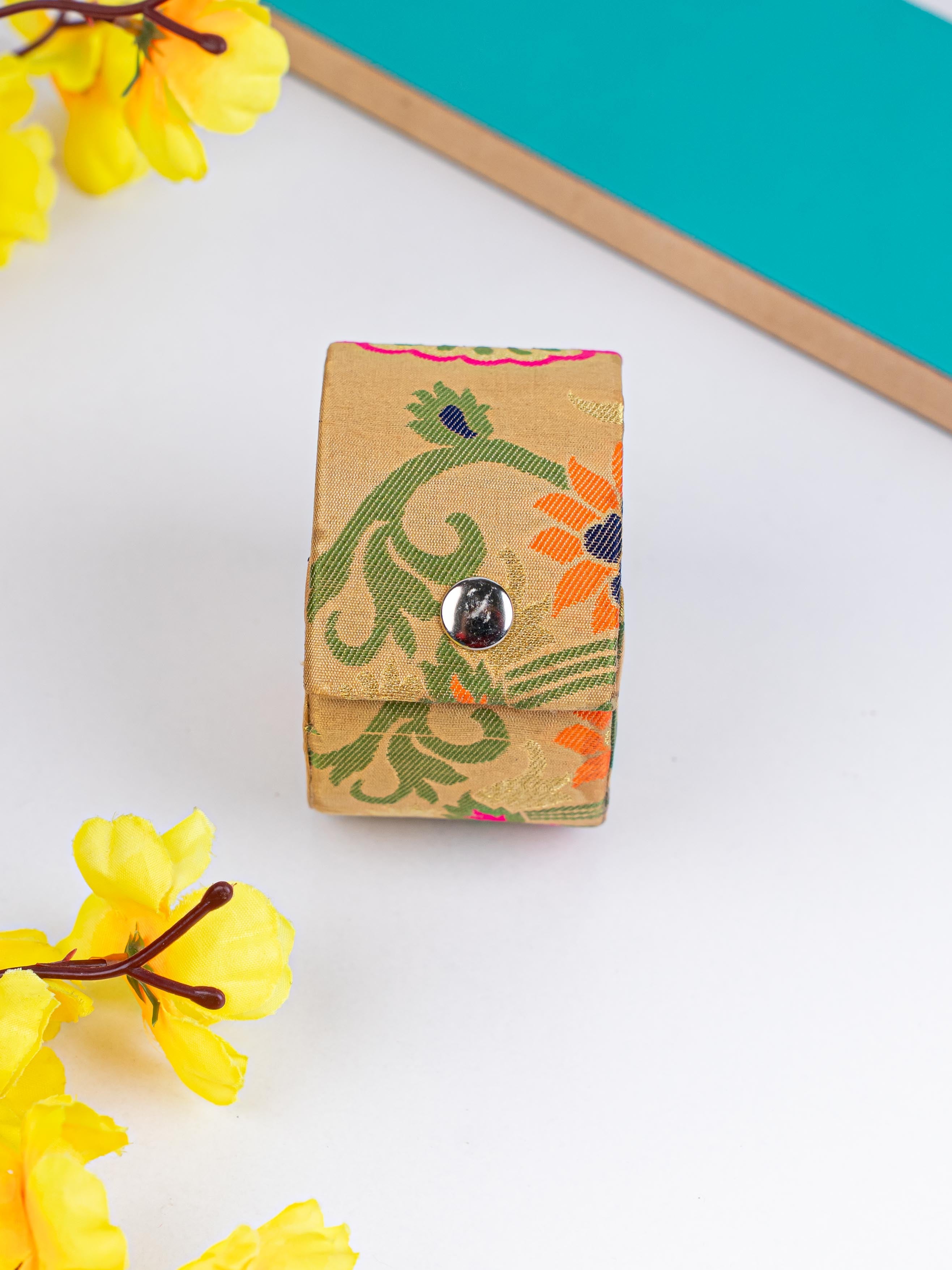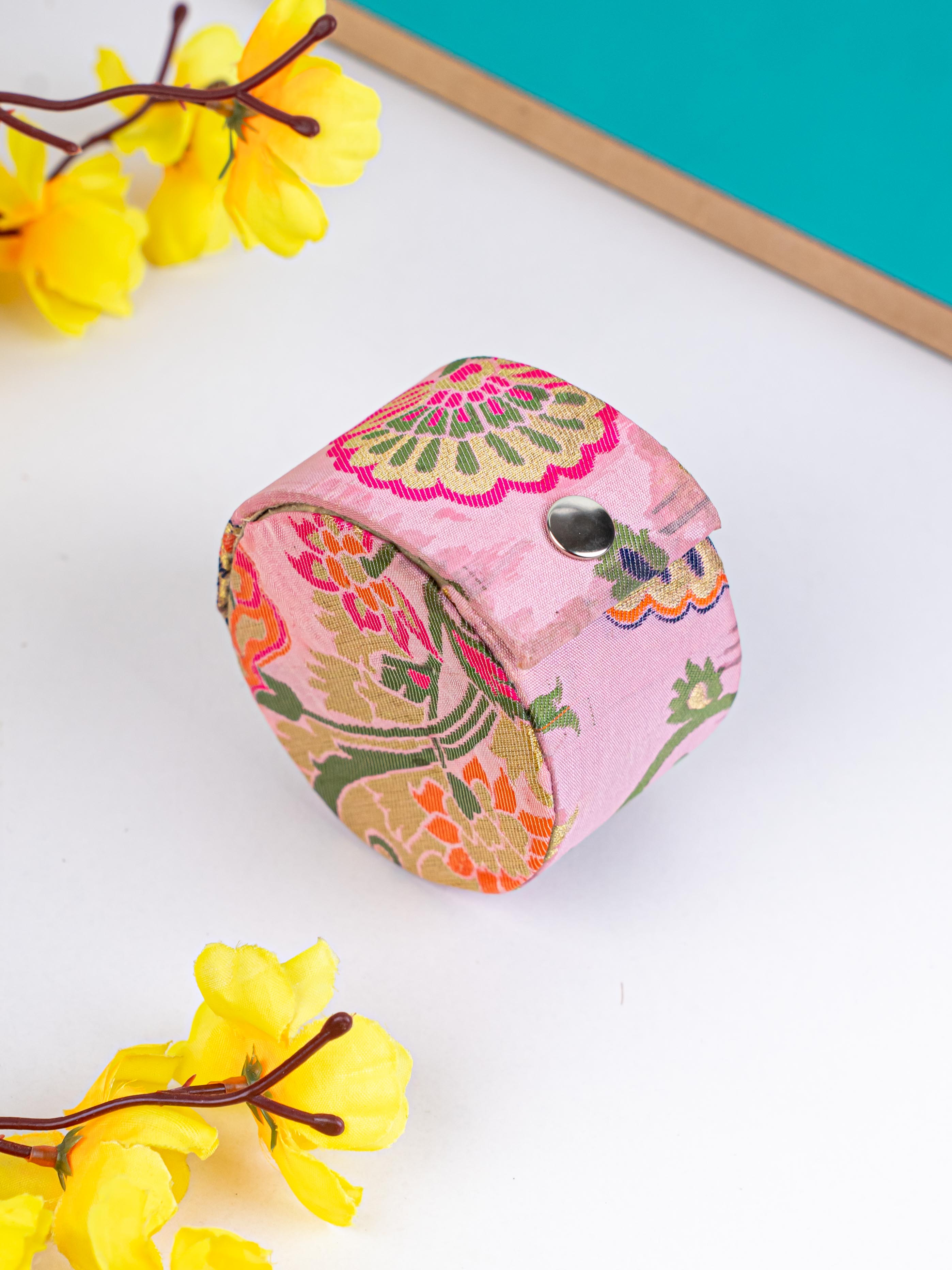 - The bangle holder's fabric is adorned with floral weaves adding touch of elegance.