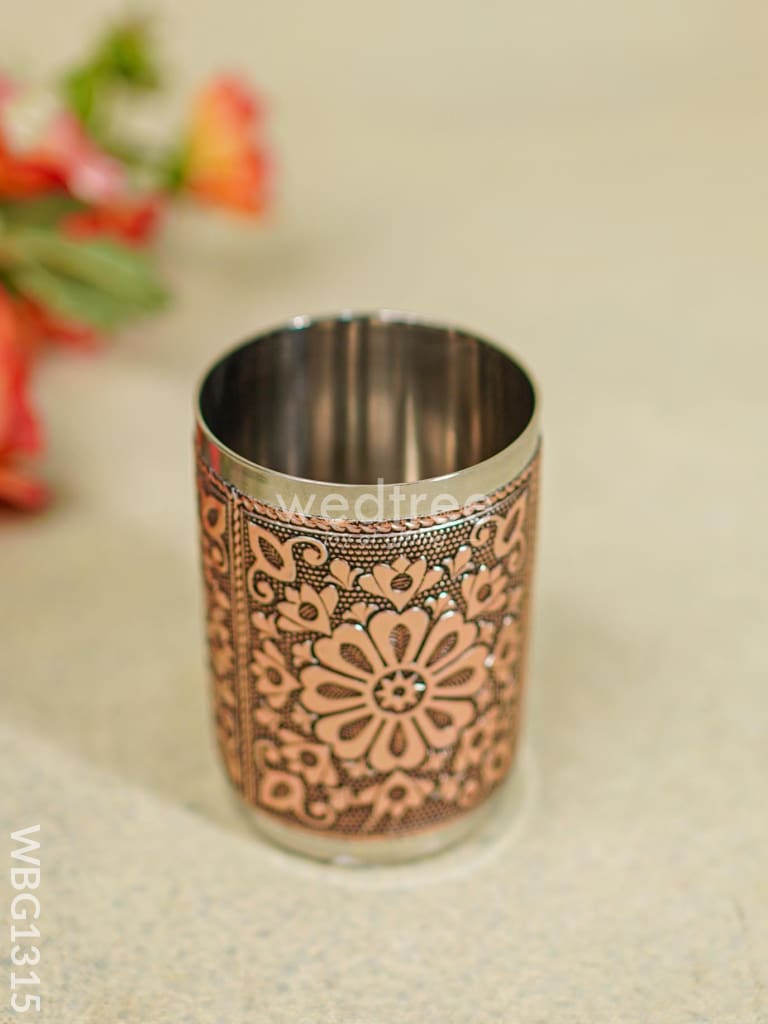 - On display here is a fabulous return gift option from Wedtree - a stainless steel tumbler/glass.