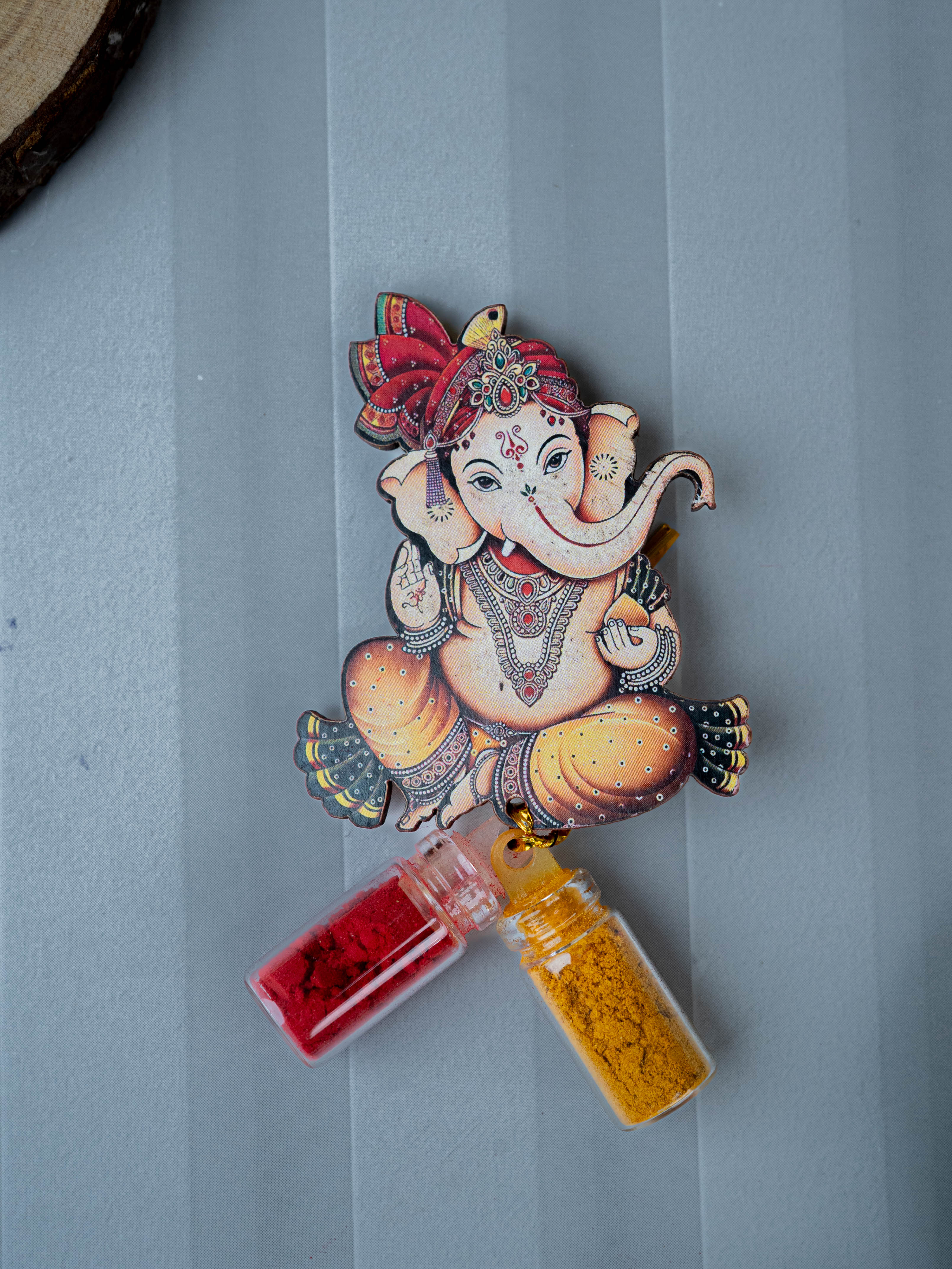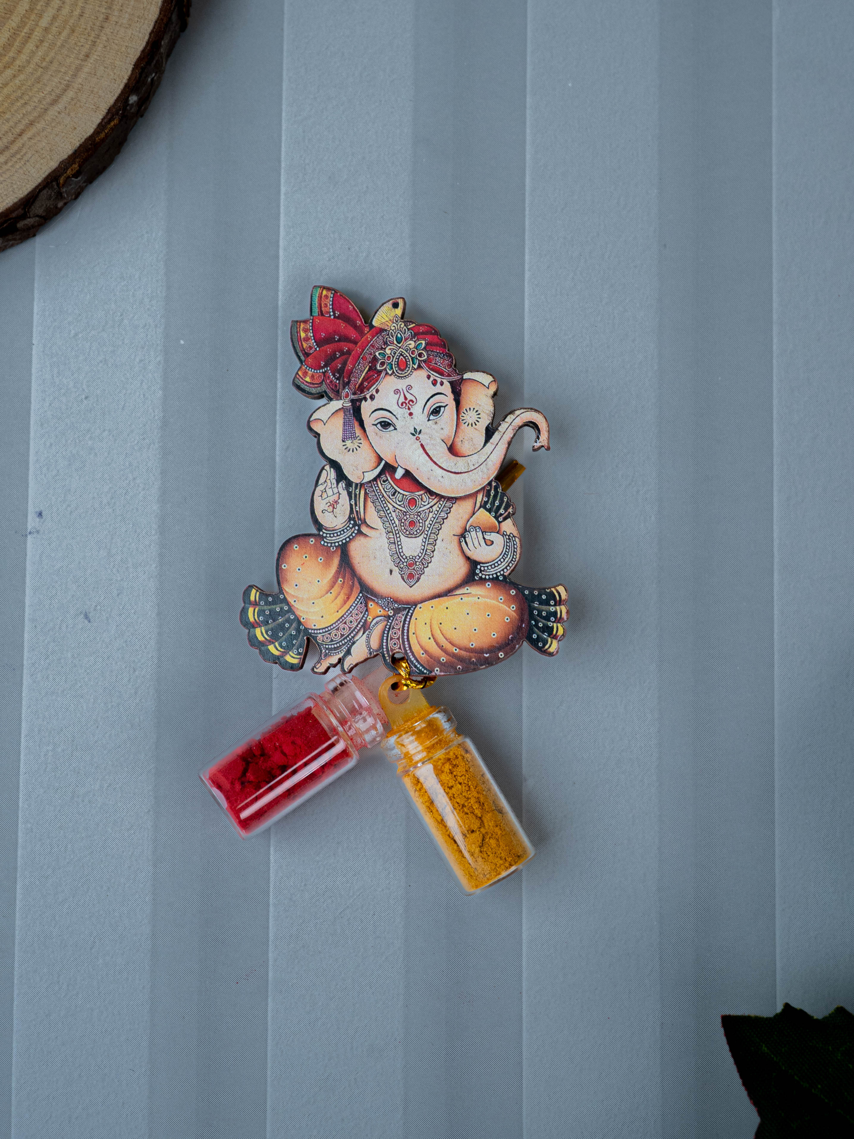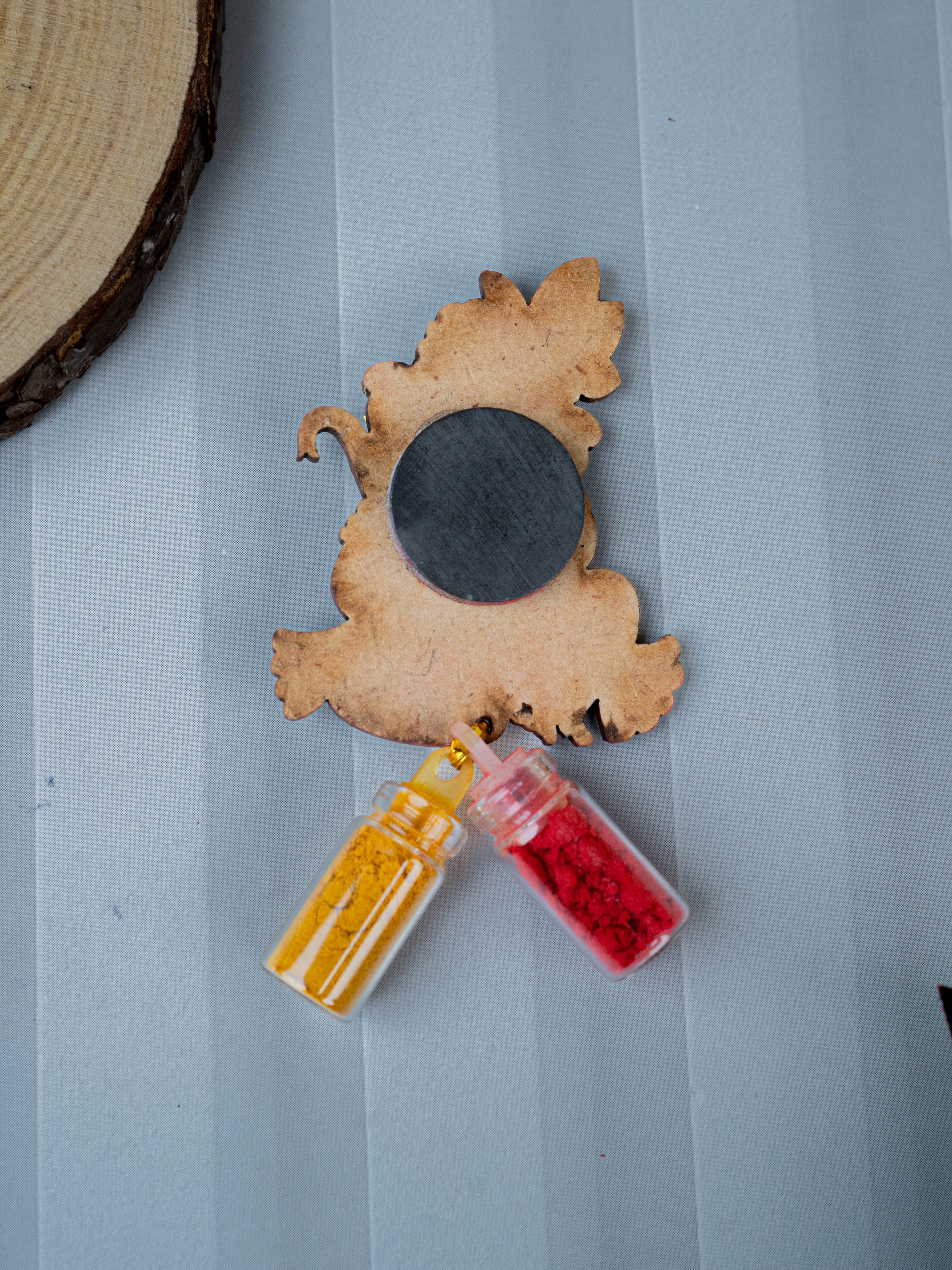 - Cute and Colorful Fridge Magnet with Haldi Kumkum featuring a Ganesha.