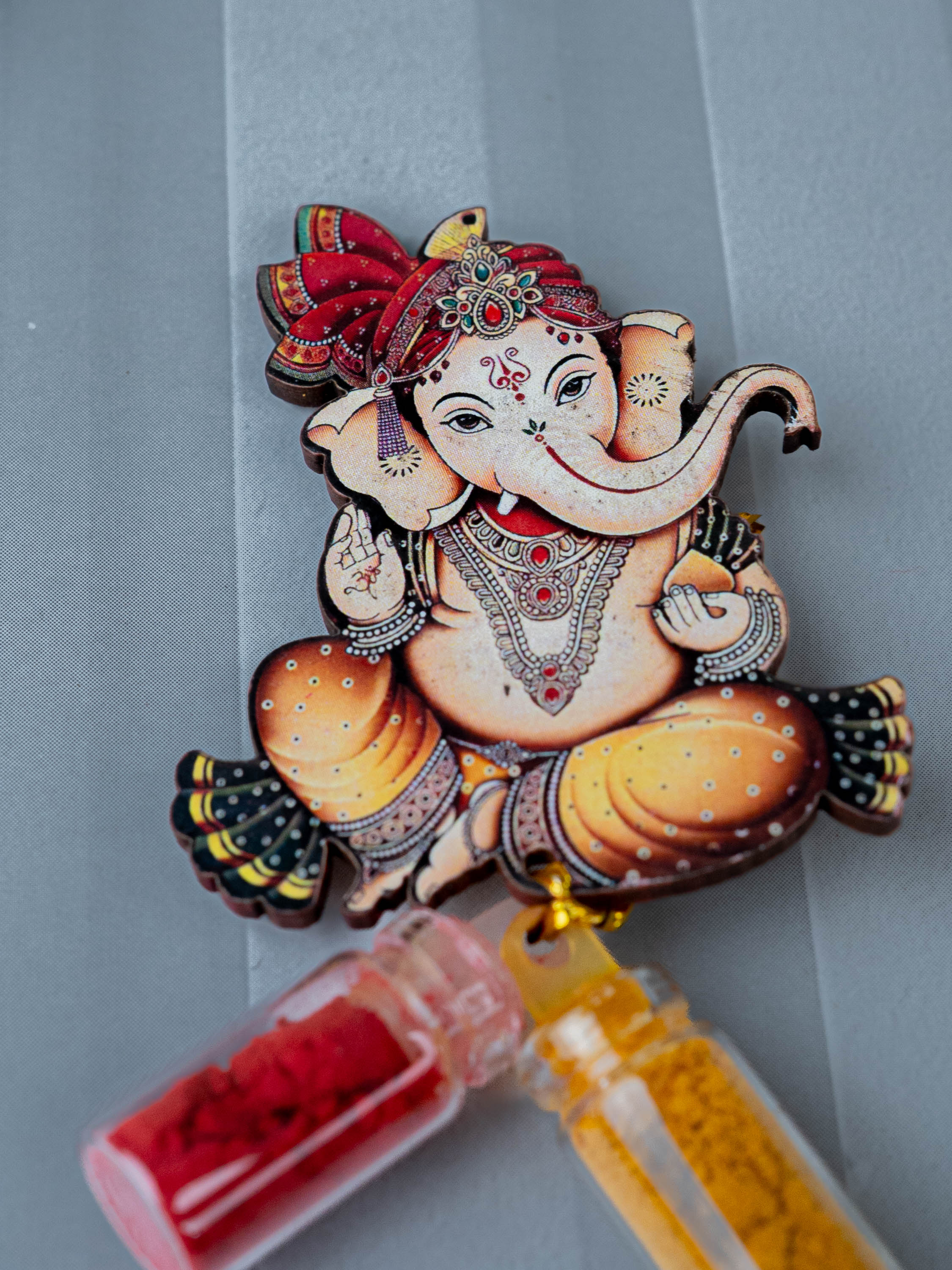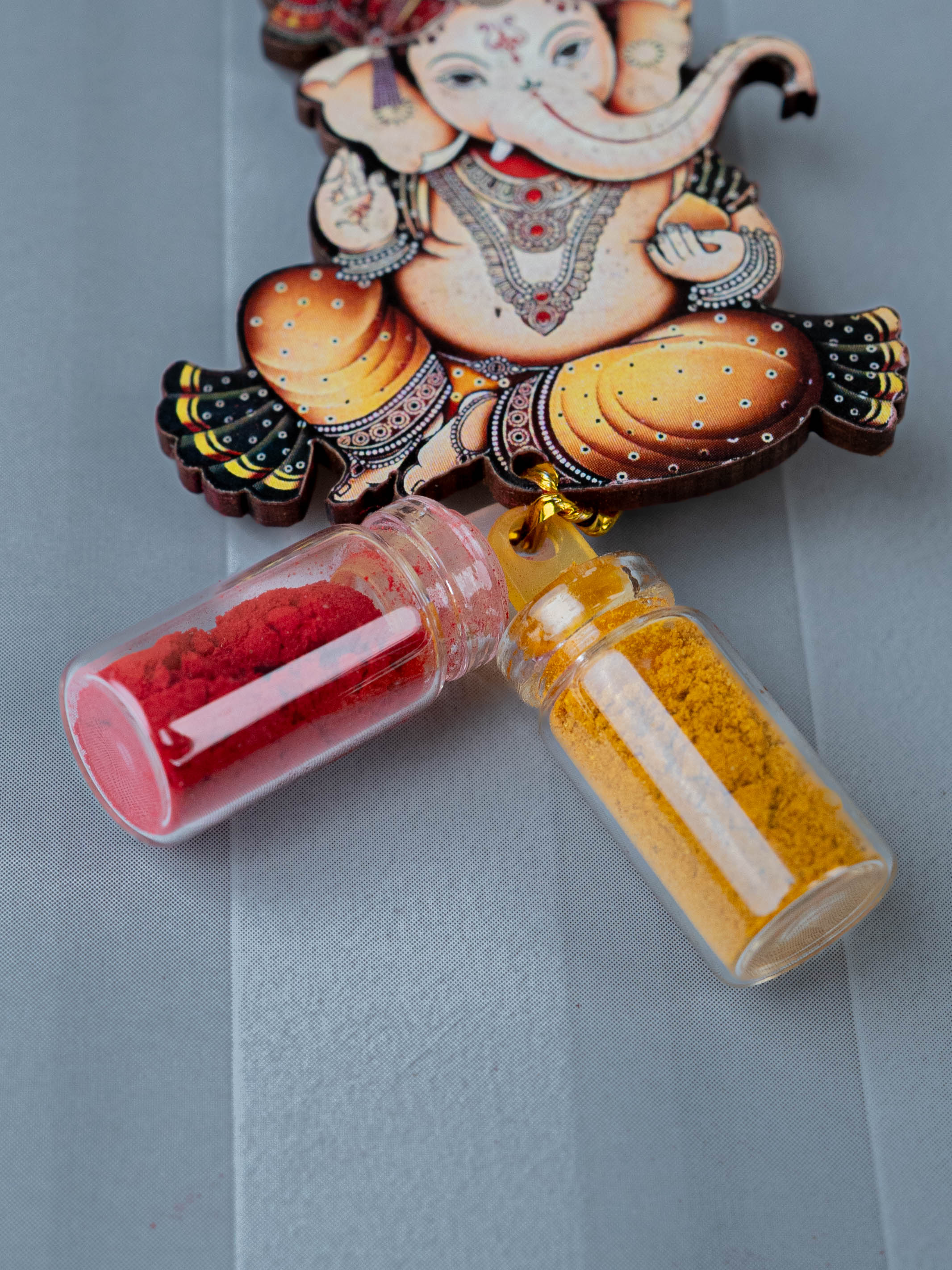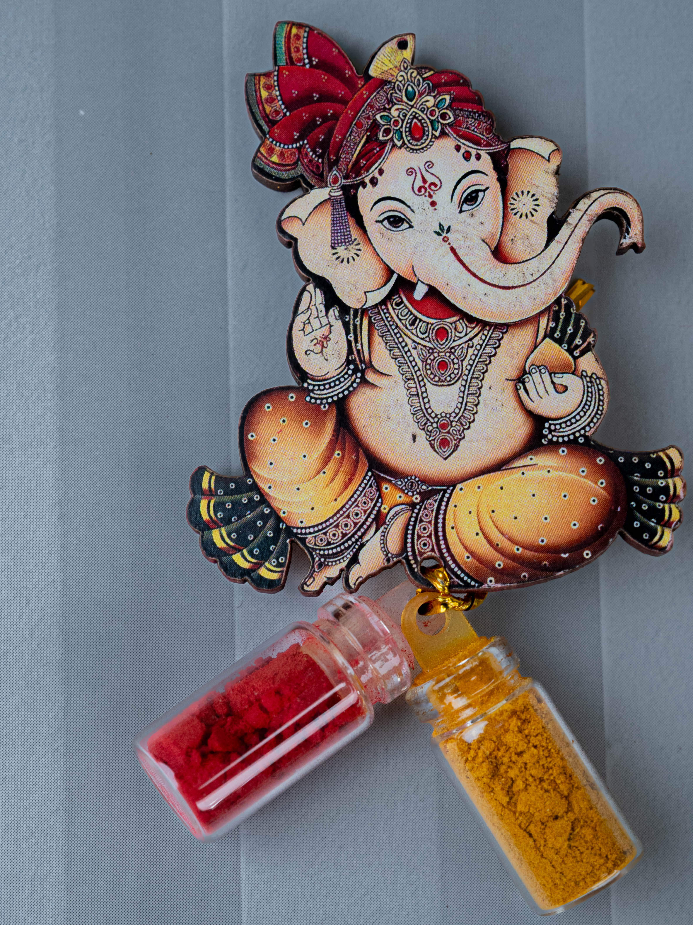 - Cute and Colorful Fridge Magnet with Haldi Kumkum featuring a Ganesha.