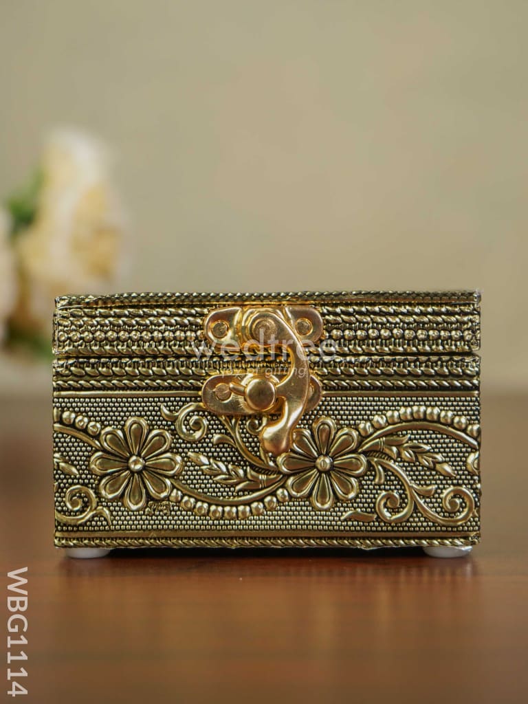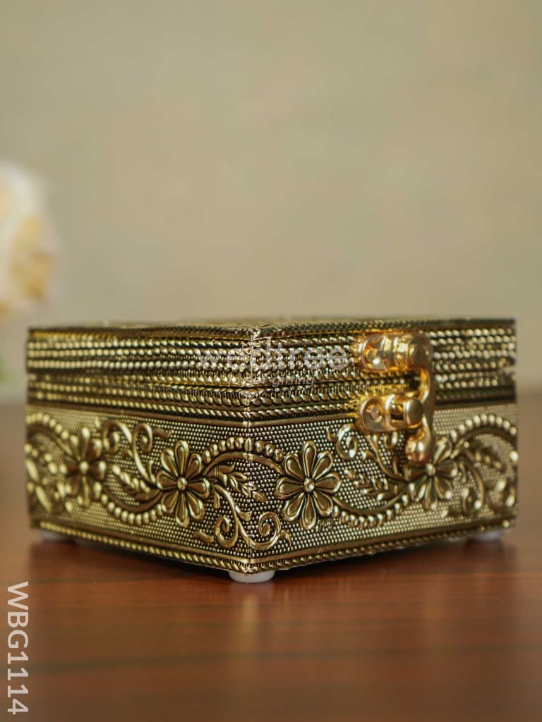 - Coming with a metal lock, it can be used as both dry fruit box and a treasured trinket box and the gold oxidised finish makes it look very grand and festive to be presented on occasions such as weddings, mehendi ceremonies, etc.