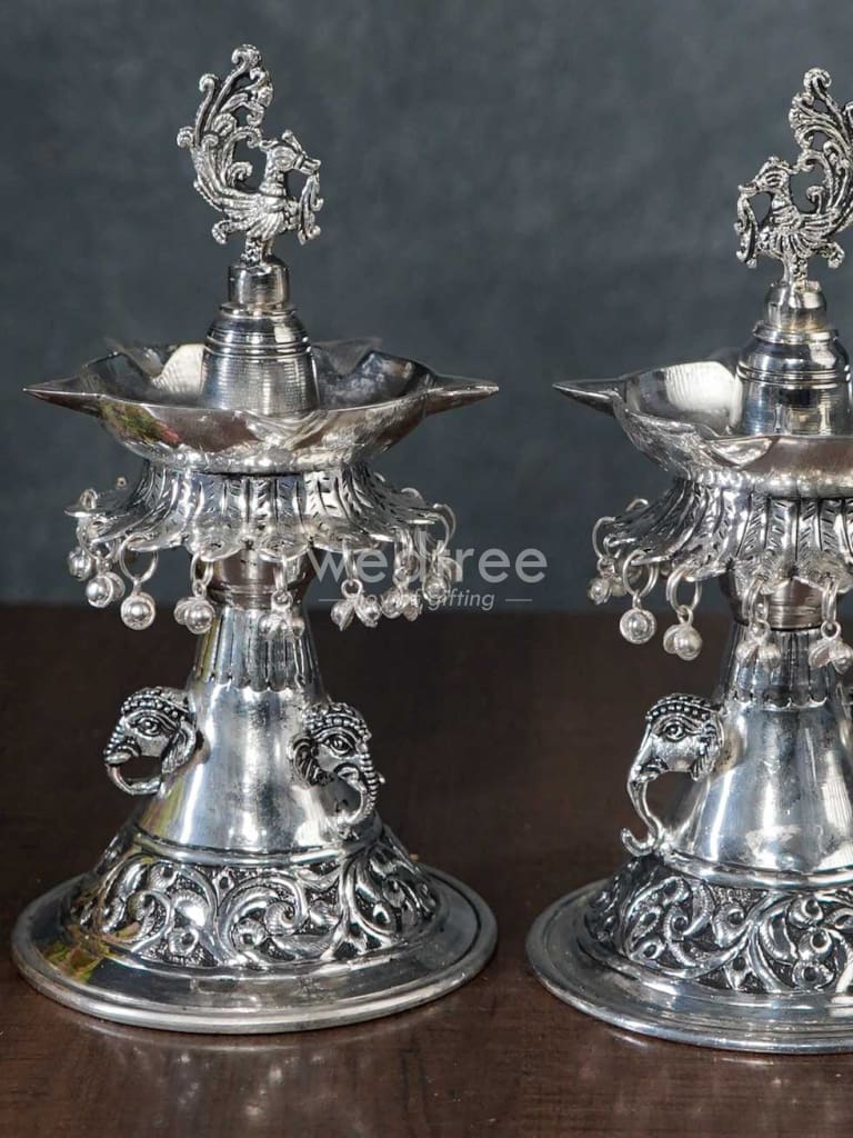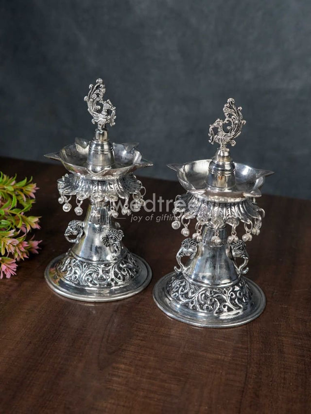 - Comes as a set of 2 and the stem of the diya features intricately carved elephants on all sides.