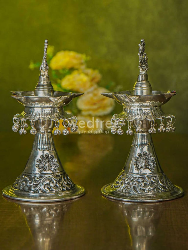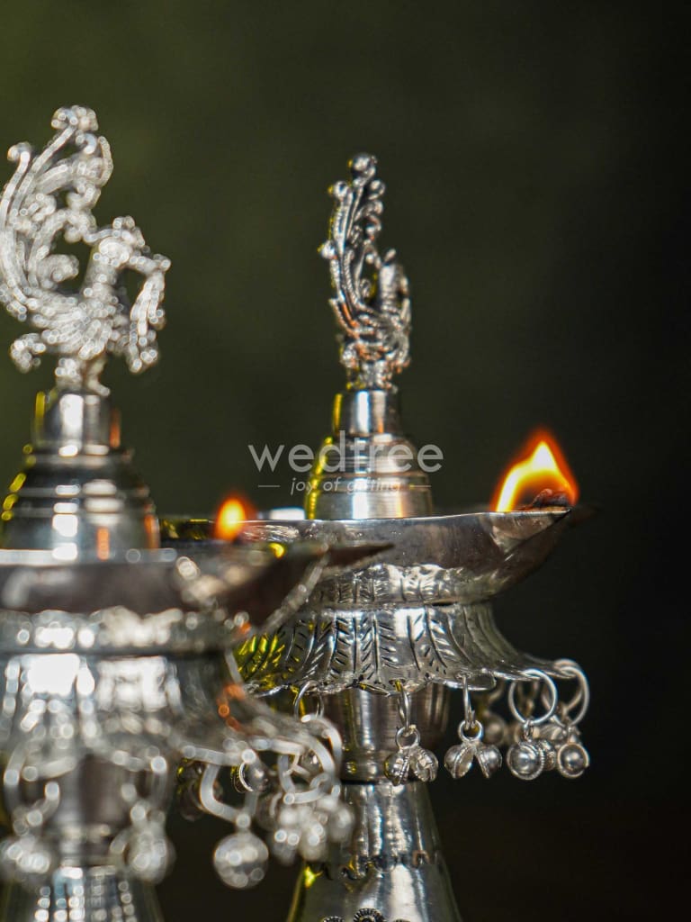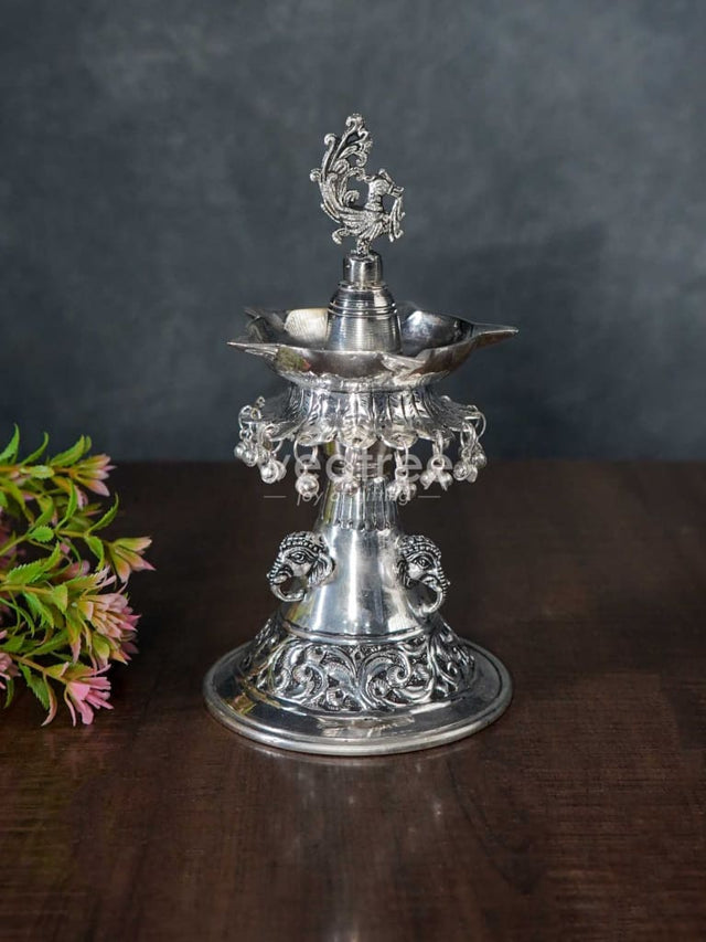 - Traditional kuthuvilaku that features beautiful Annapakshi motifs on the top.