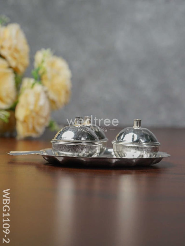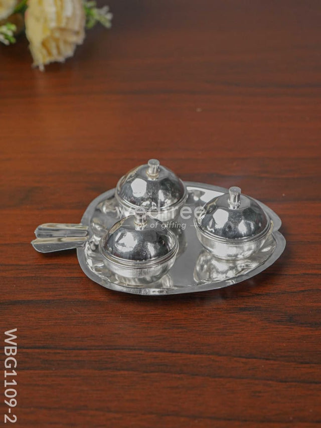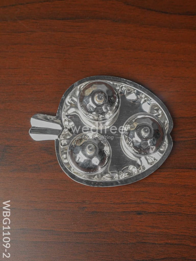 German Silver Apple Shaped Haldi/Kumkum Holder with 3 Cups - WBG1109-2