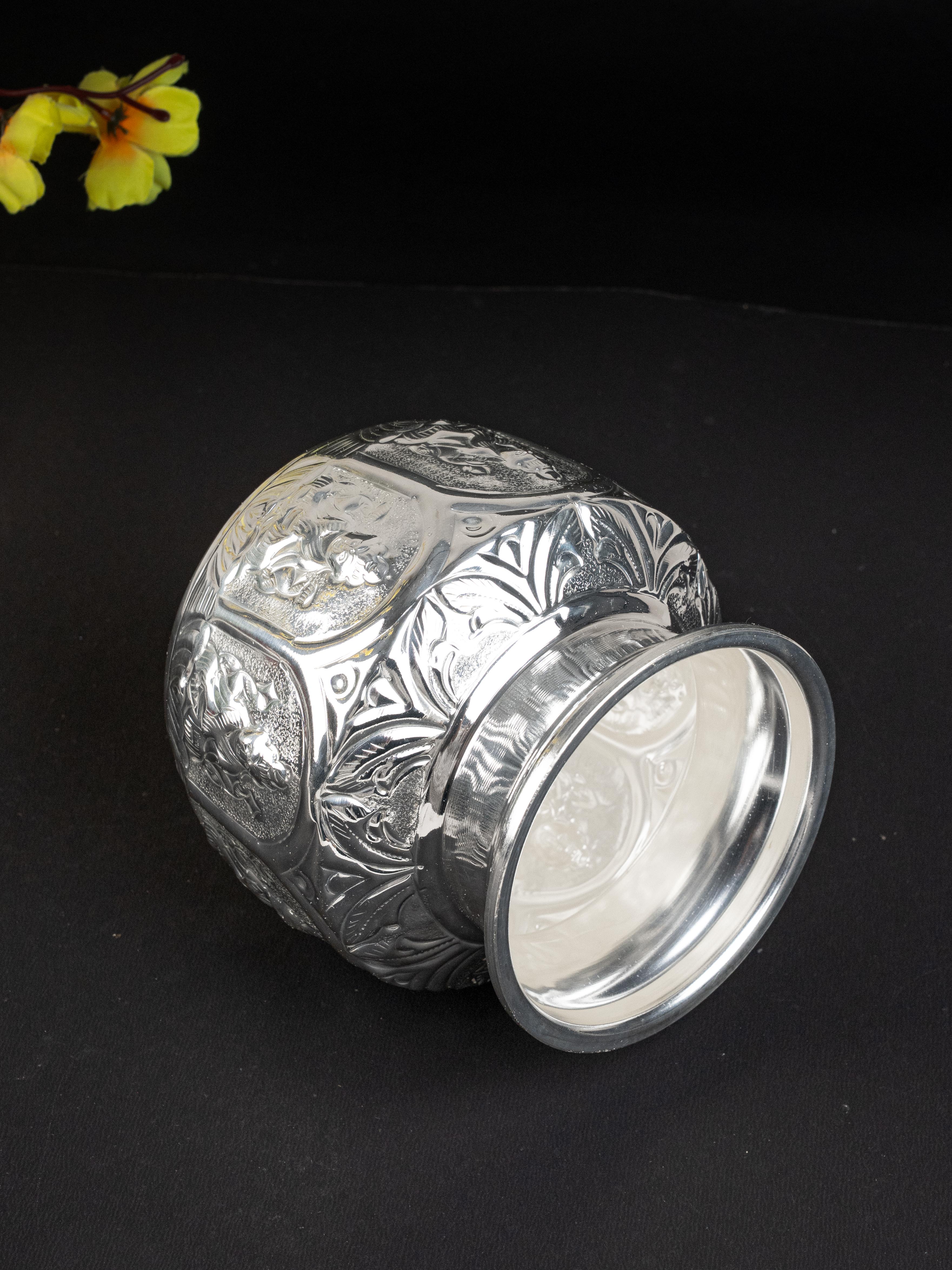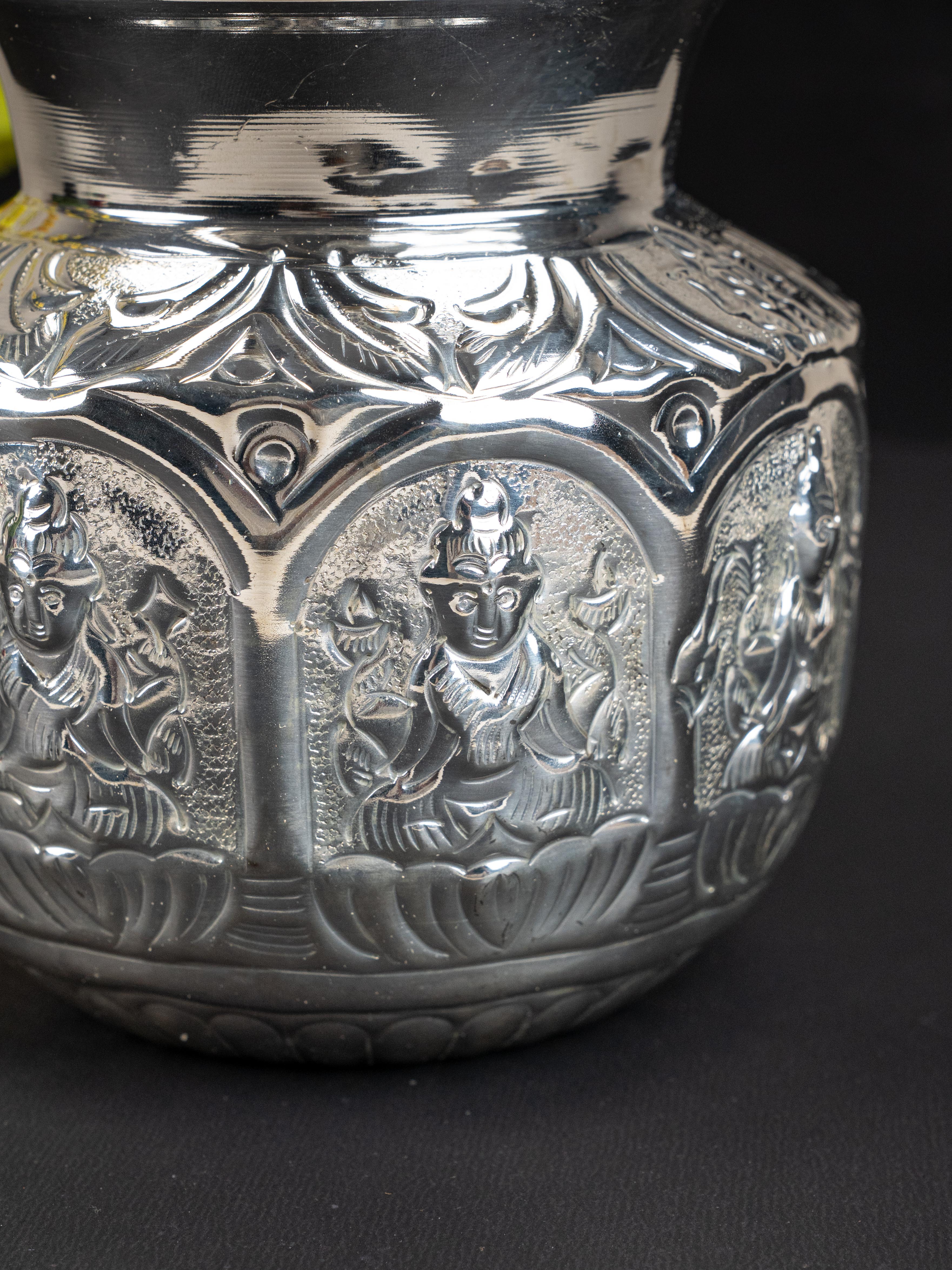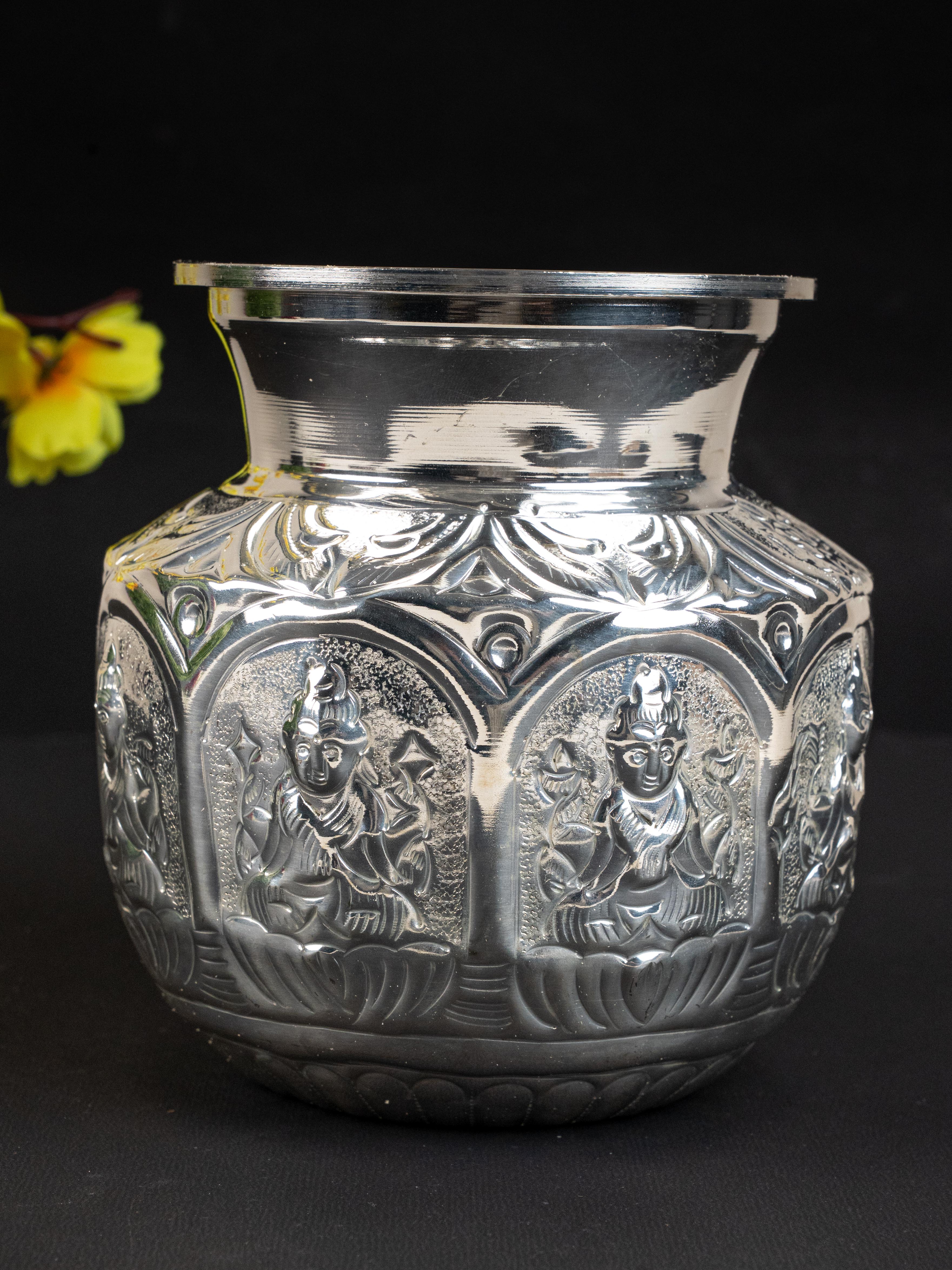 - This Exquisite Ashtalakshmi Kudam is Crafted from High-Quality German Silver, known for its Finish and Durability.