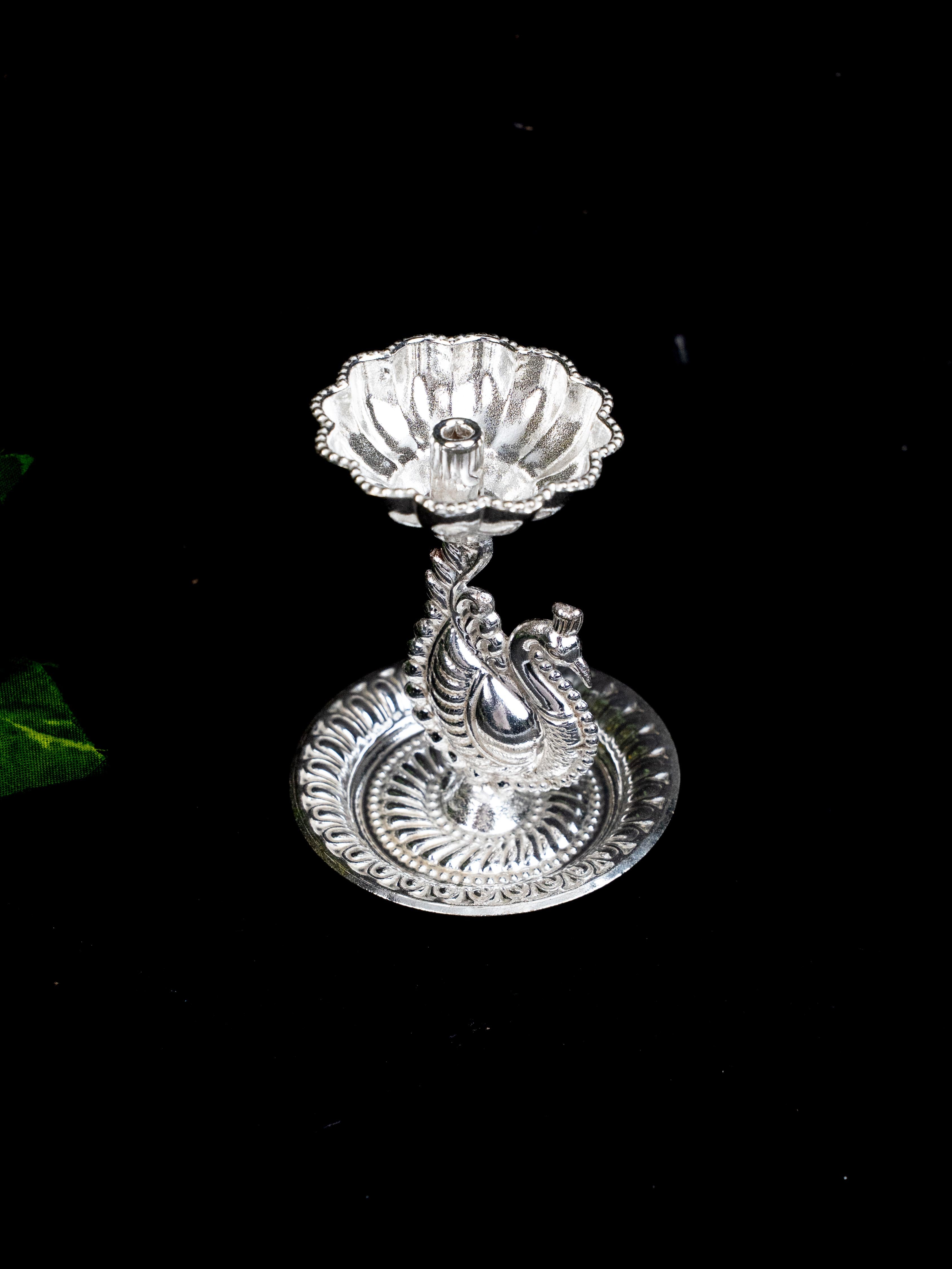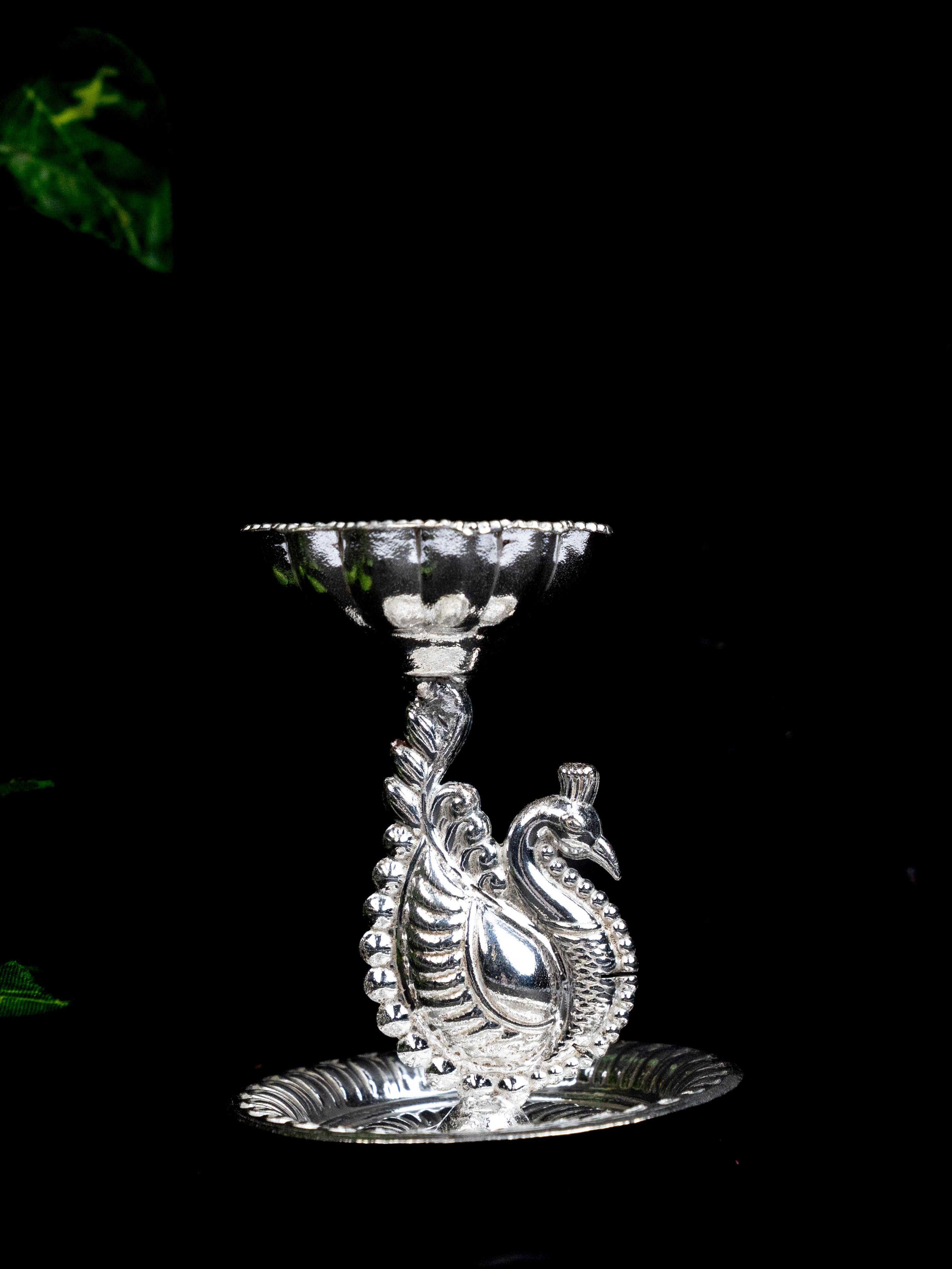 German Silver Diya with Peacock - WBG1868