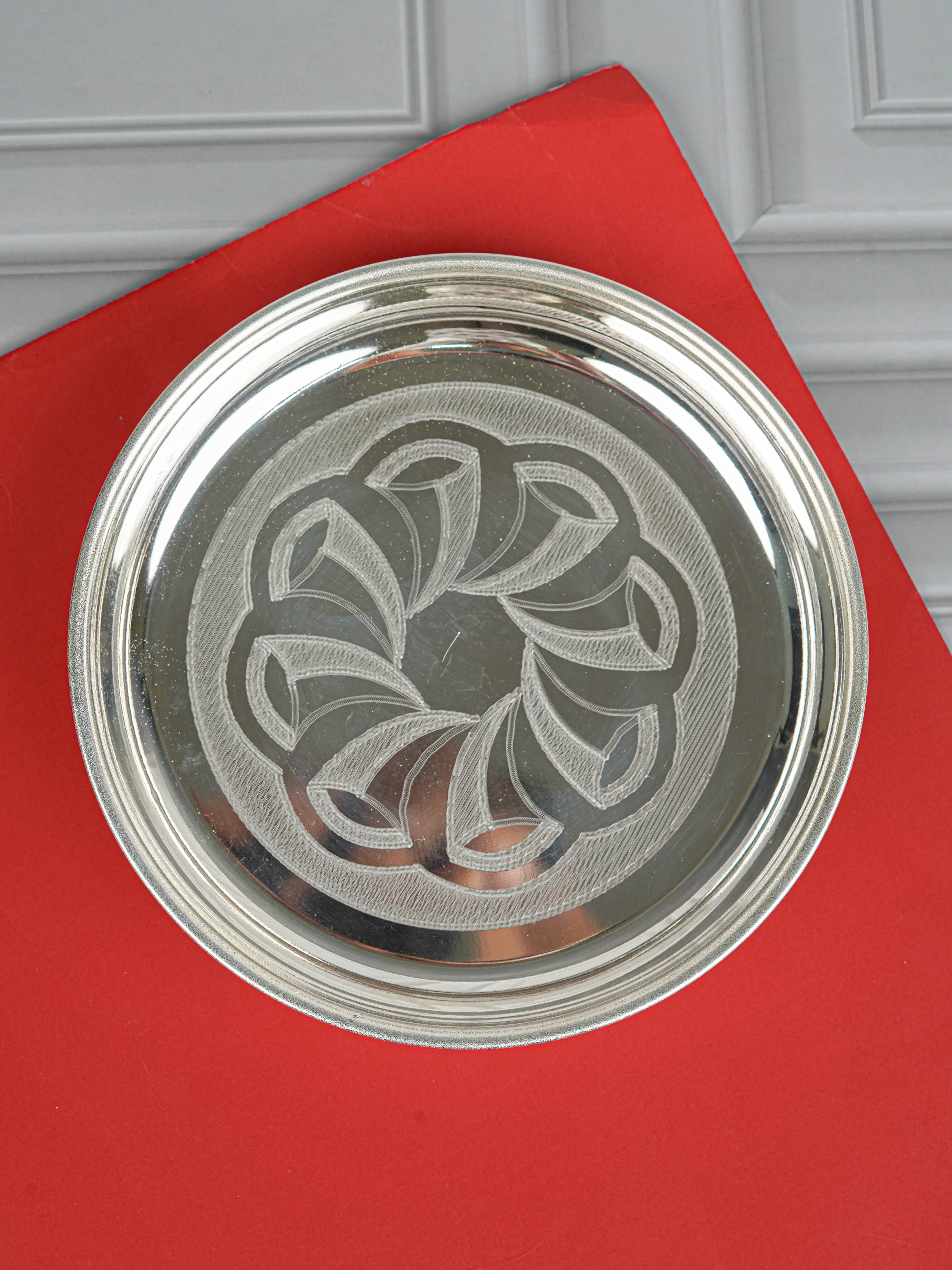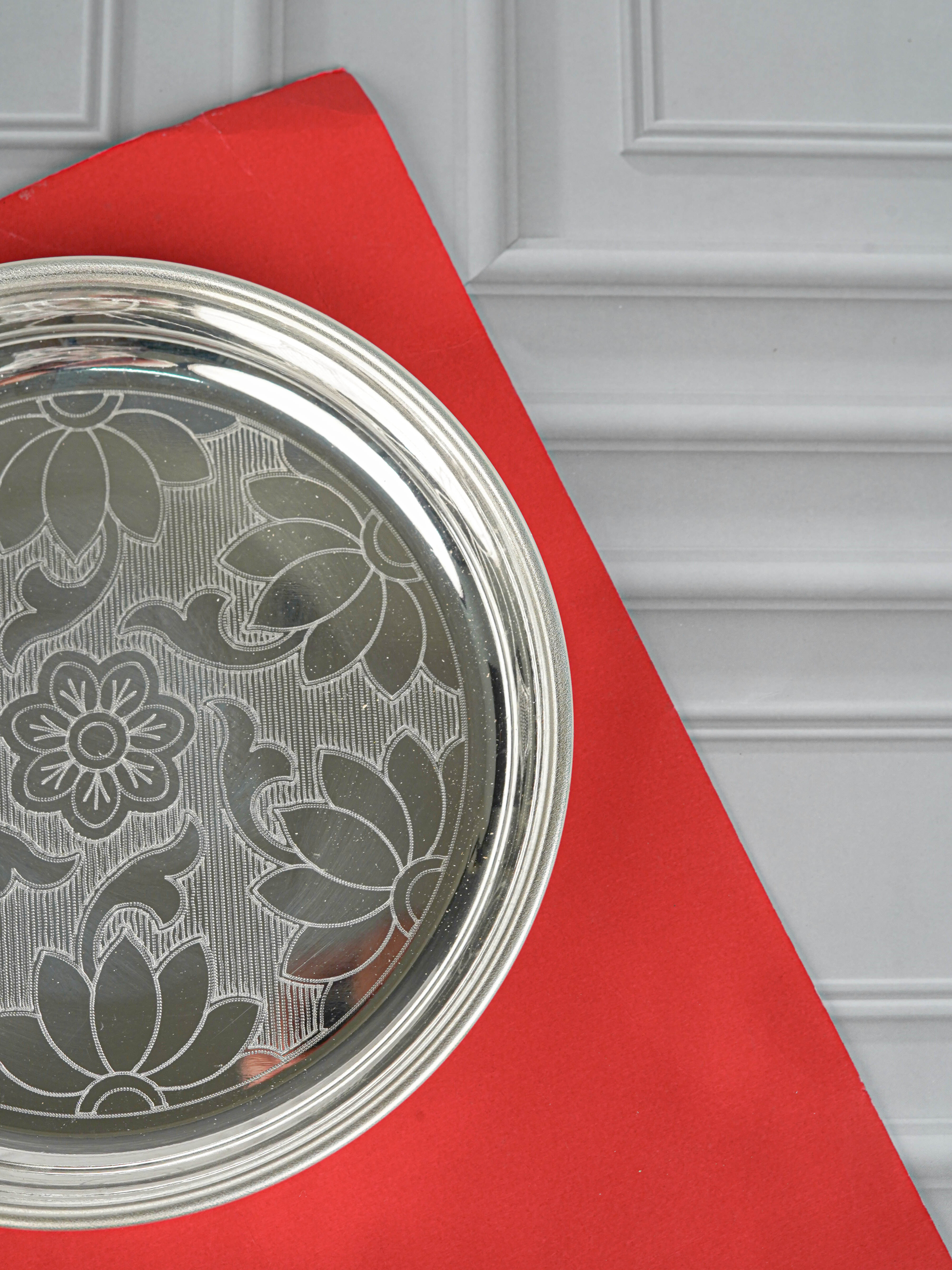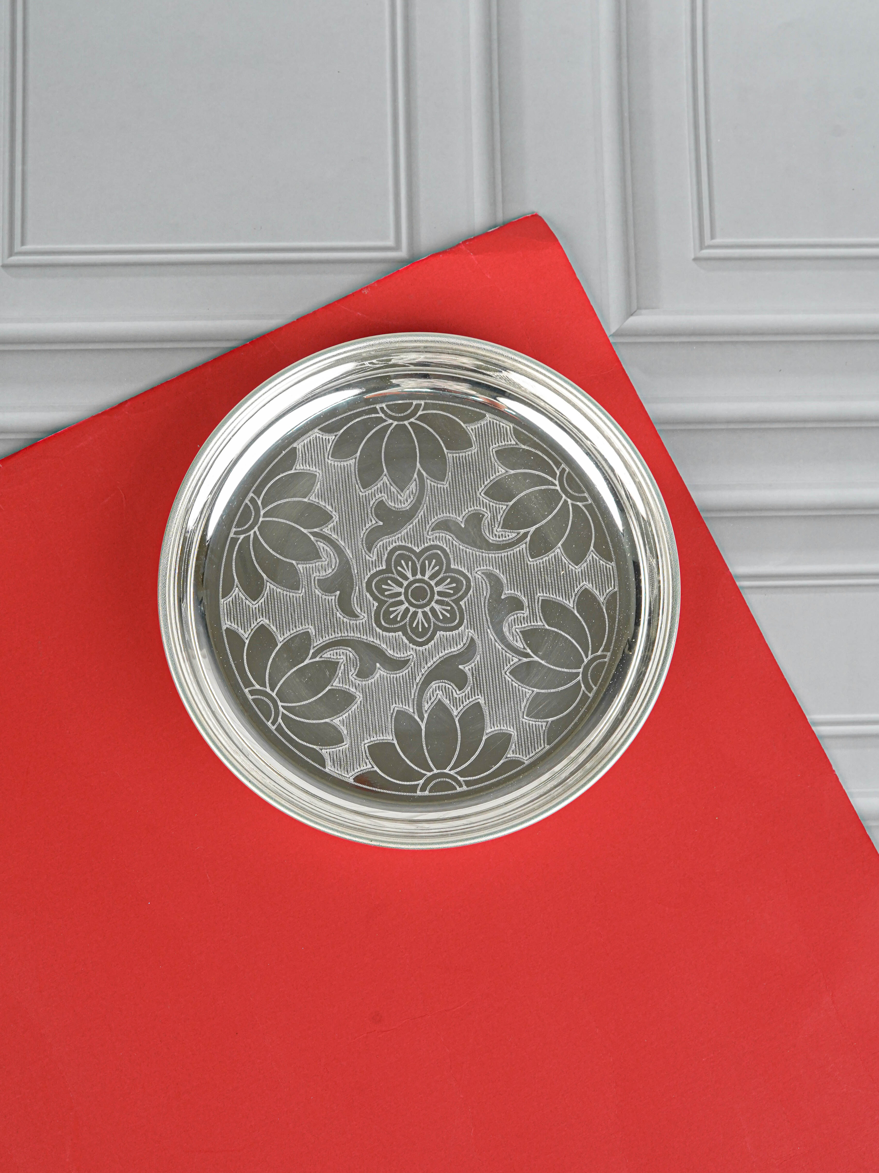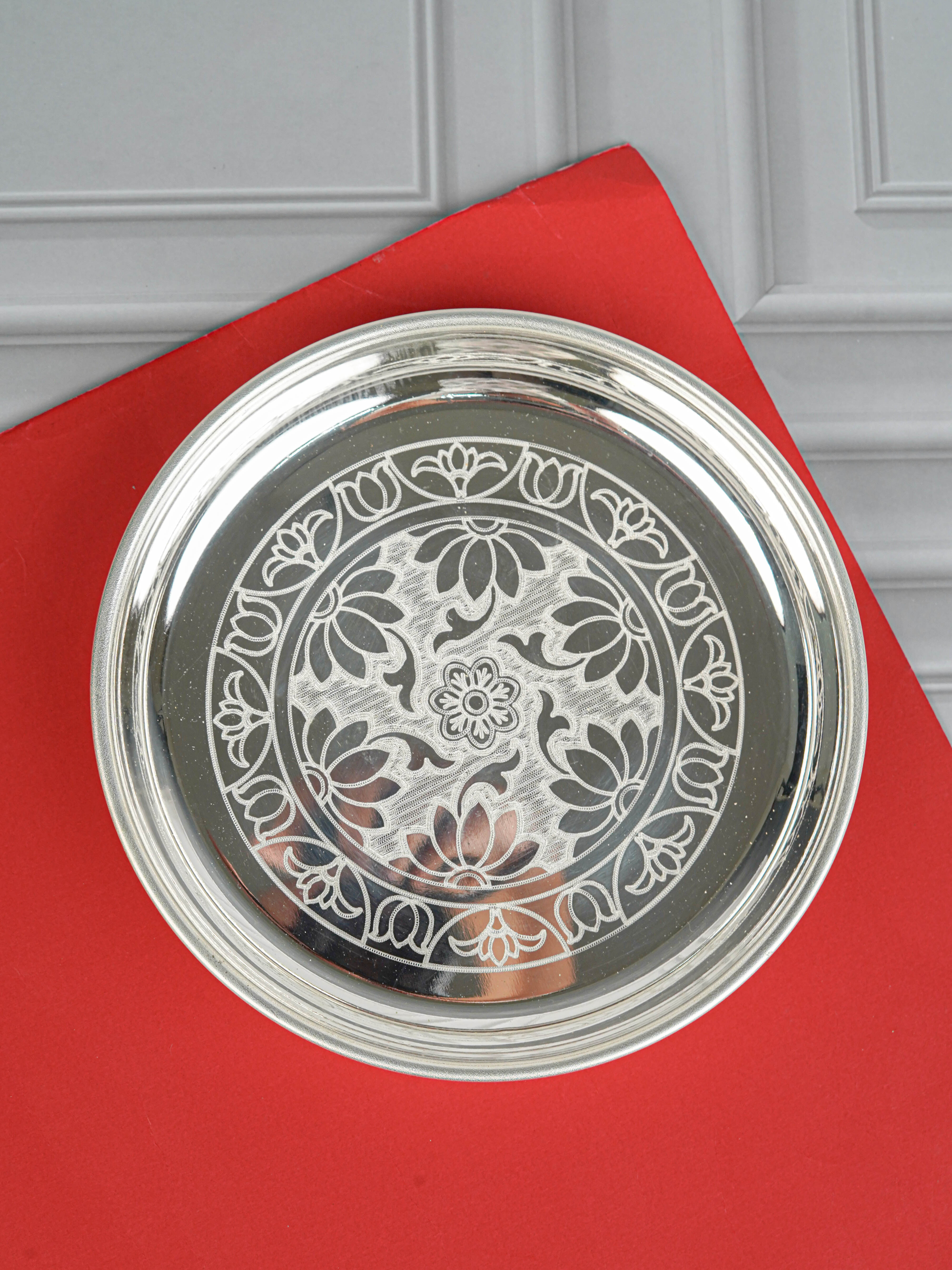 - Featured is a lovely plate crafted from premium German silver apt for your everyday Pooja!