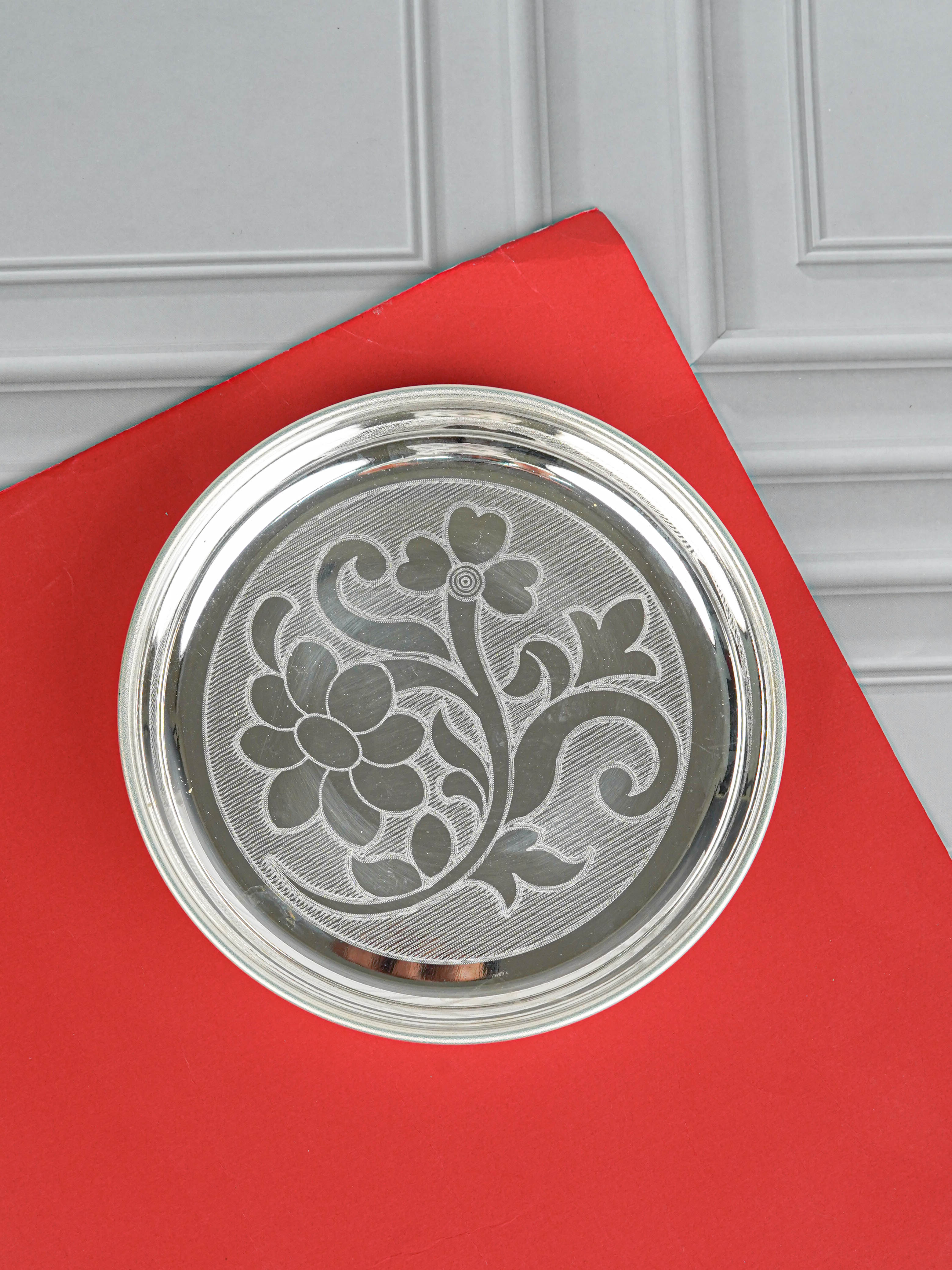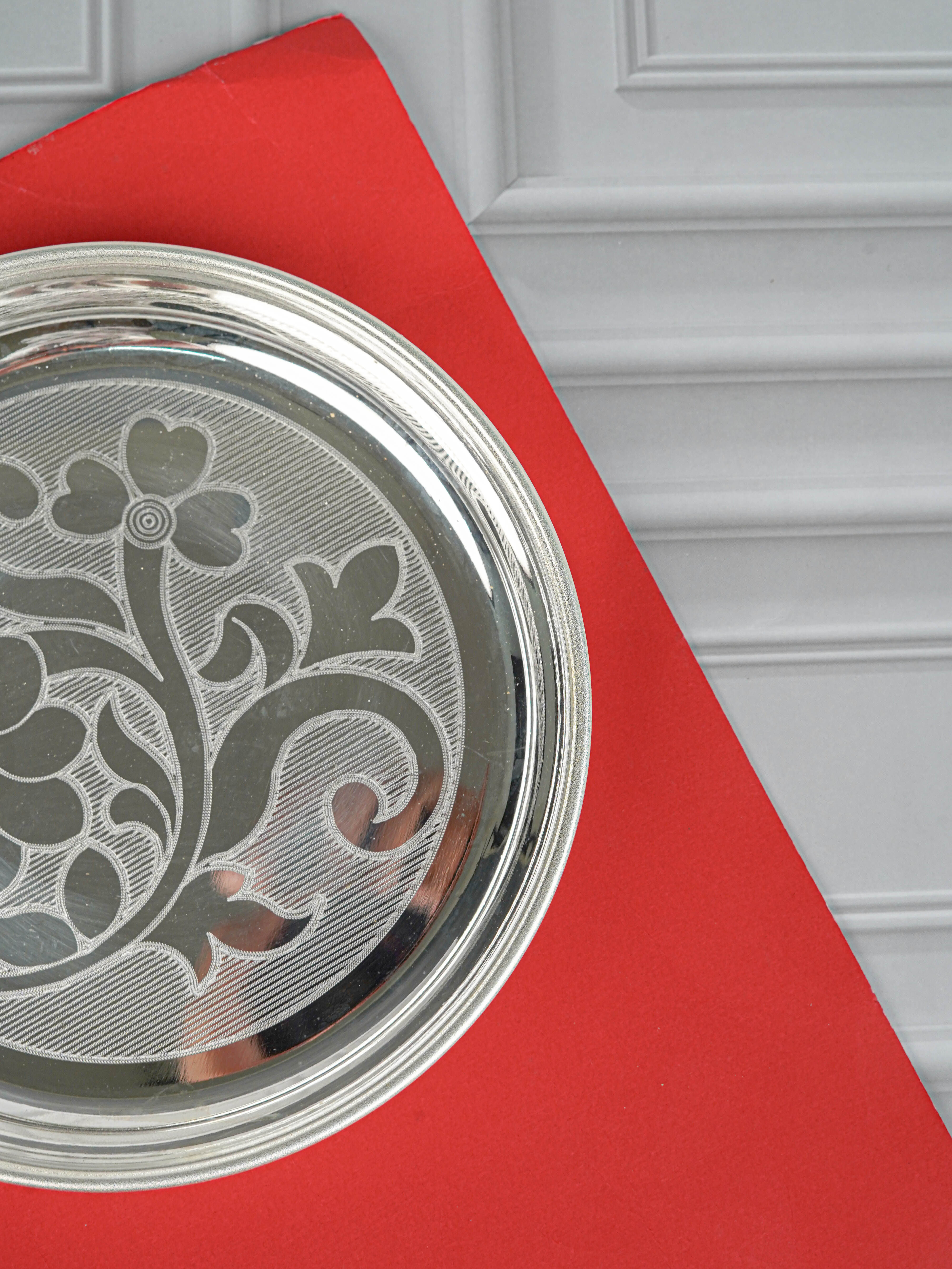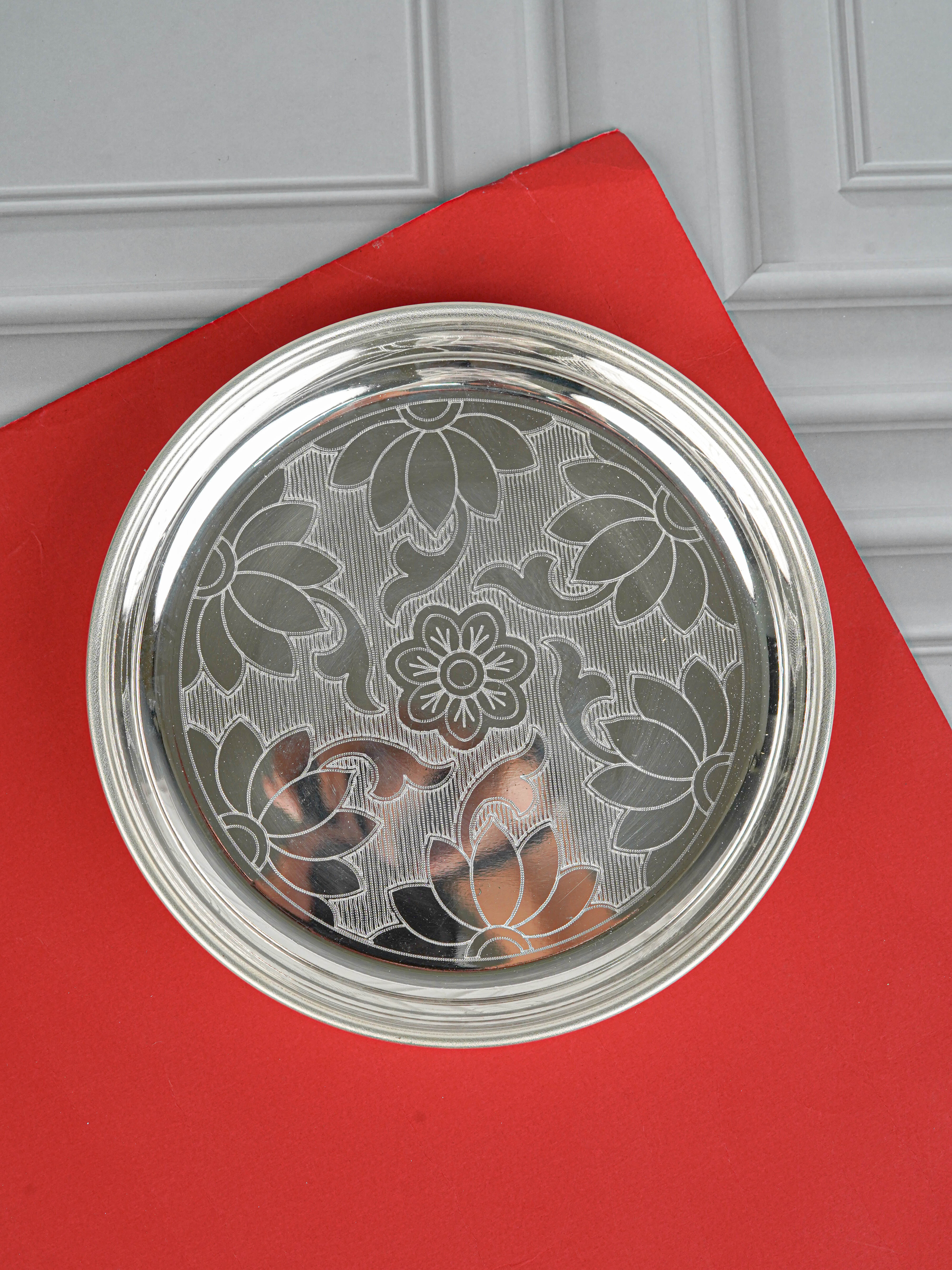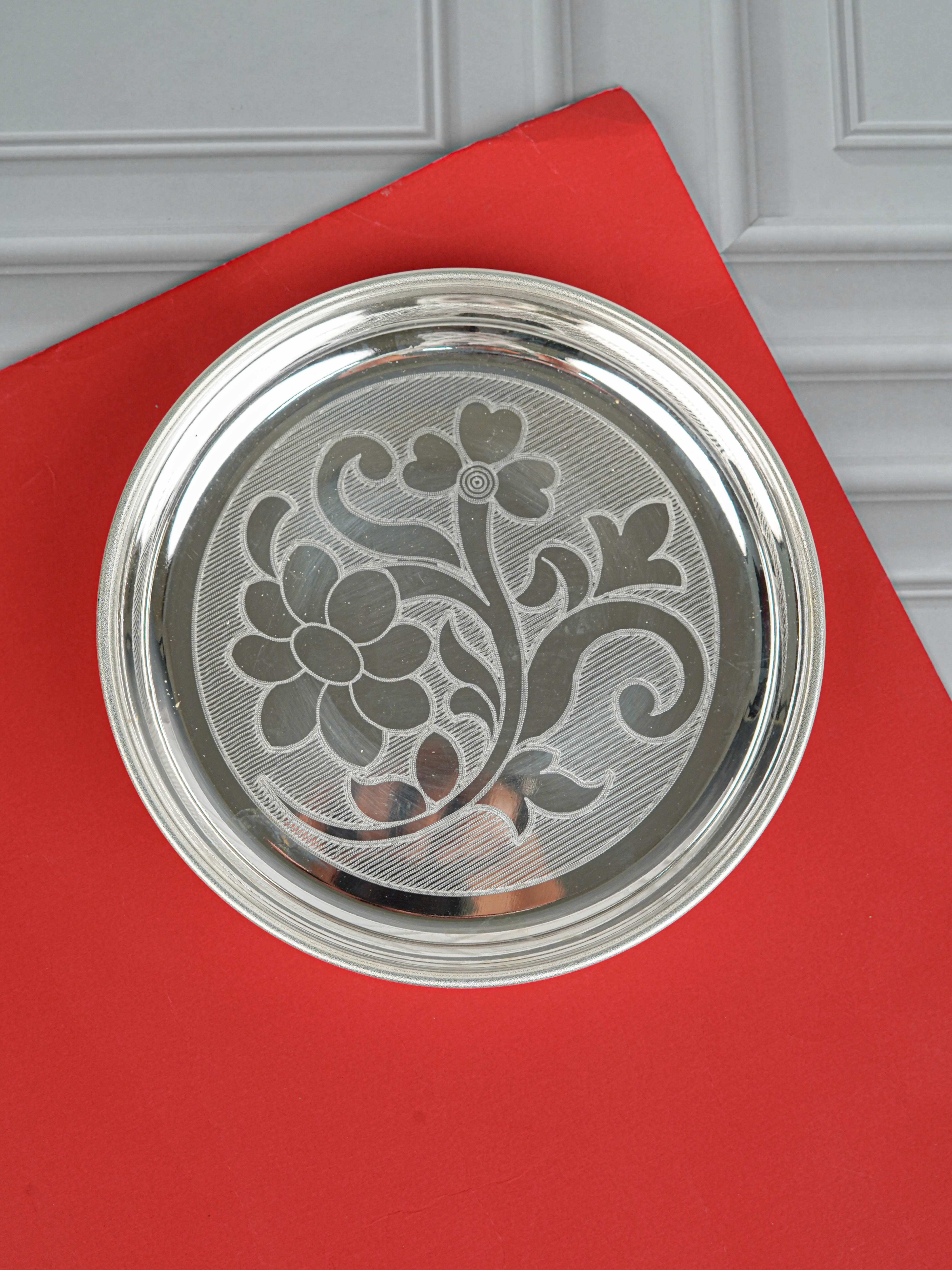 - The plate is embellished with fine Floral engravings all over adding touch of elegance.