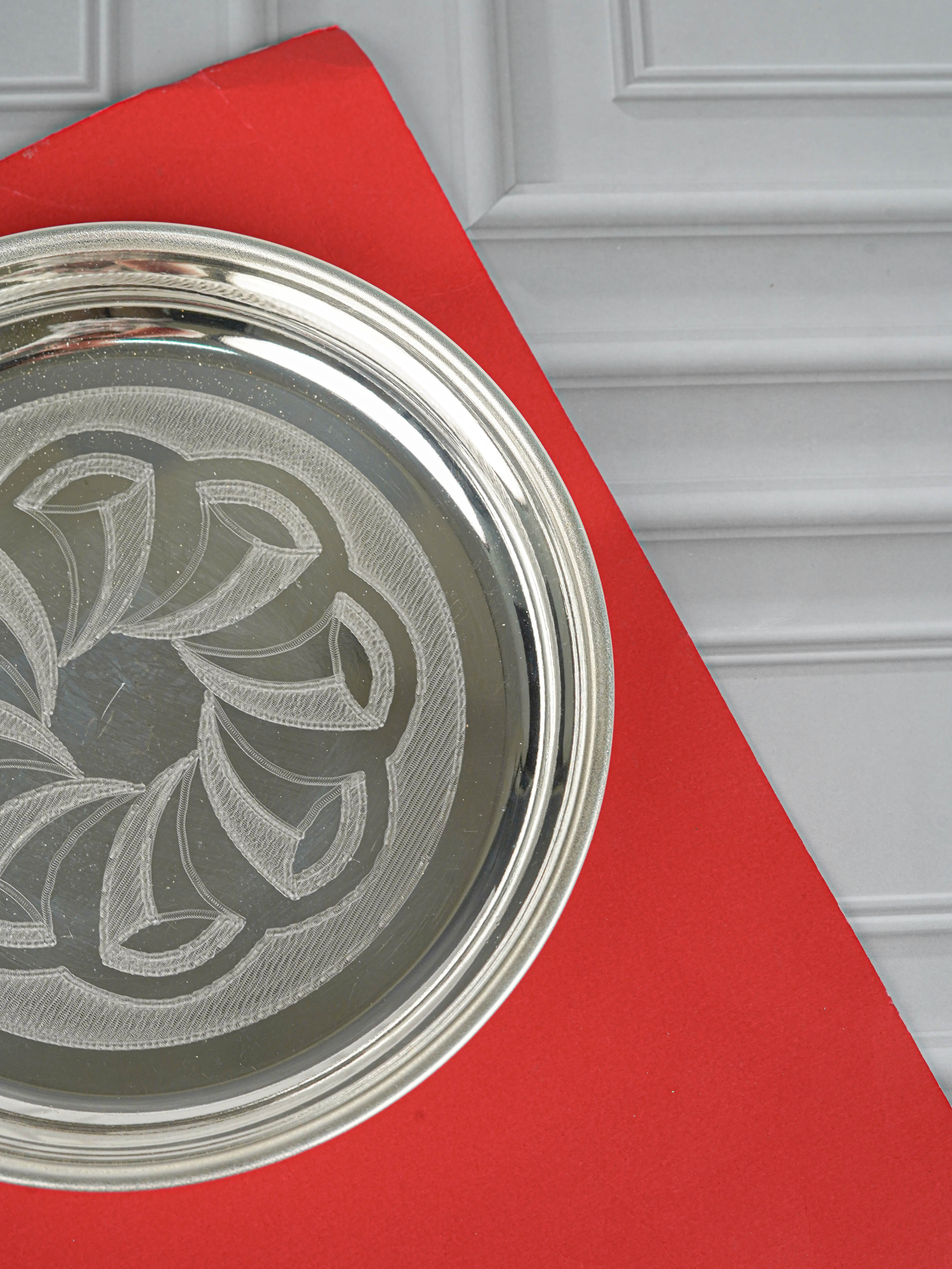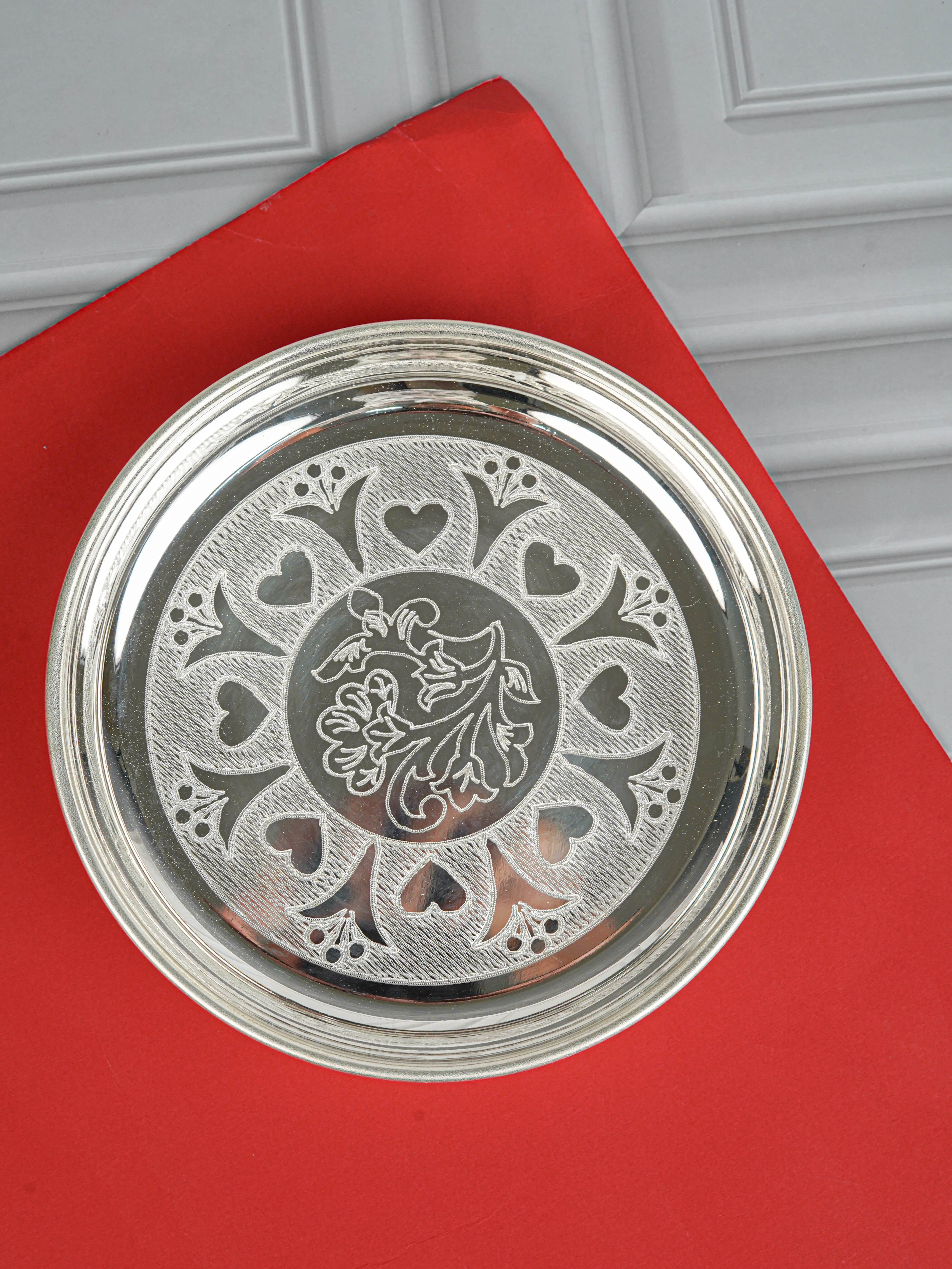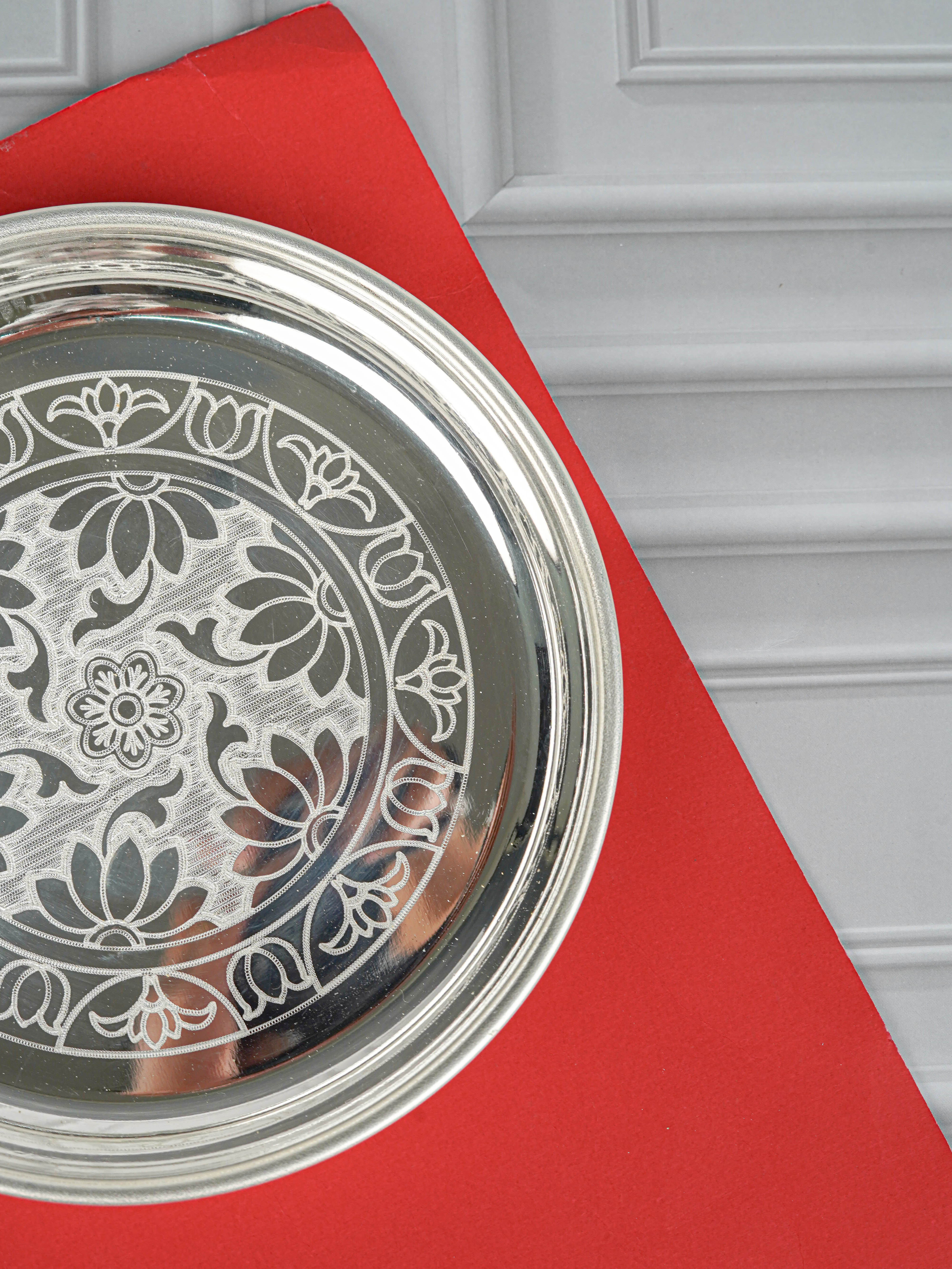 - The plate is embellished with fine Floral engravings all over adding touch of elegance.