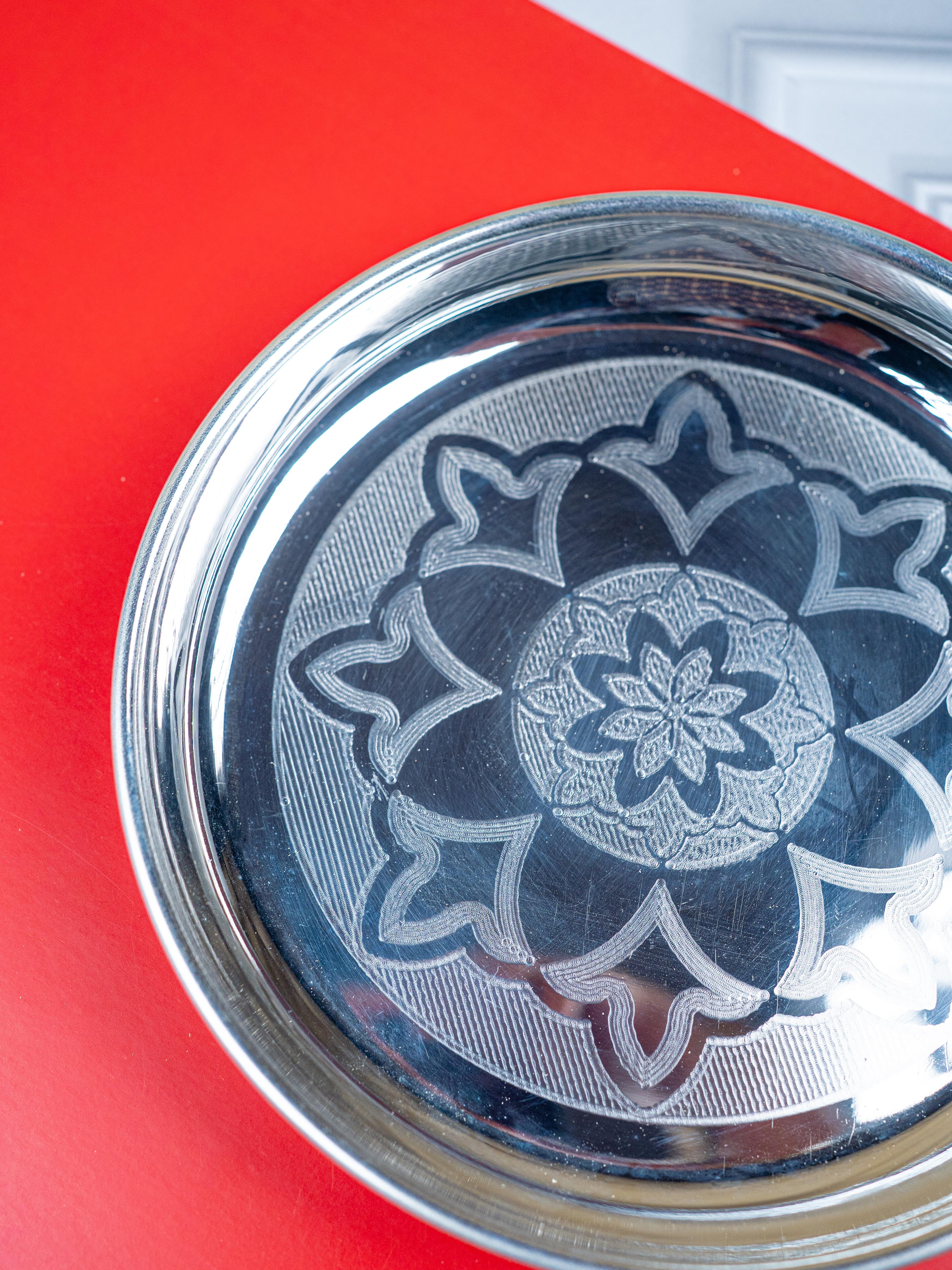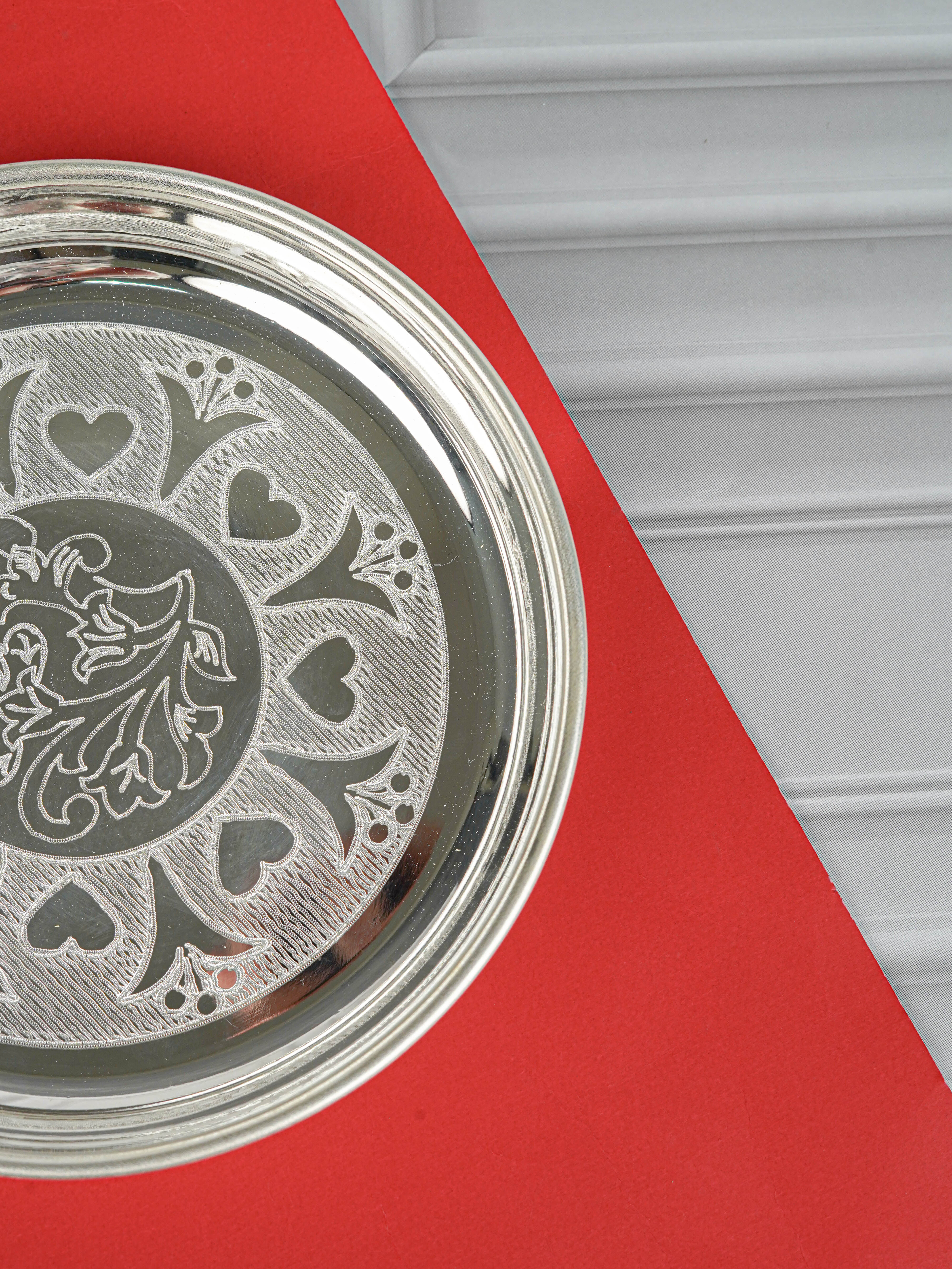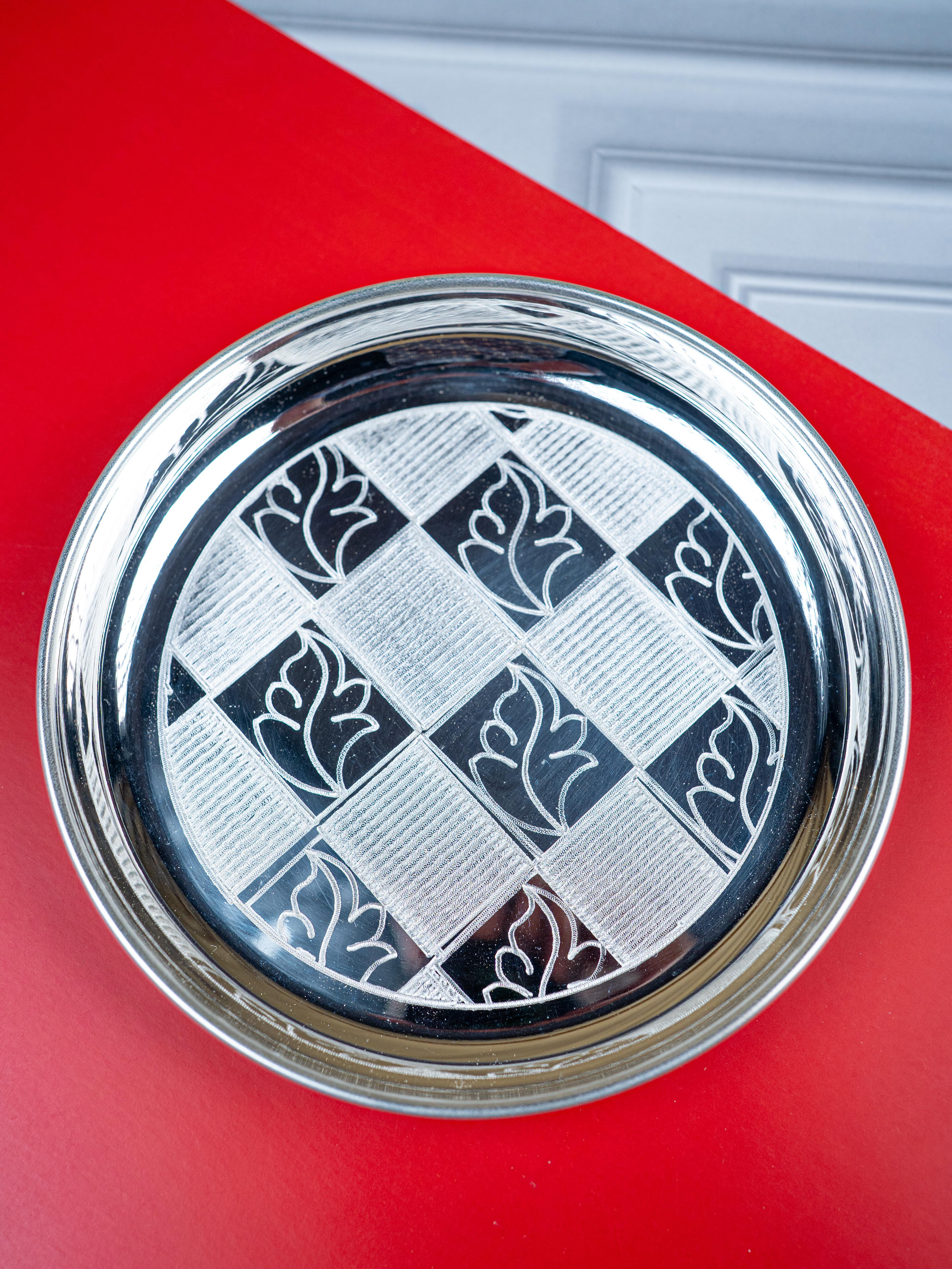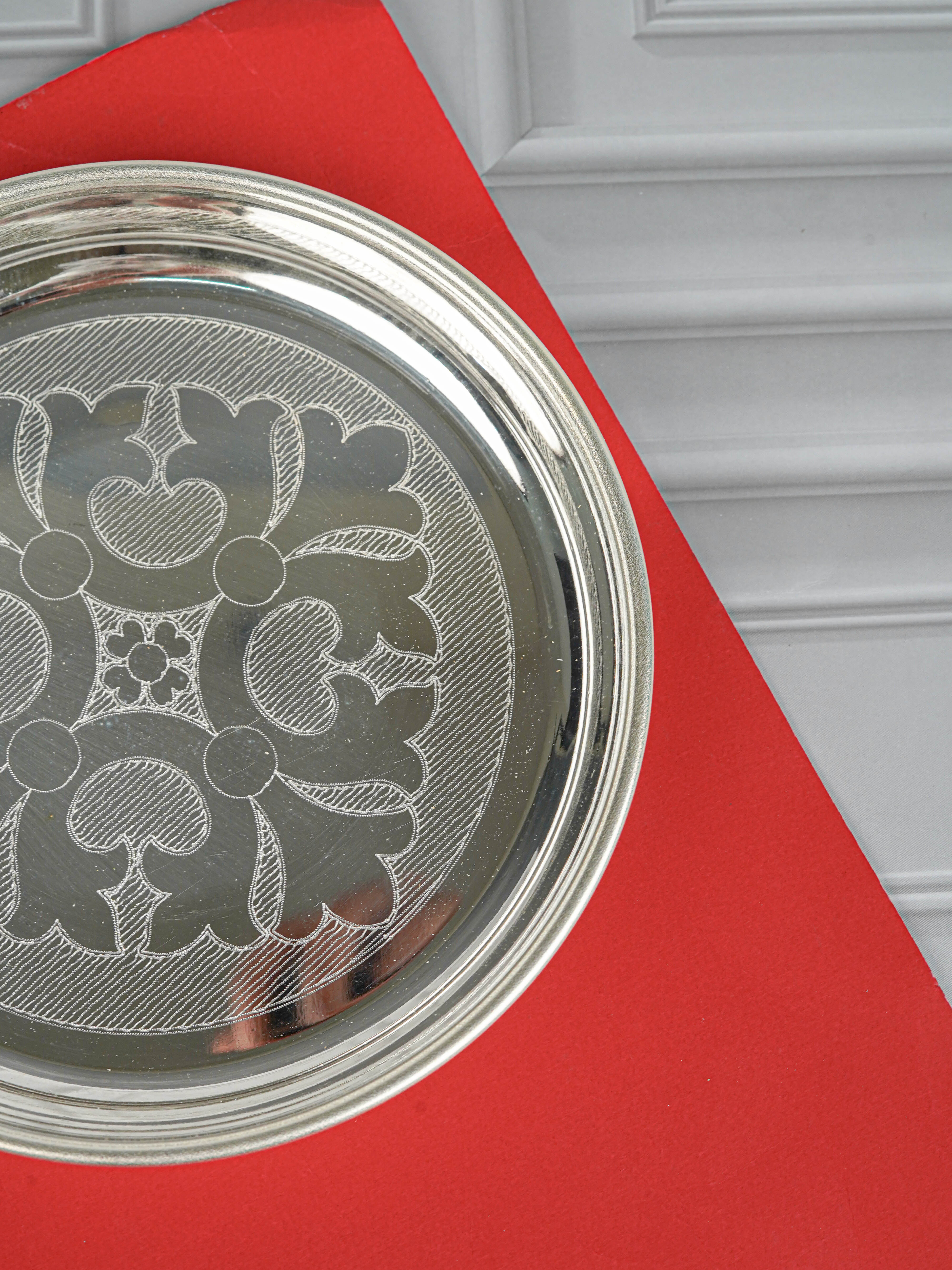 - The plate is embellished with fine Floral engravings all over adding touch of elegance.