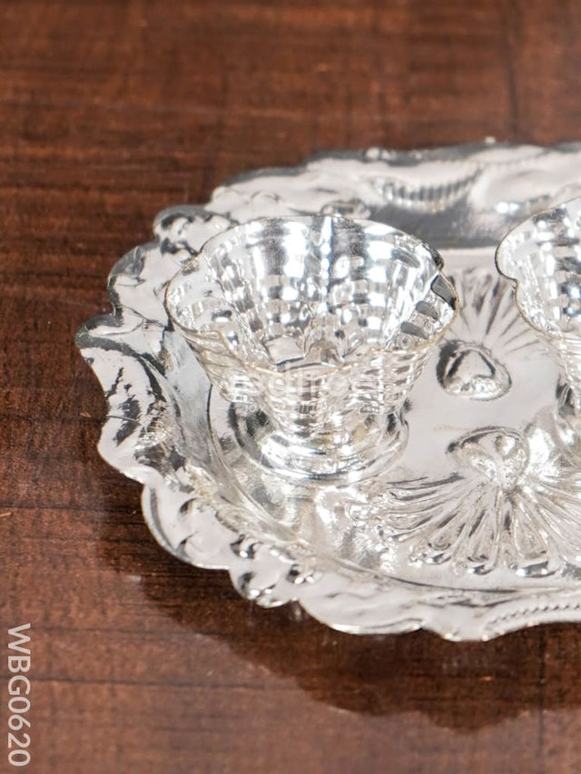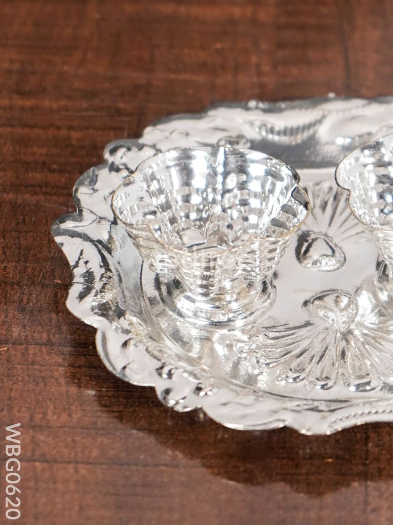 German Silver Flower Shaped 2 kumKum Holder - Round - WBG0620