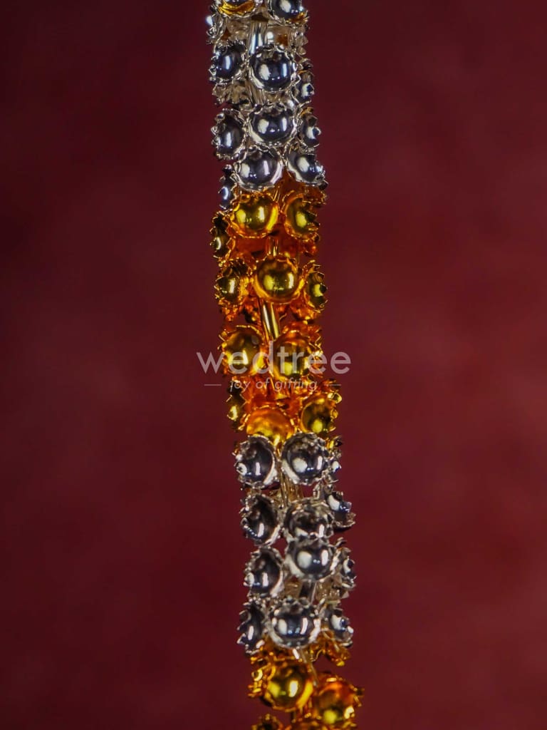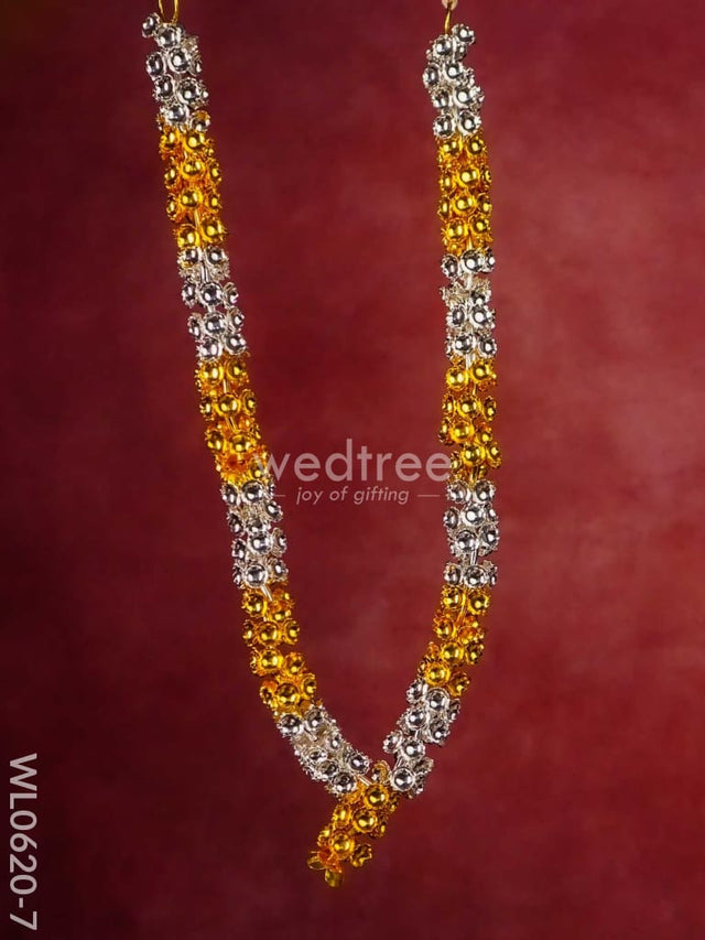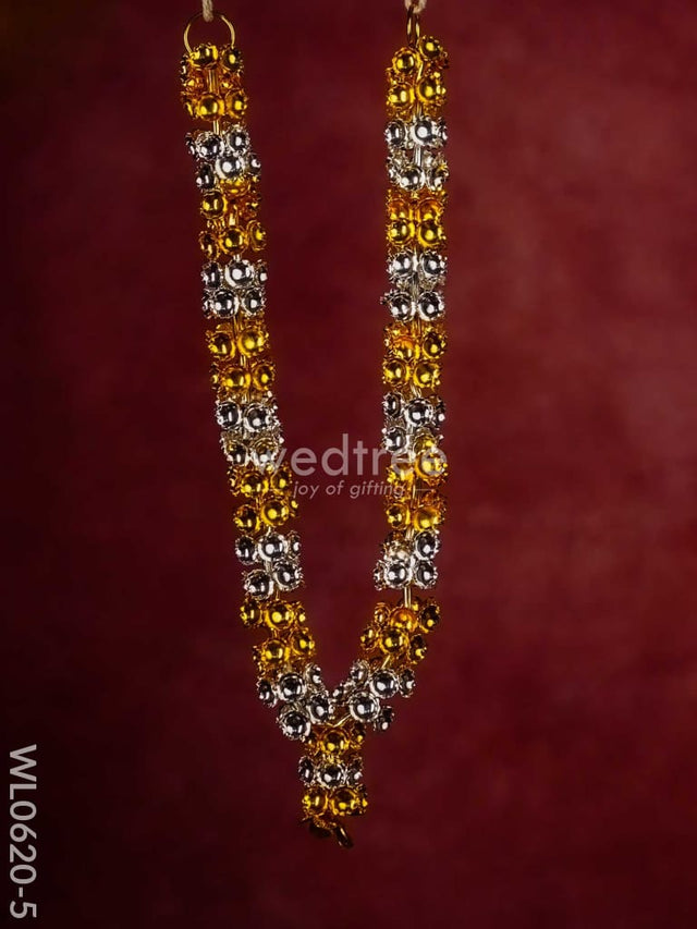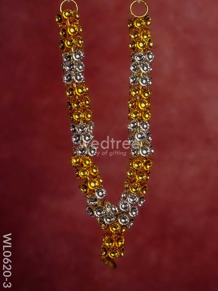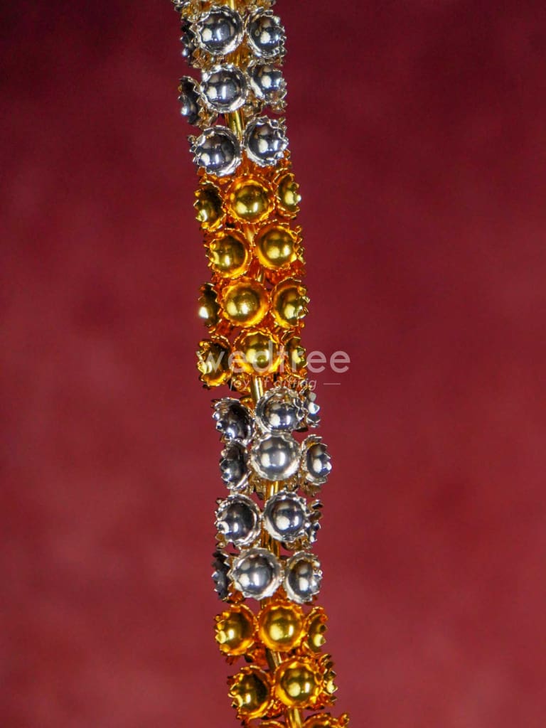 - This sacred malai is made of German silver and comes with golden and silver plating in an alternate pattern. The garland (malai) is handcrafted with cute tiny flowers closely strung.