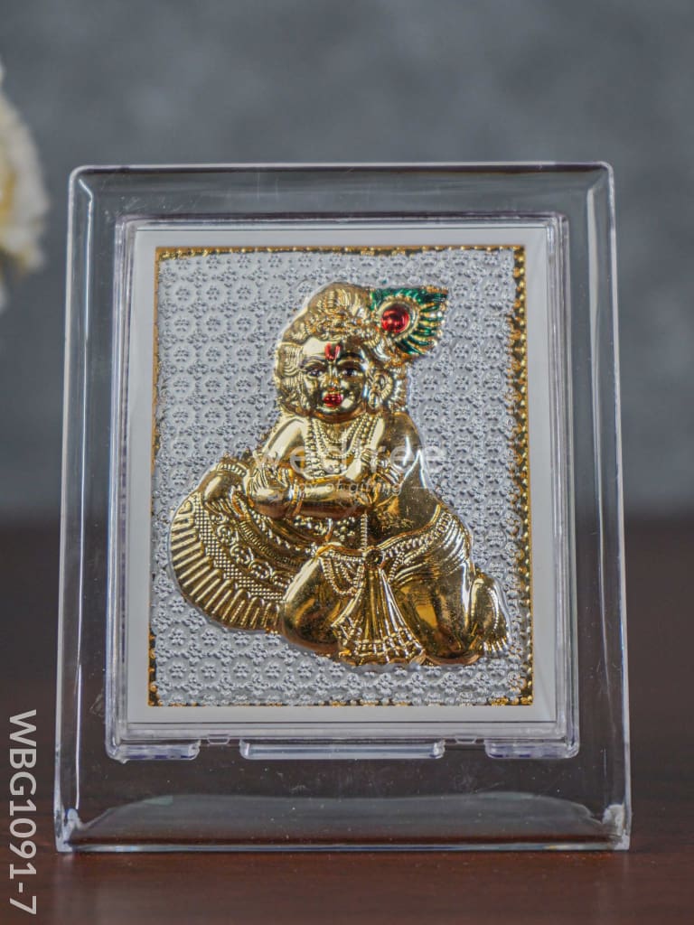 German Silver Plated Butter Krishna Photoframe (4.5 inch) with Stand - WBG1091-7