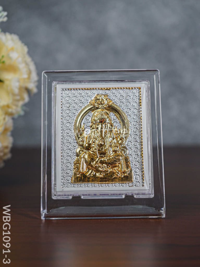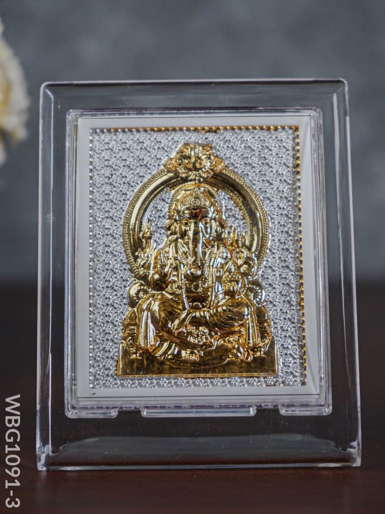German Silver Plated Ganesha Photoframe (4.5 inch) with Stand - WBG1091-3