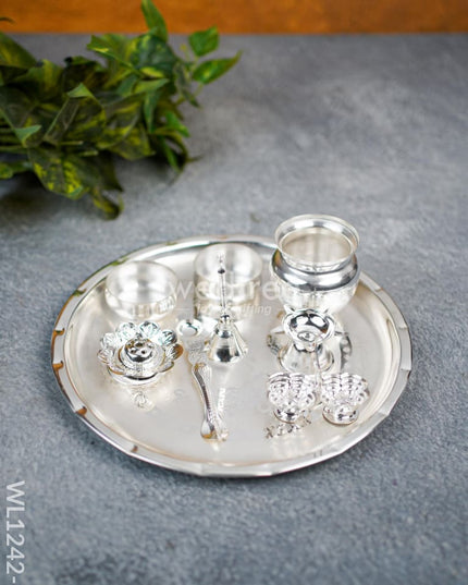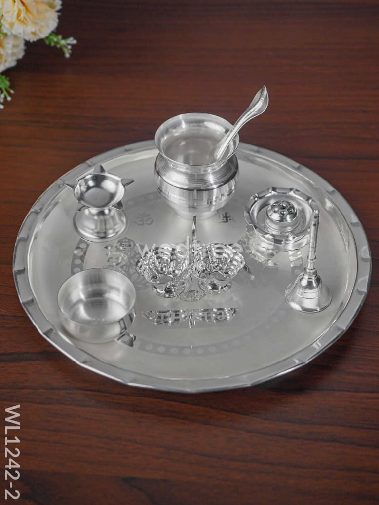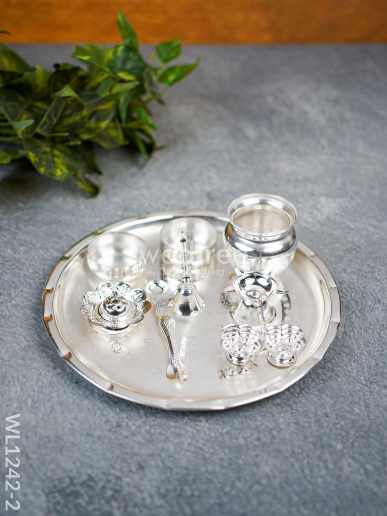 German Silver Pooja Thali Set - 10 inch - WL1242-2