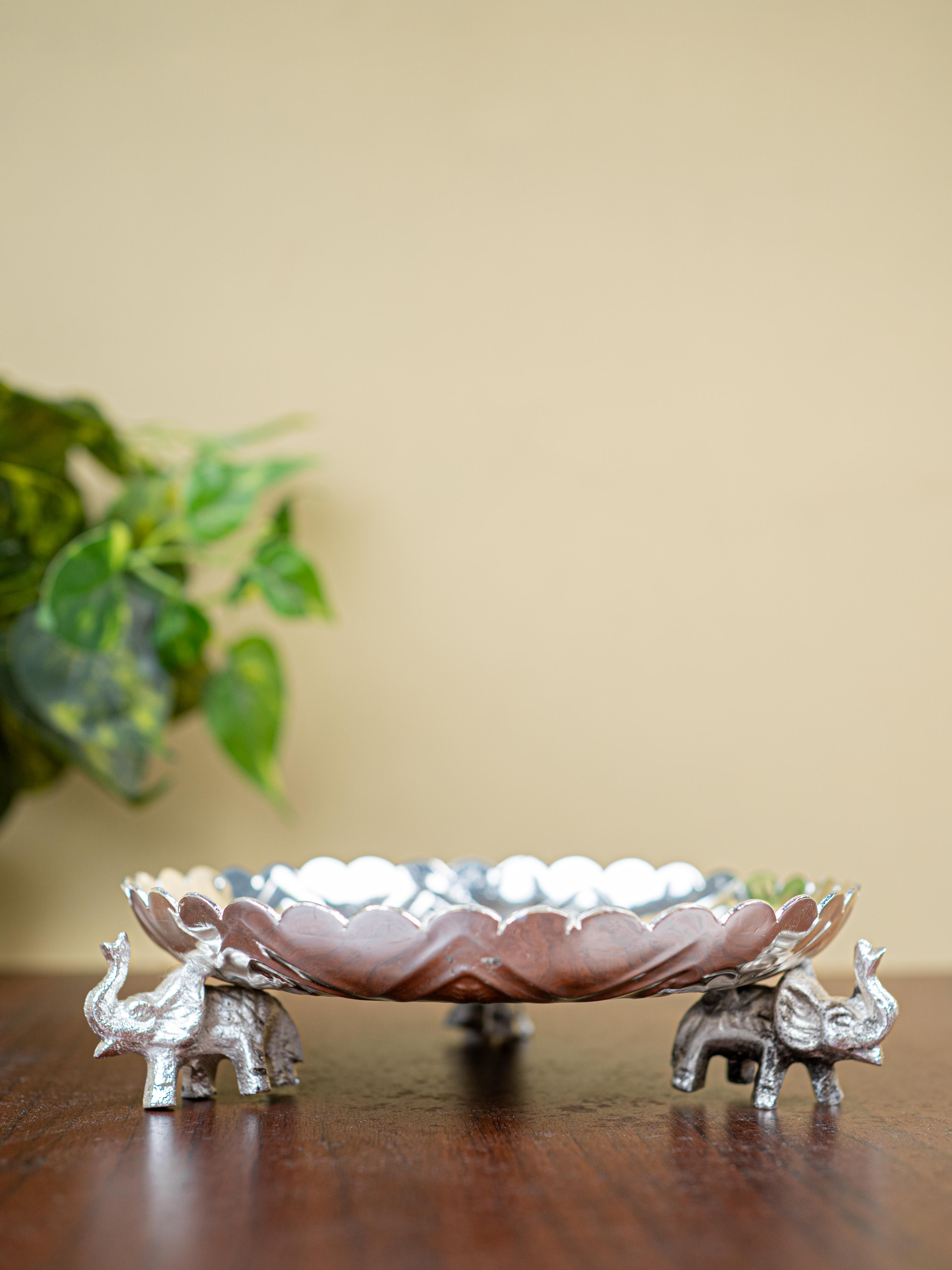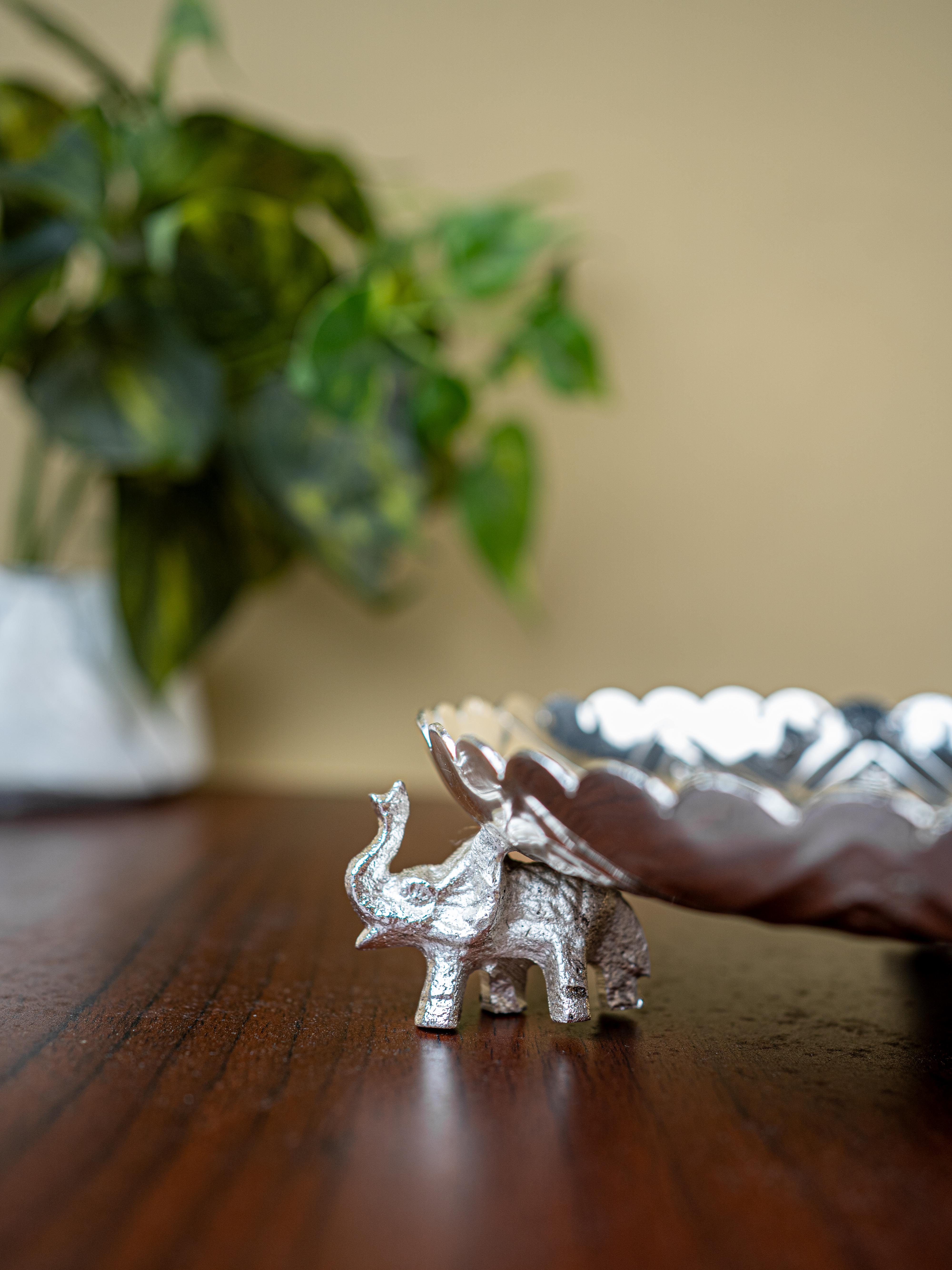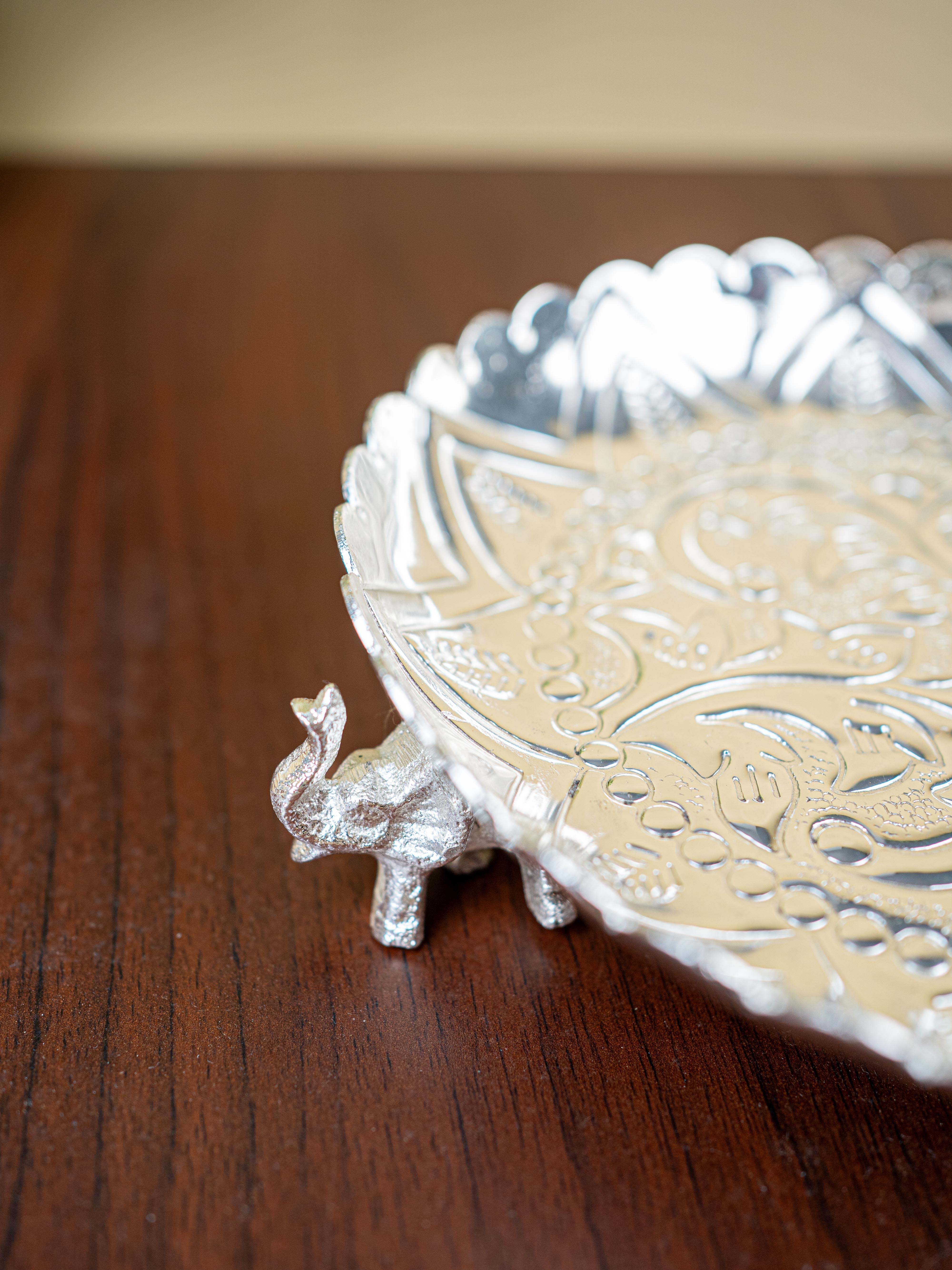 - And, with three elephants gently supporting the tray, this piece is sure to be the centerpiece of your home. Perfect for keeping puja items and offering a special gift for friends and family on special occasions like Wedding, Housewarming or Poojas!