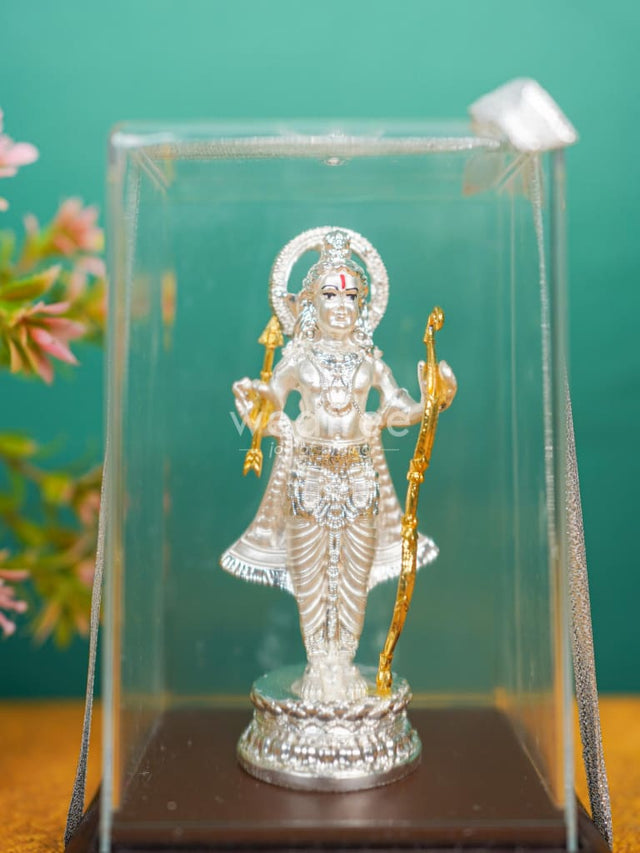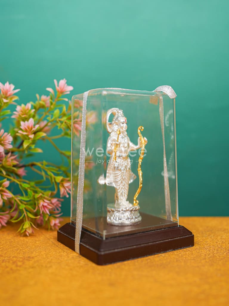 - Ram Lala in Acrylic Cabinet is a Beautifully Crafted Idol of Lord Ram Made from German Silver and Housed in a Transparent Acrylic Case for Protection and Display.