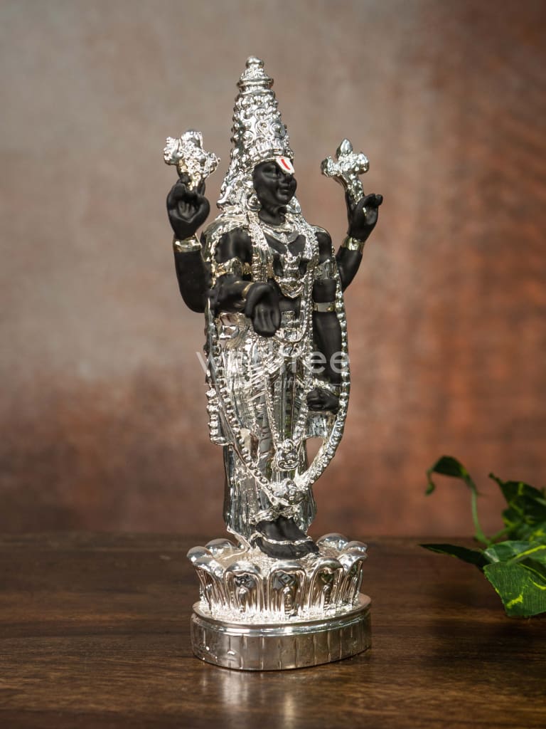 - This idol of Tirupati Balaji is made of Plaster of Paris, dressed and ornamented in German silver.