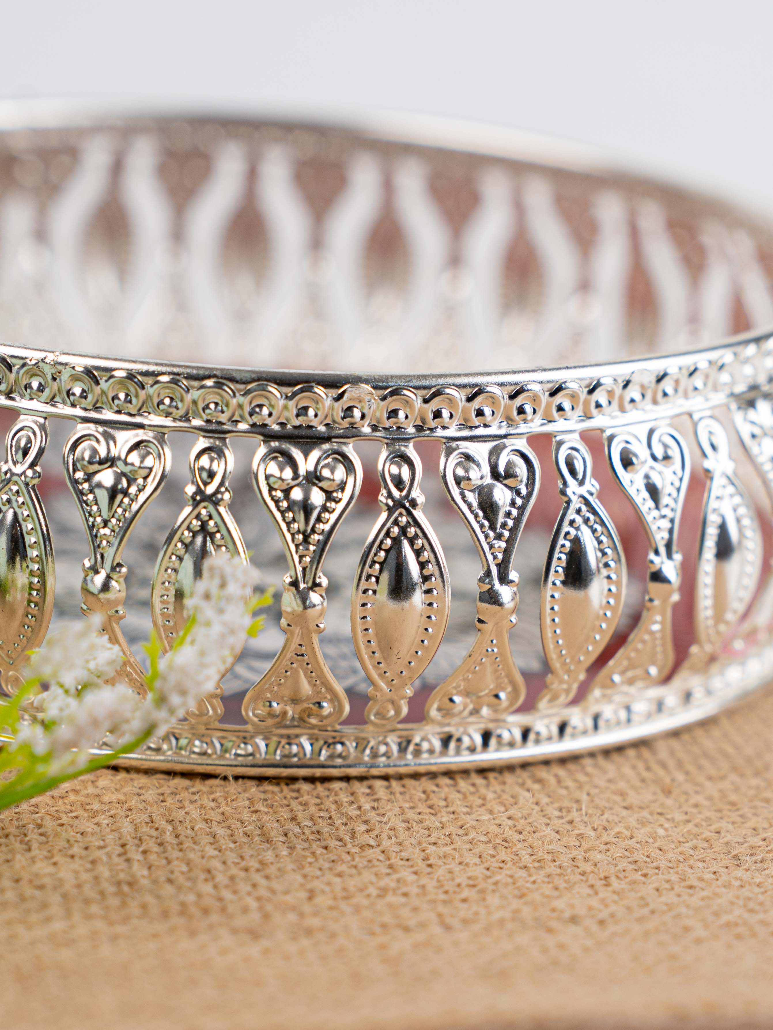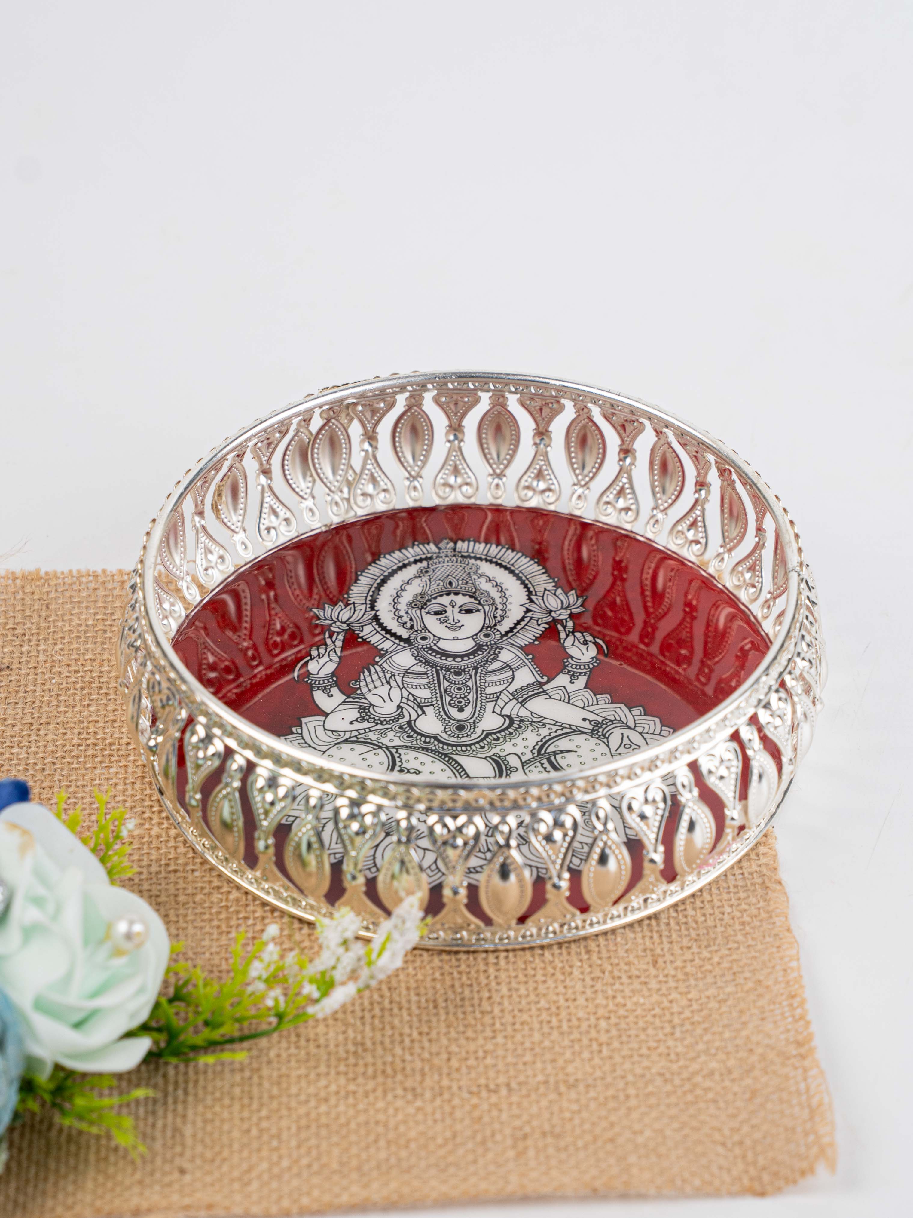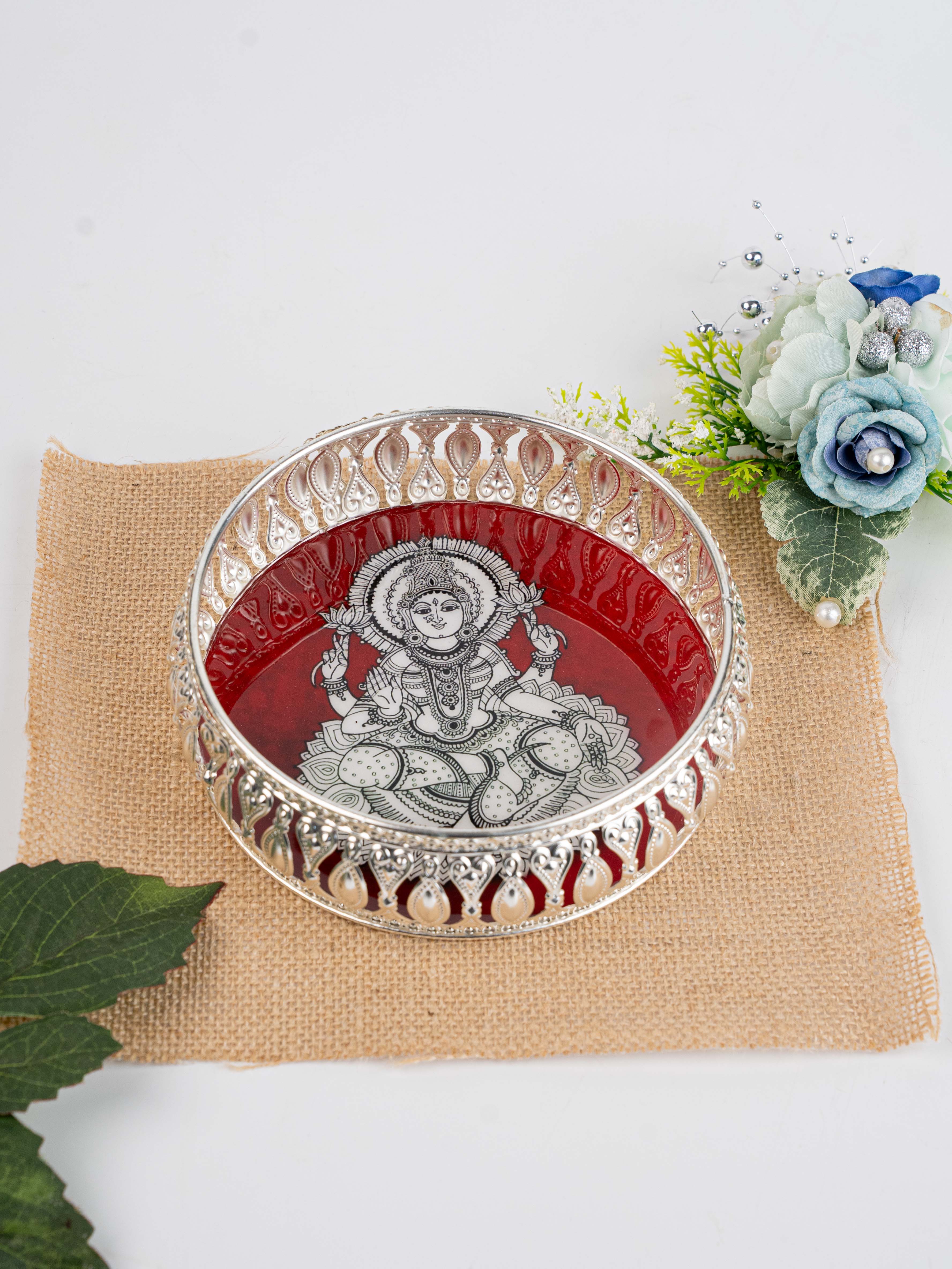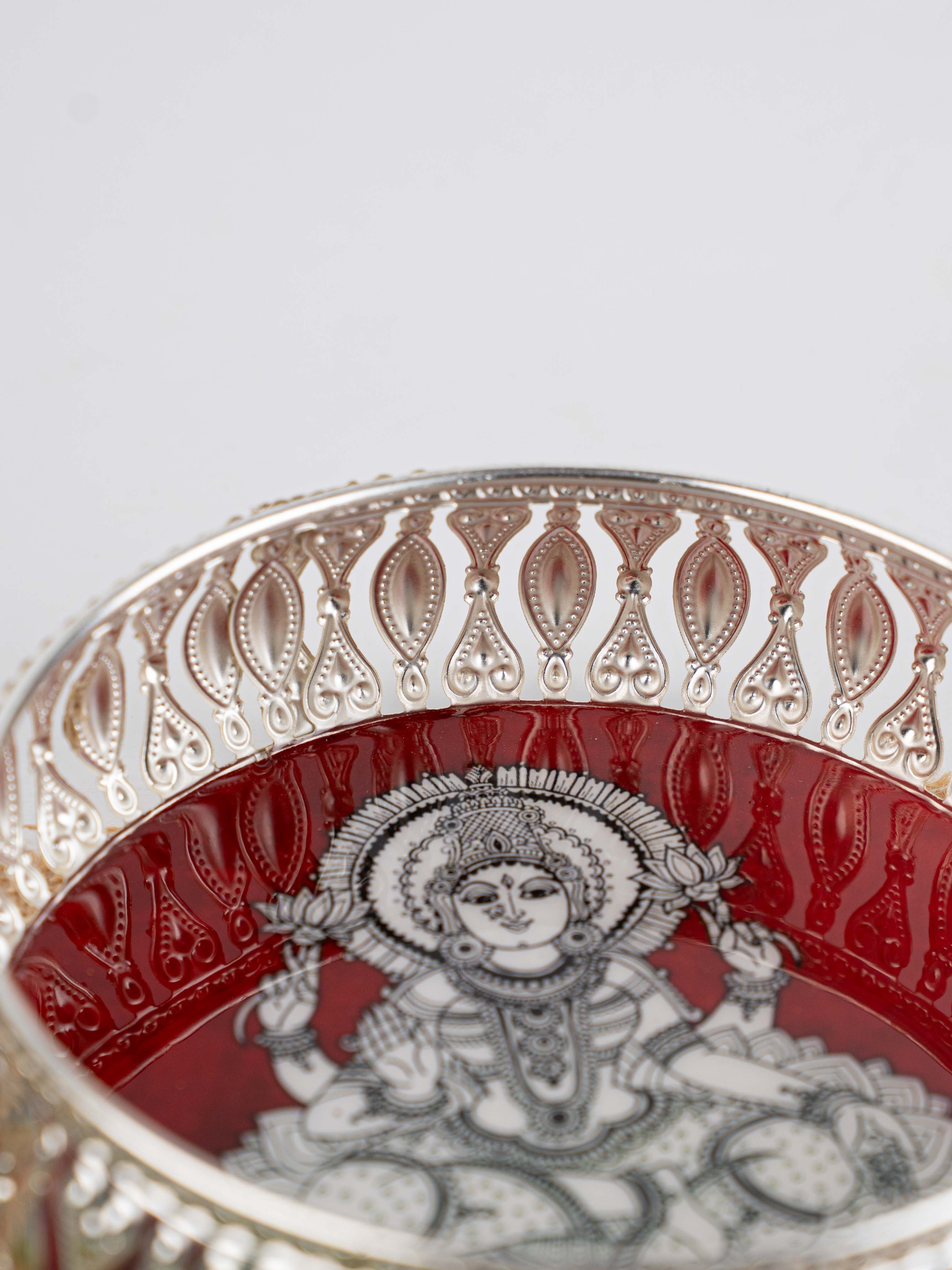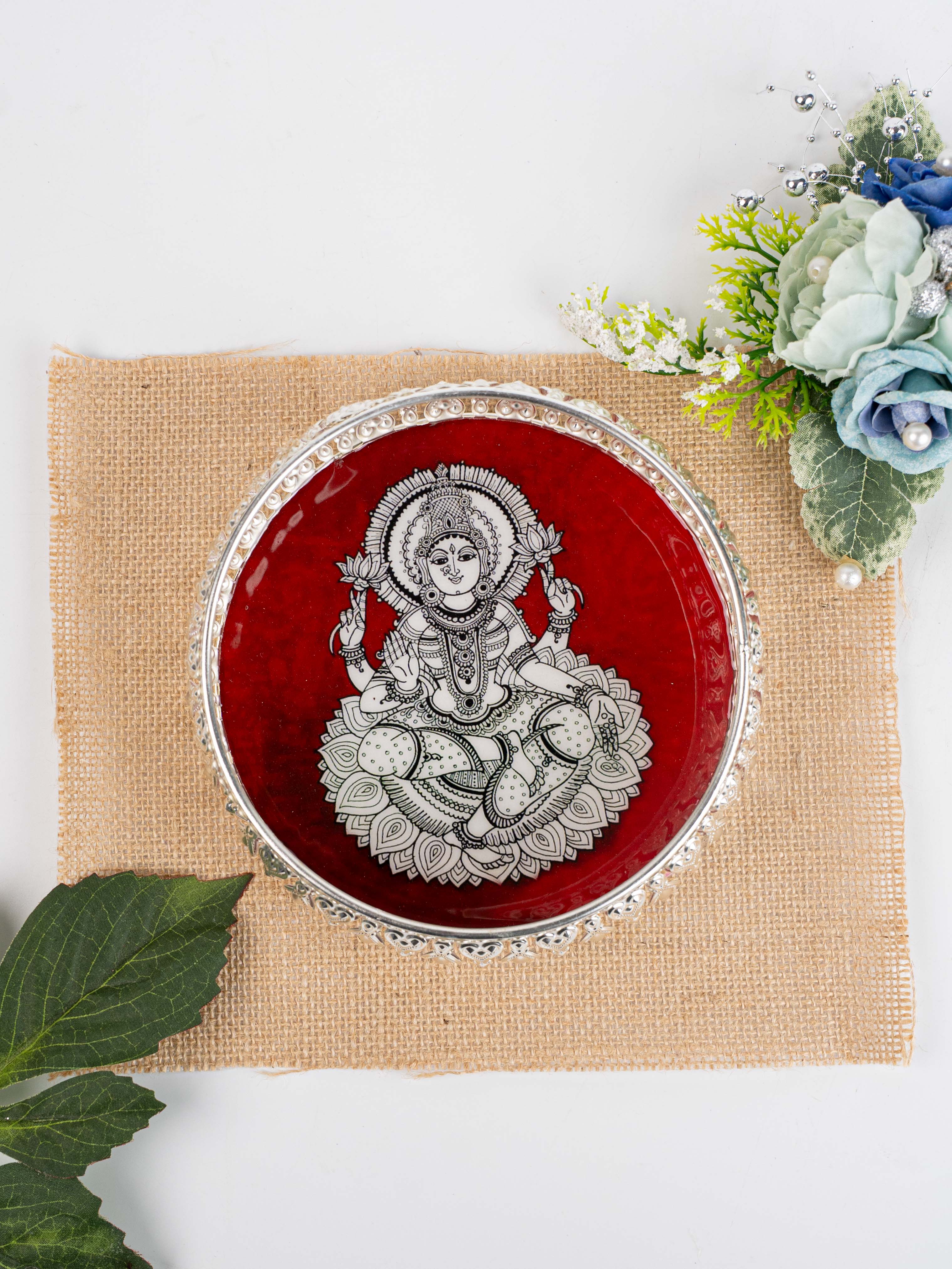 German Silver Tray with Madhubani Print - 6 inch - WL5118