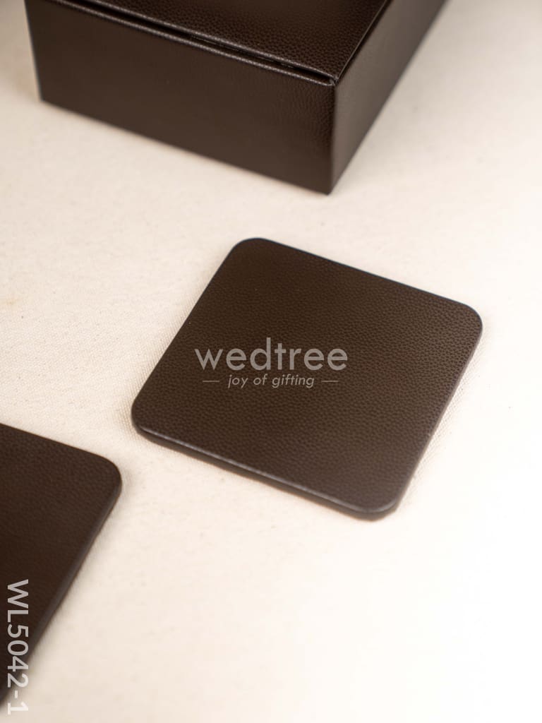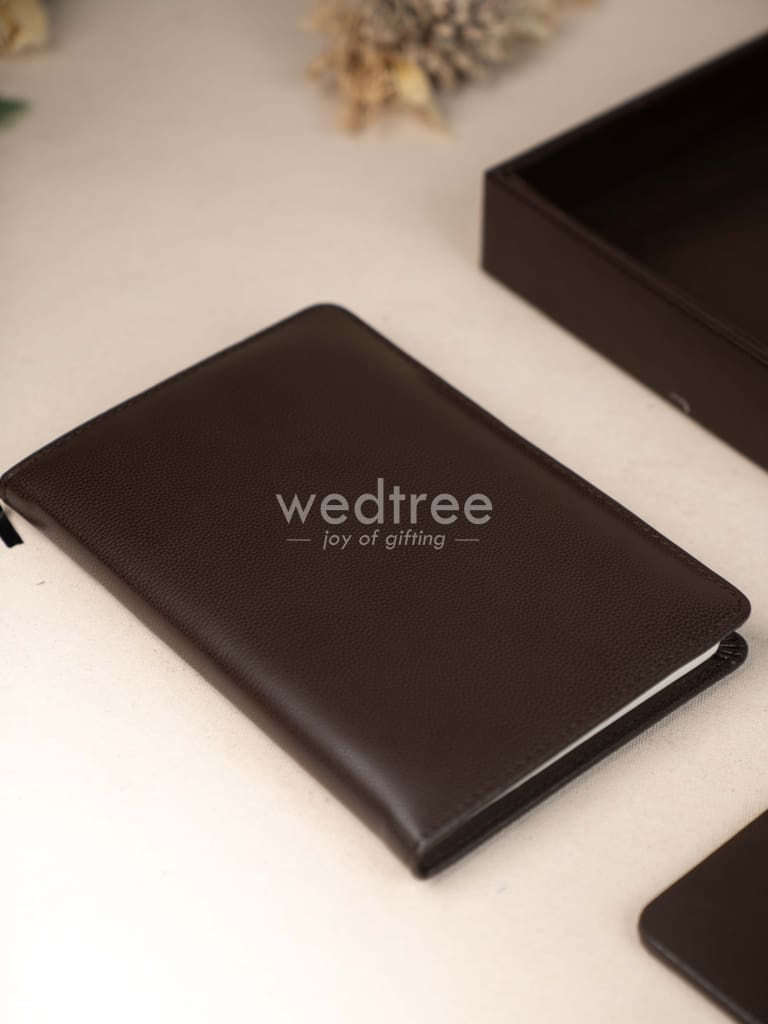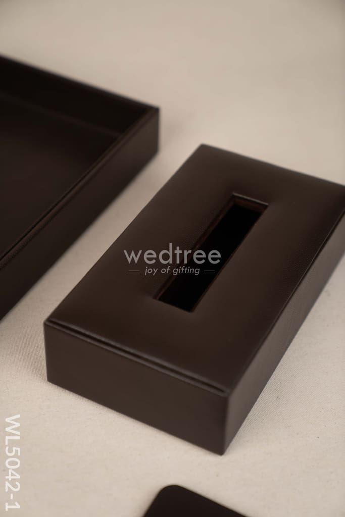 Gift Set - Leather Tray with Diary, Coaster Set & Tissue Box - Brown - WL5042-1