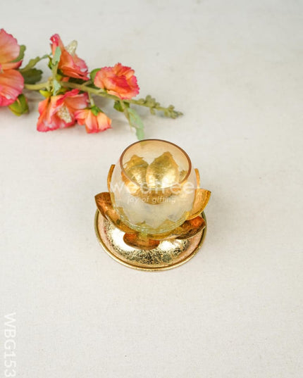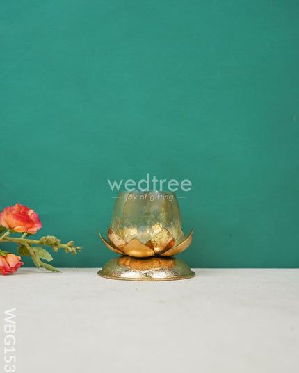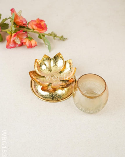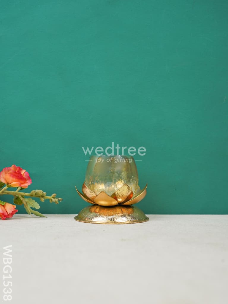 Gold Foil Stand with Cracked Glass Candle Holder - WBG1538