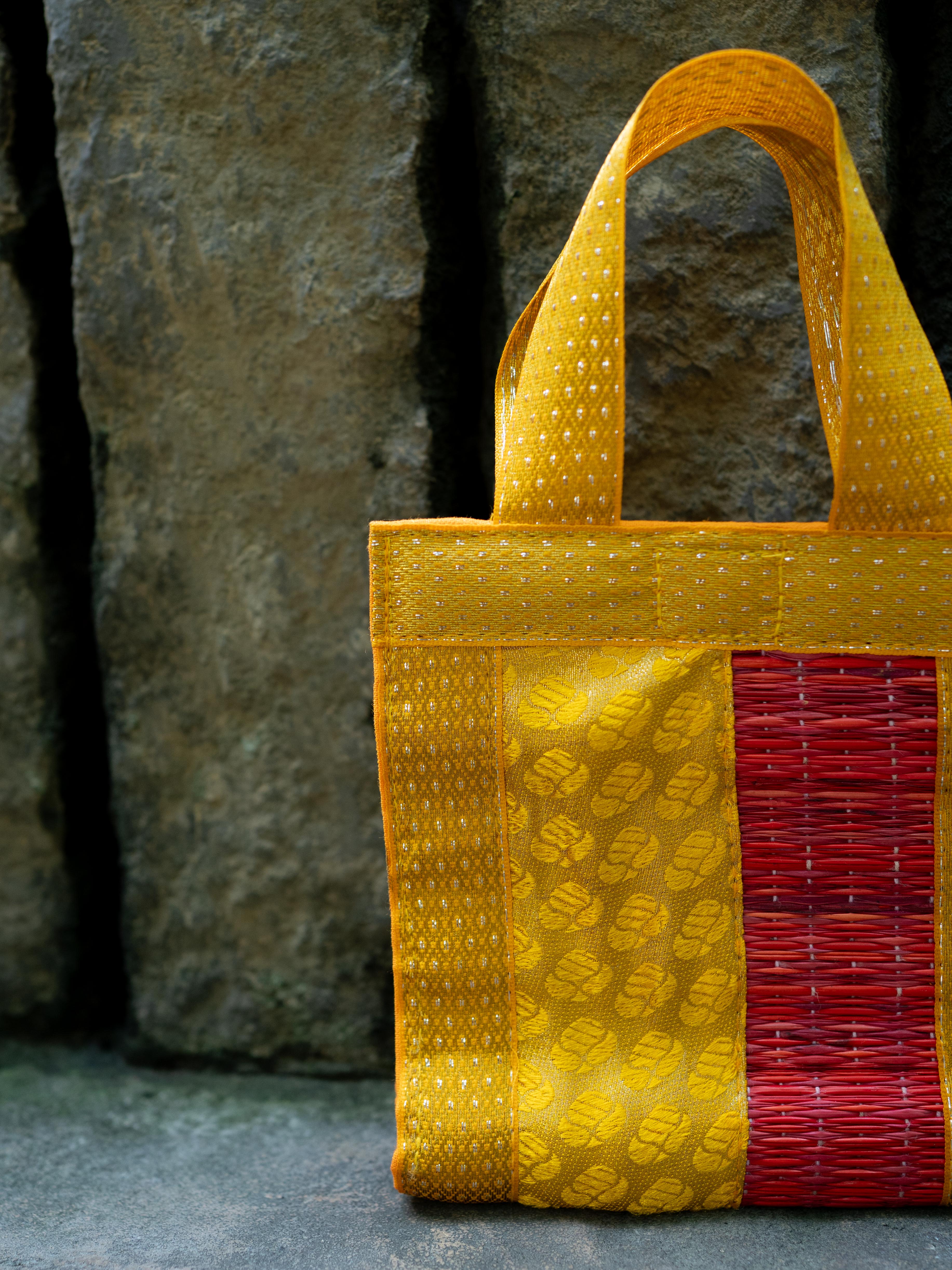 - The Bag Features a Woven Korai Grass Panel that Adds a Rustic and Eco-Friendly Charm.