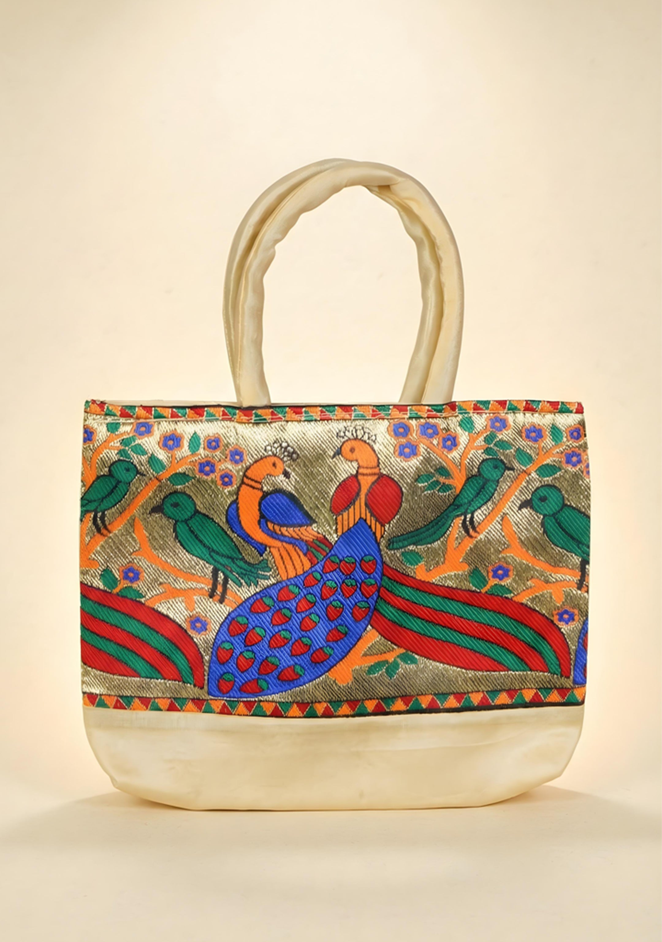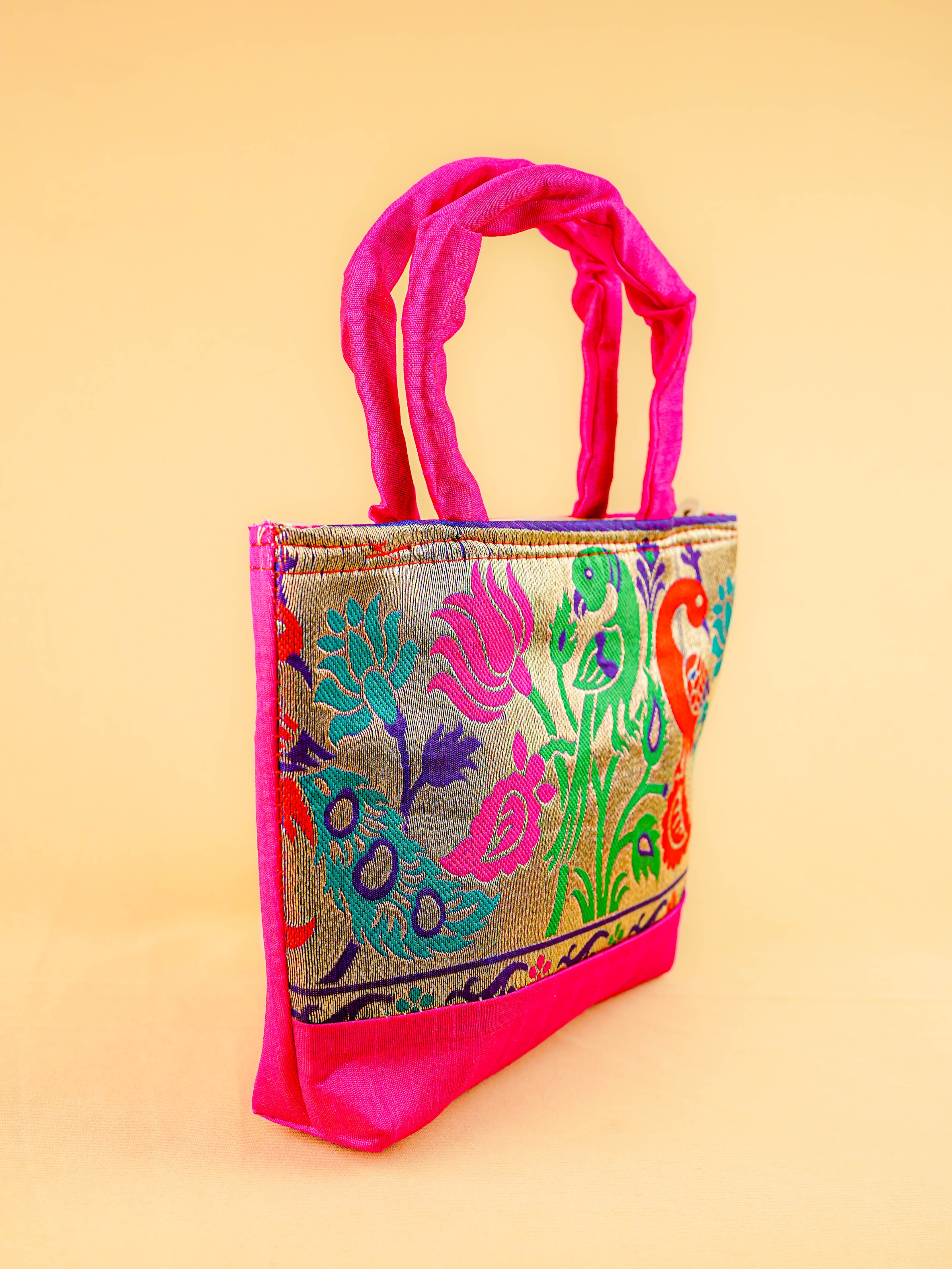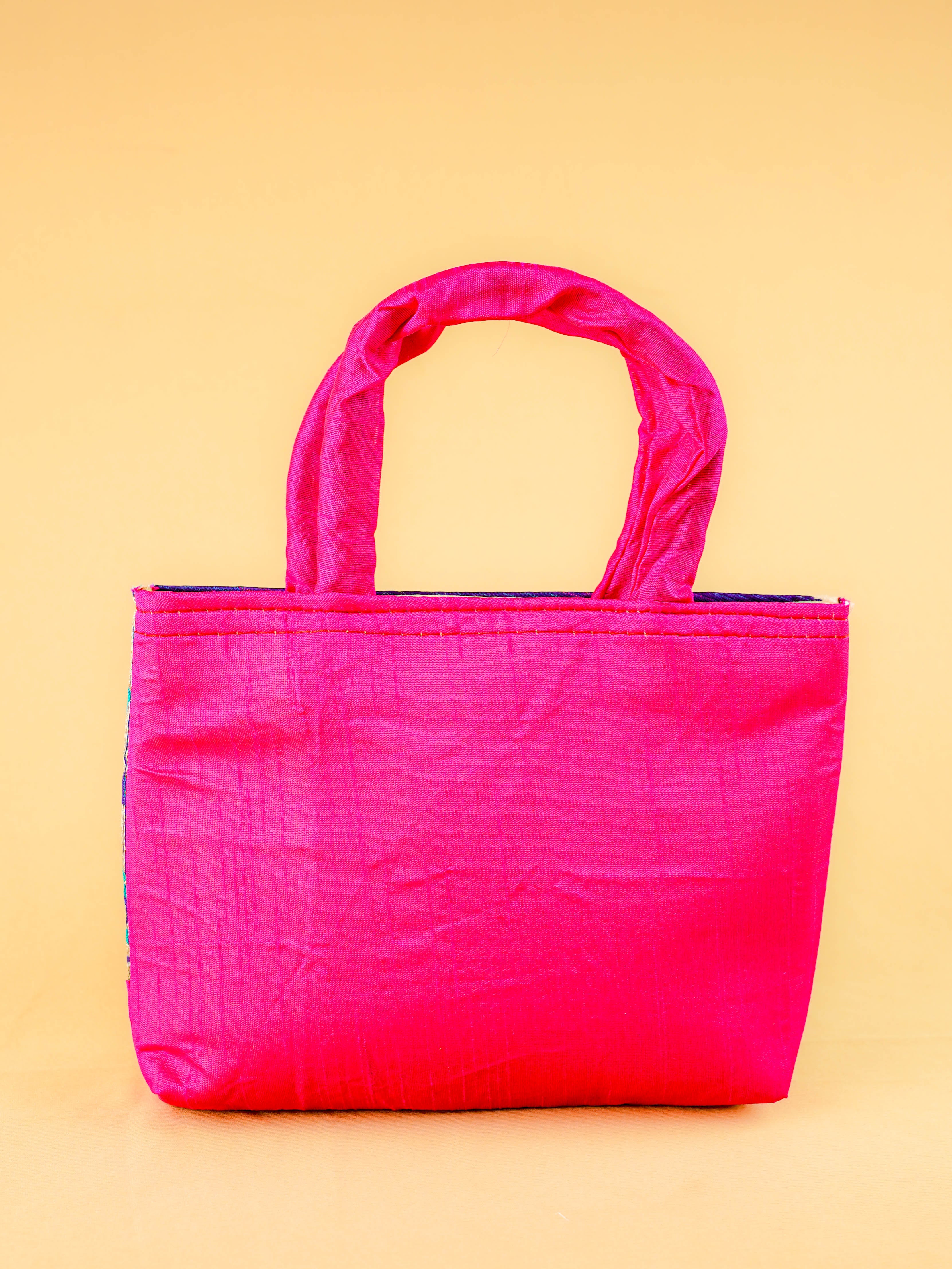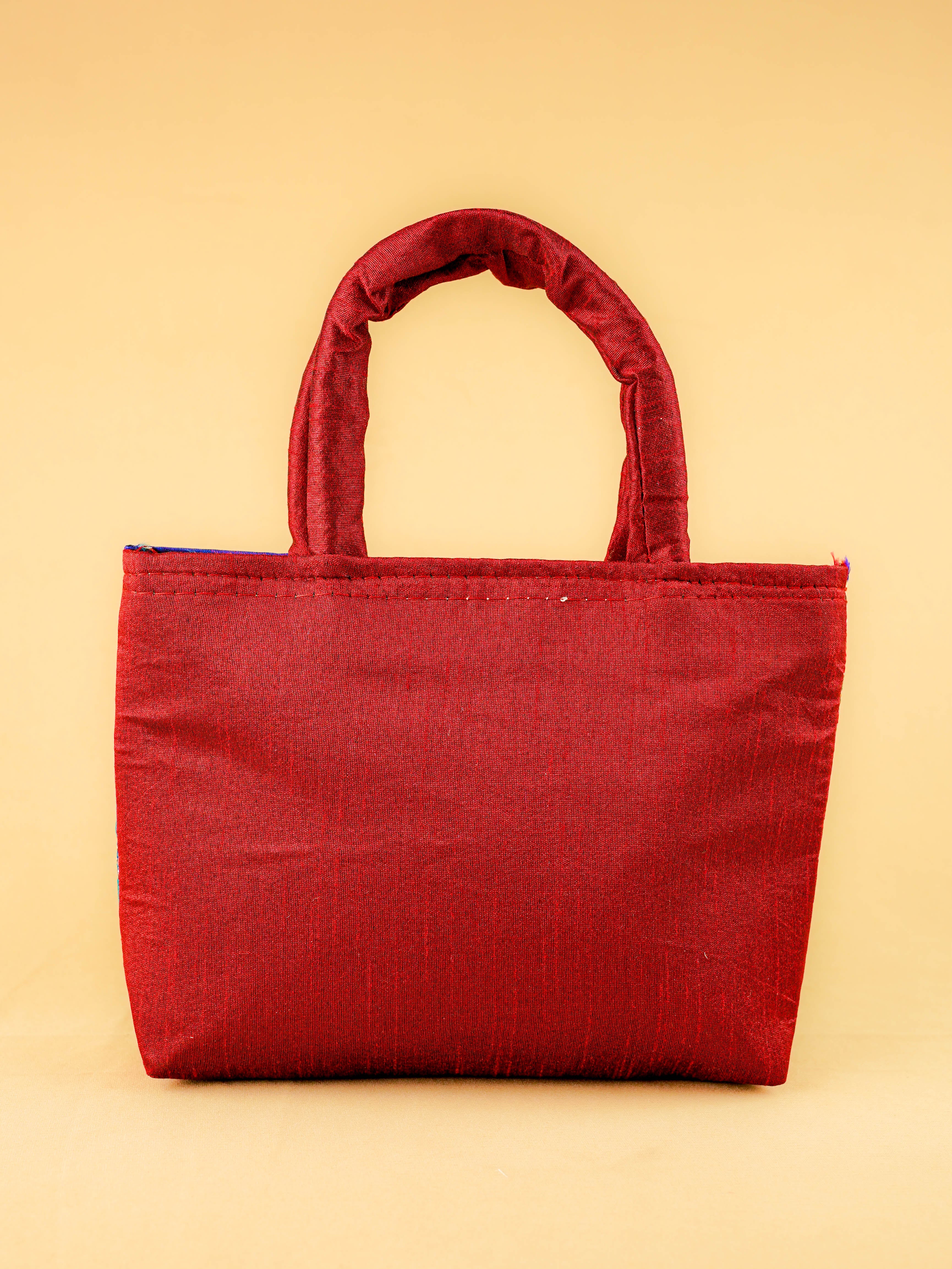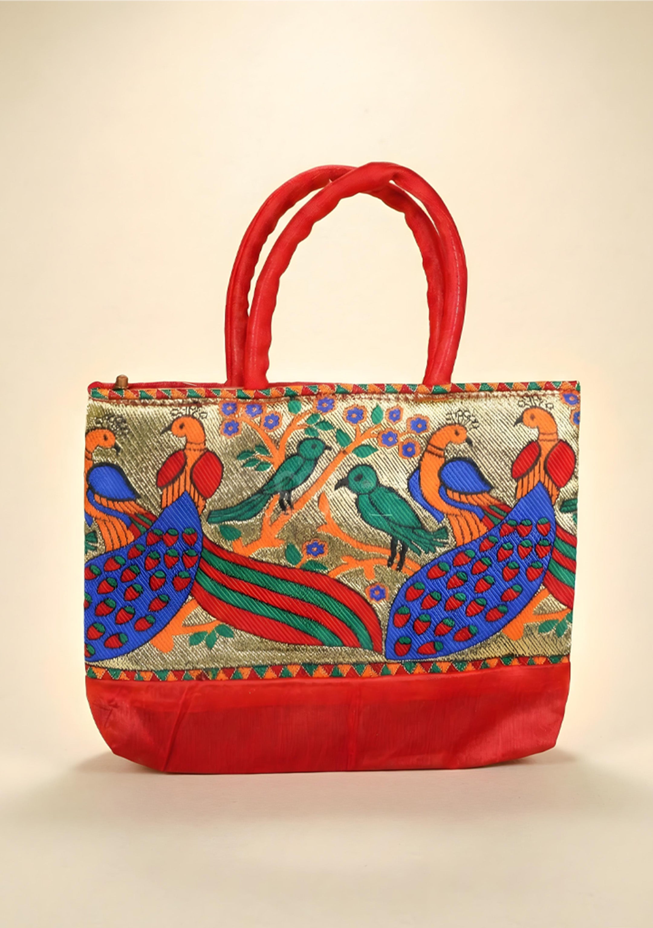 Hand bag raw silk with Peacock design - W3826