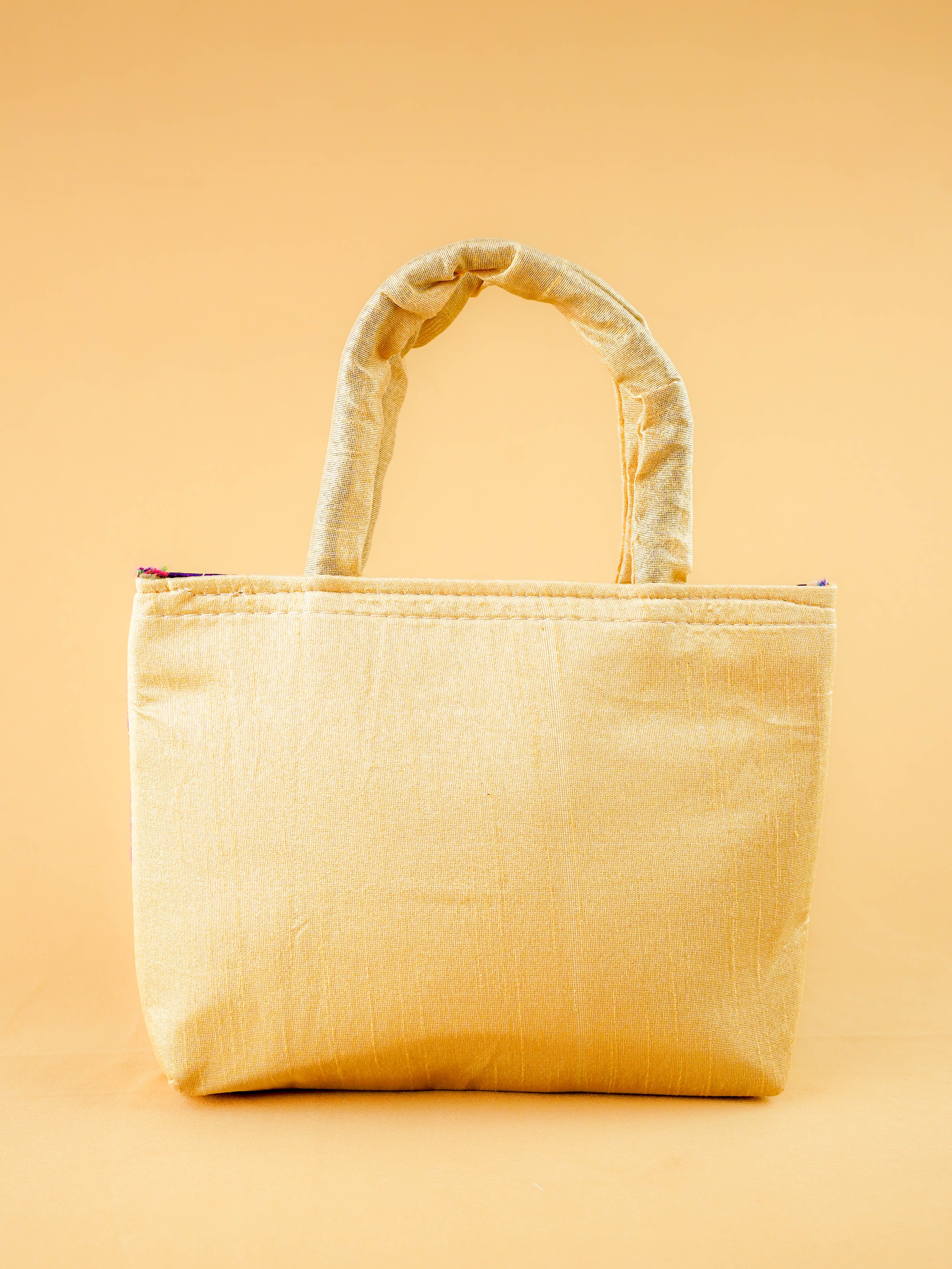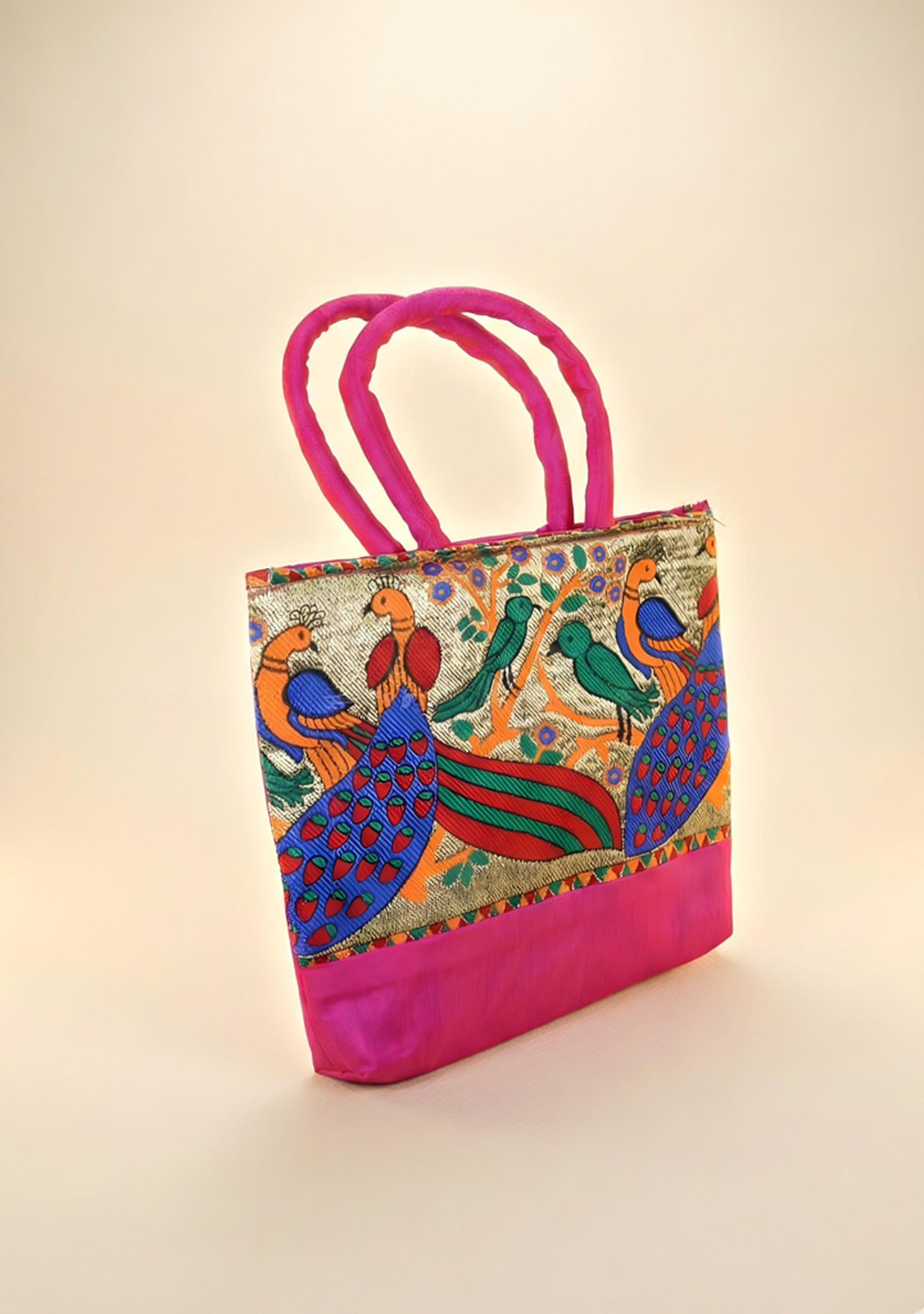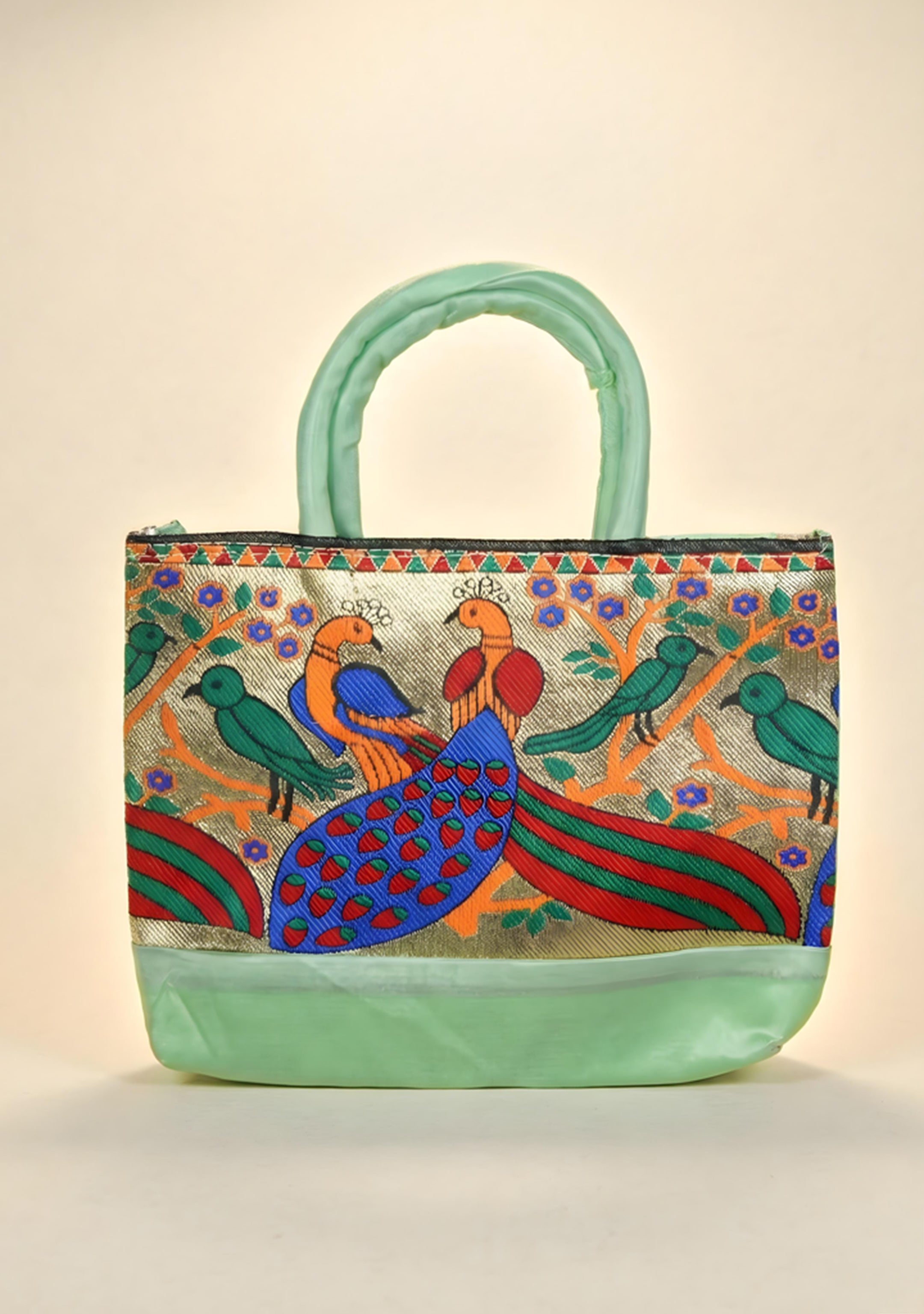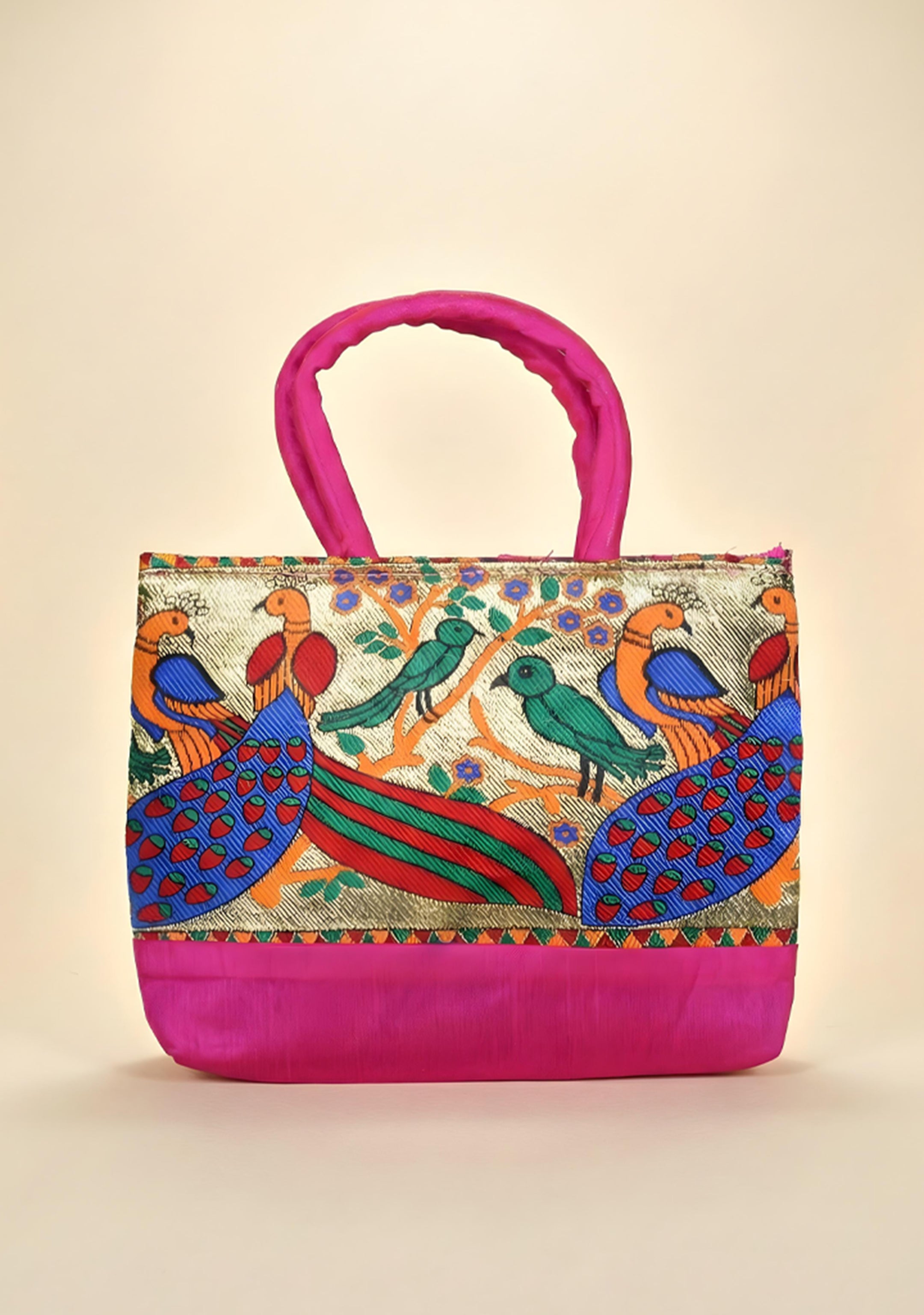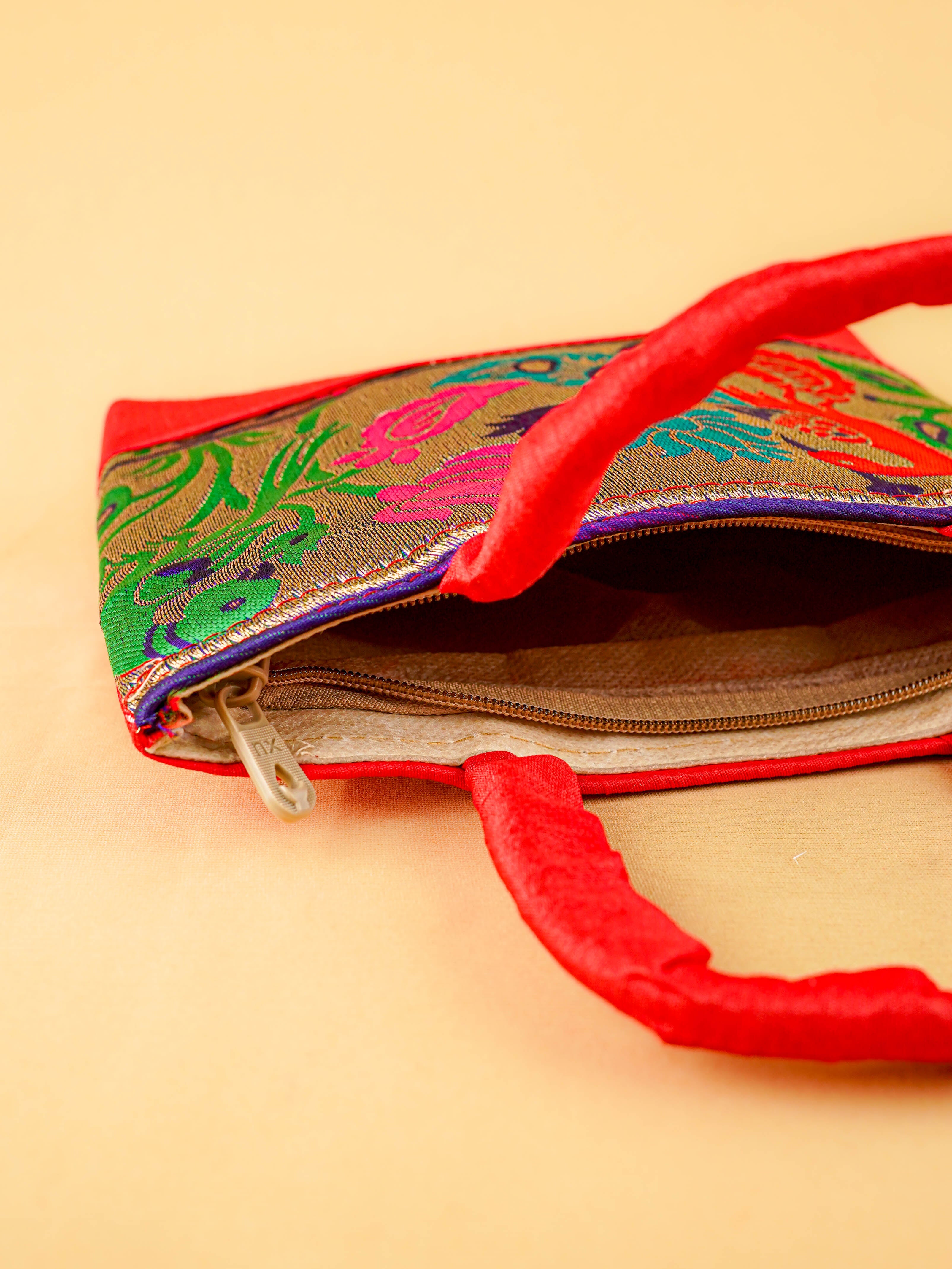 Hand bag raw silk with Peacock design - W3826