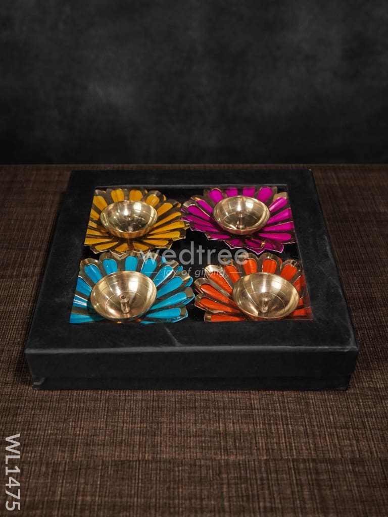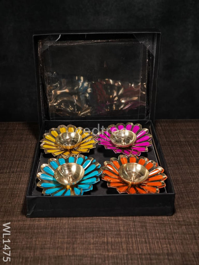 - Beautifully hand painted Brass Diyas crafted in a Flower Shape.