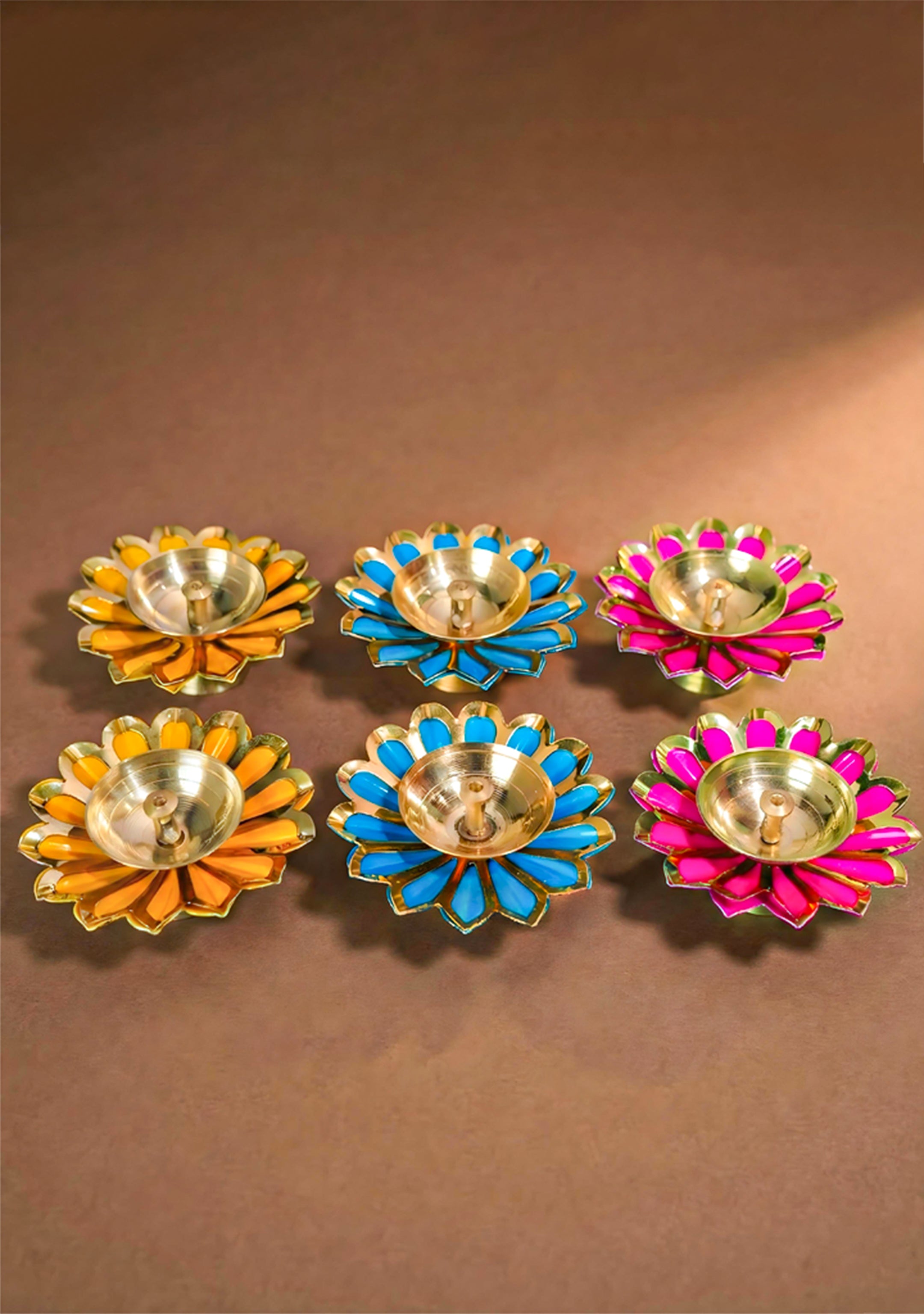 - These Devdas Diyas are made out of Brass and come in 3 different colours.