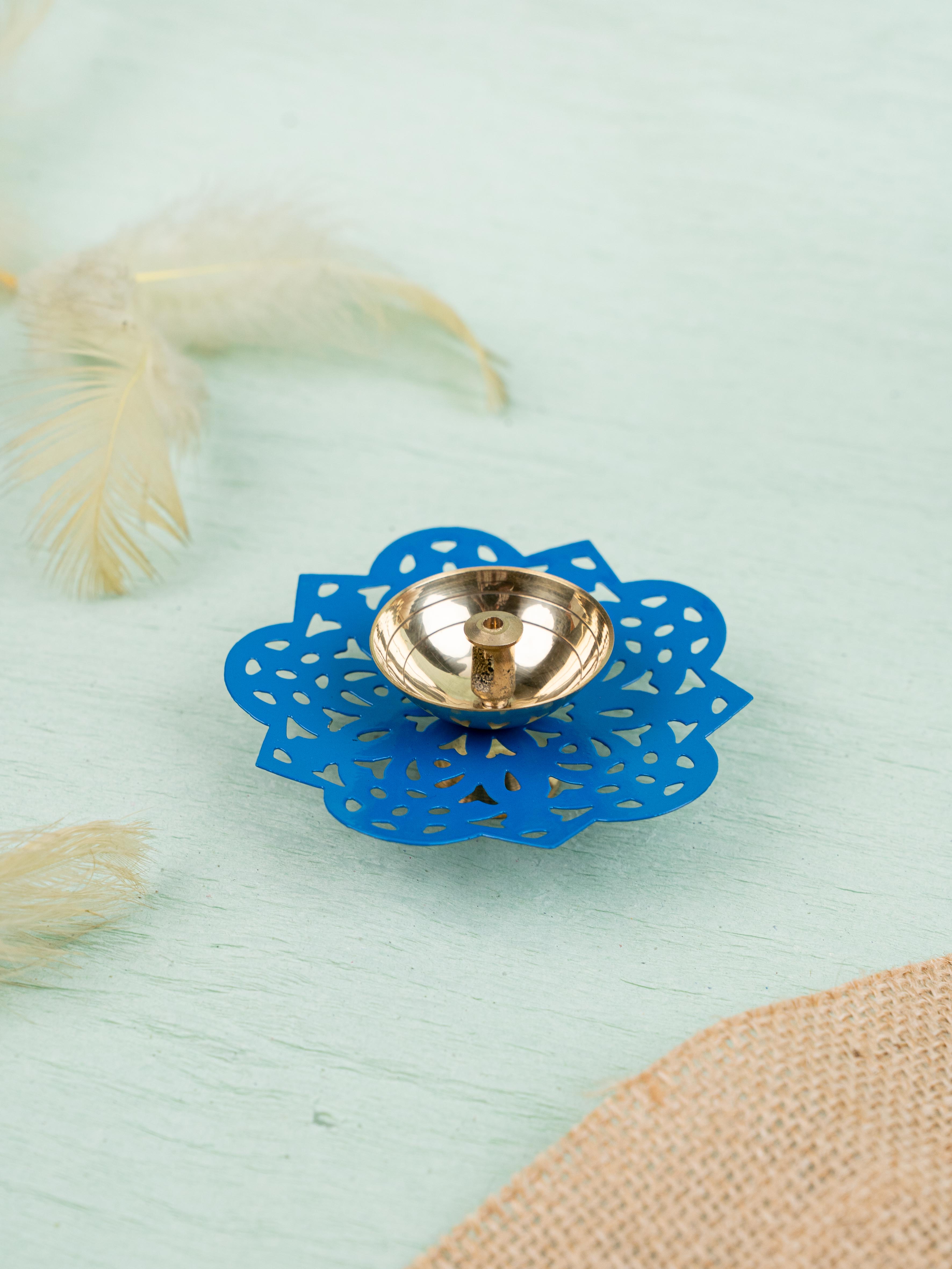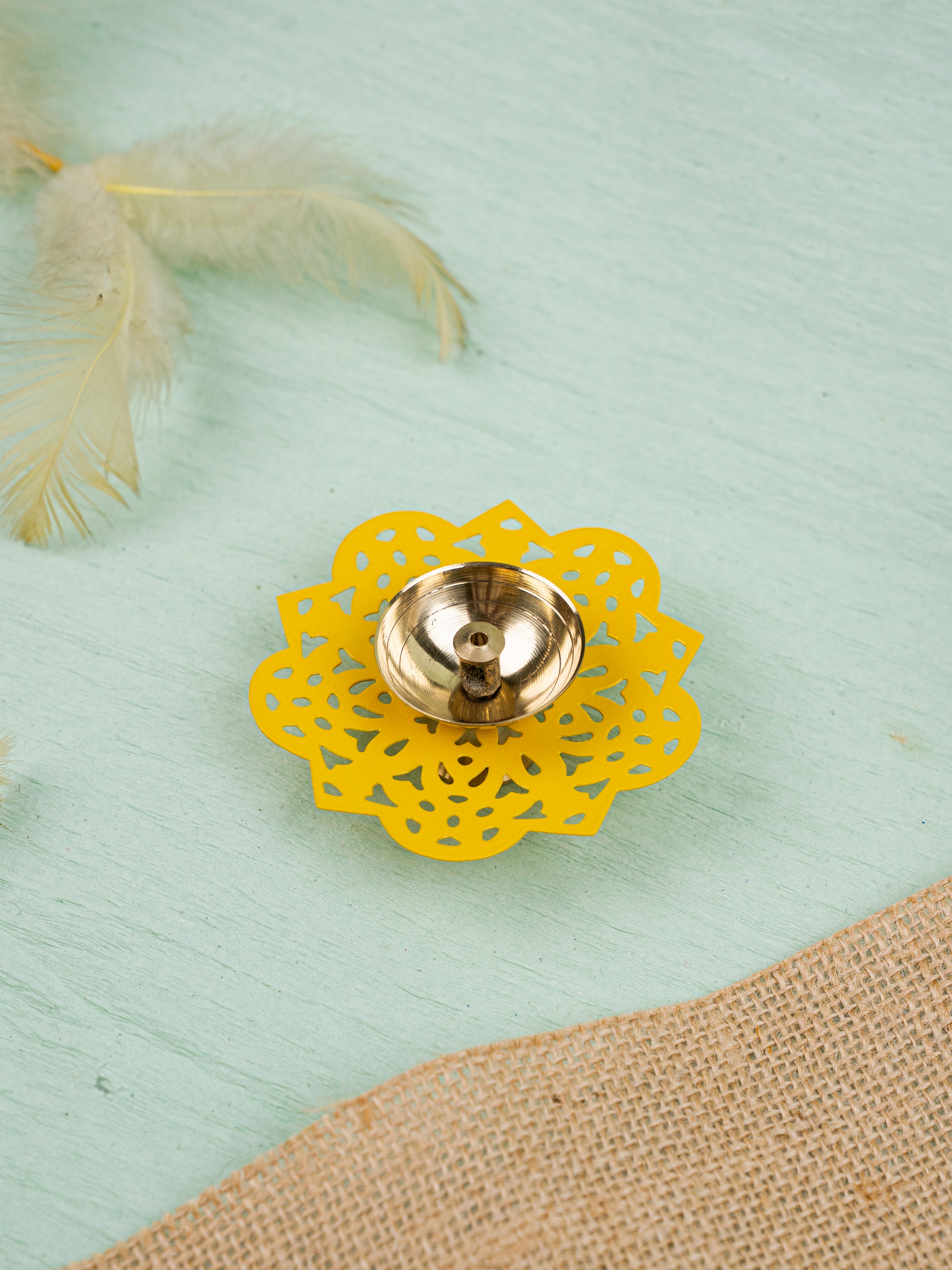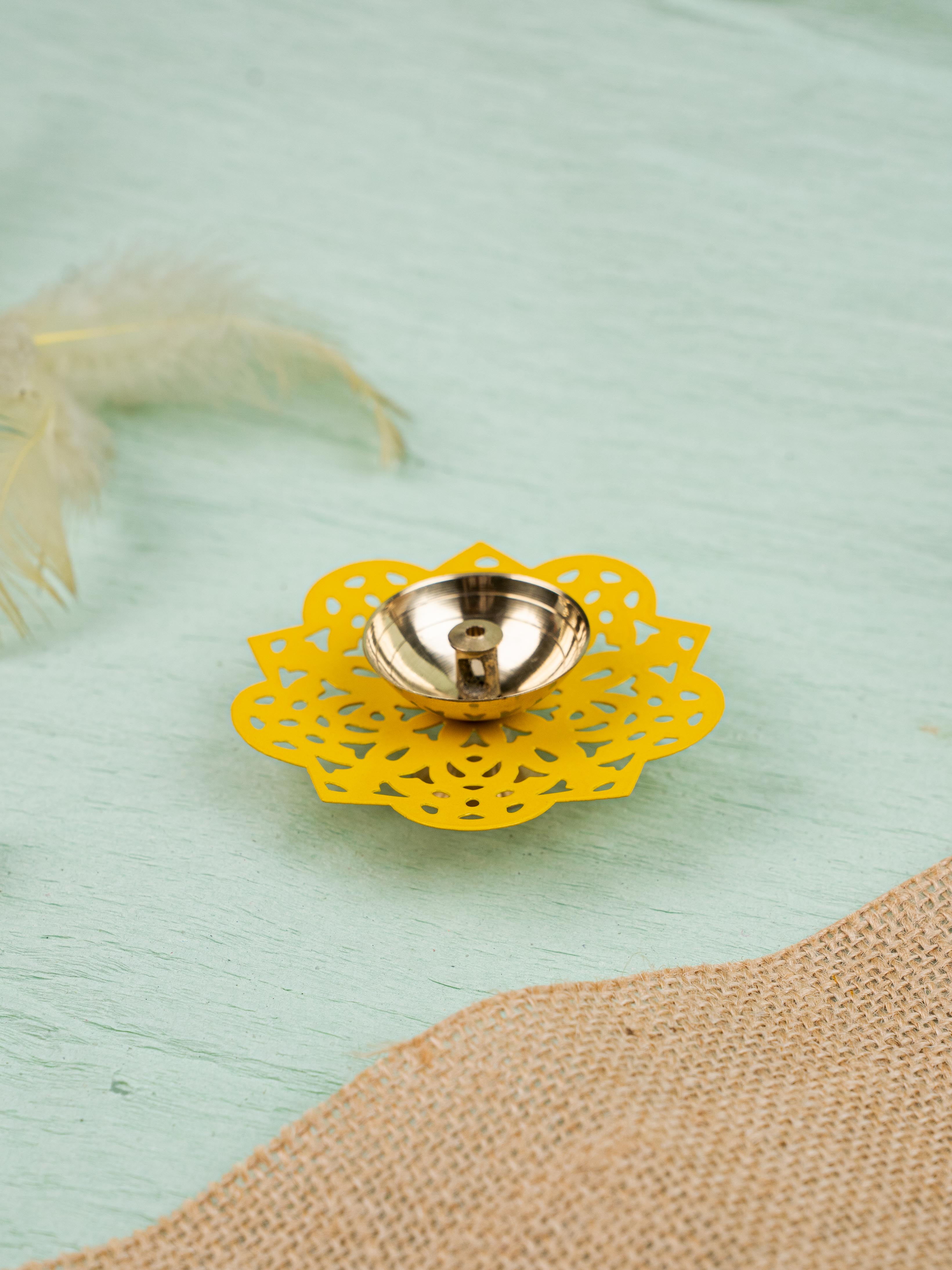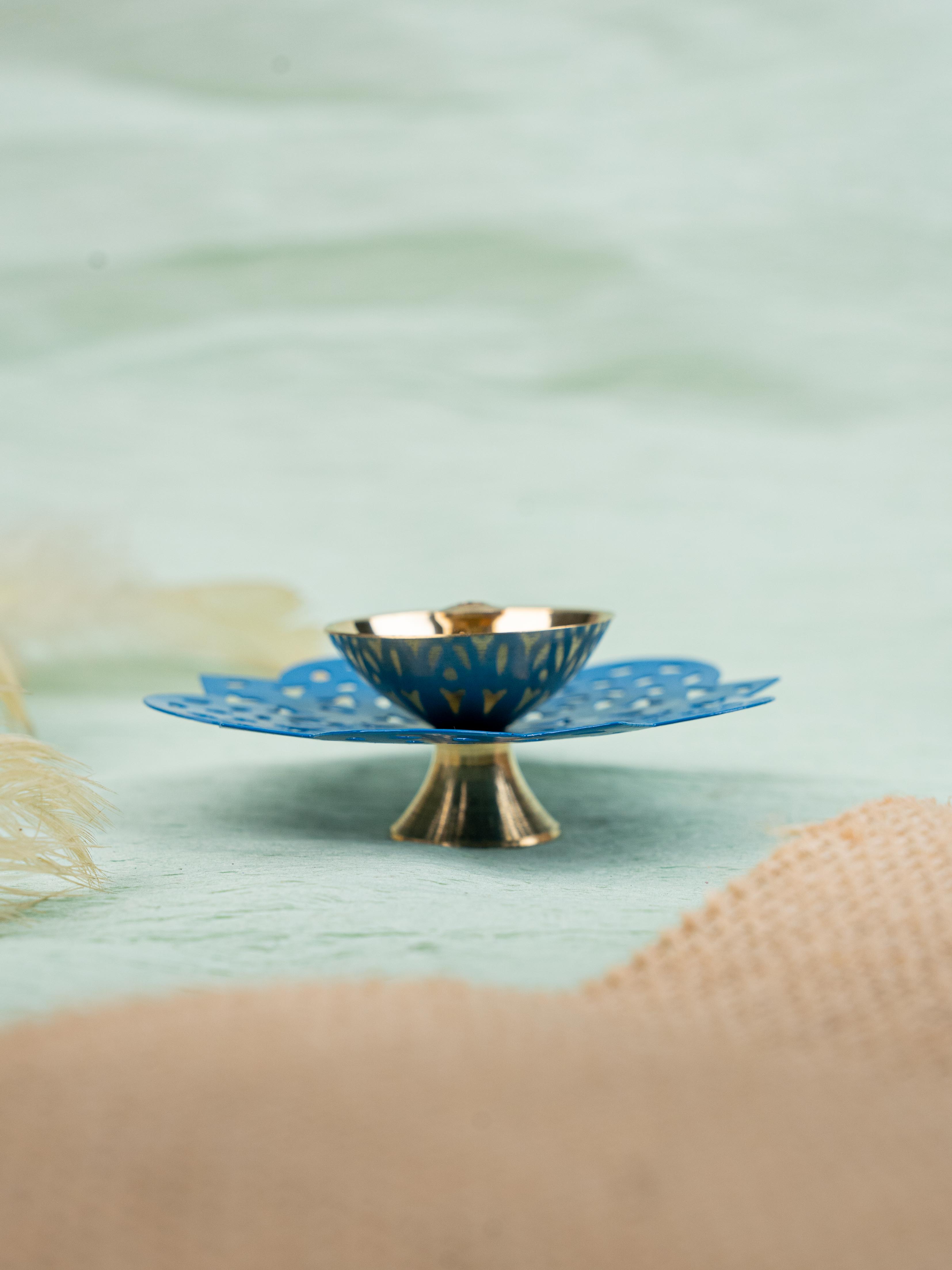 Hand Painted Brass Flower Shaped Diya - WBG1826-2