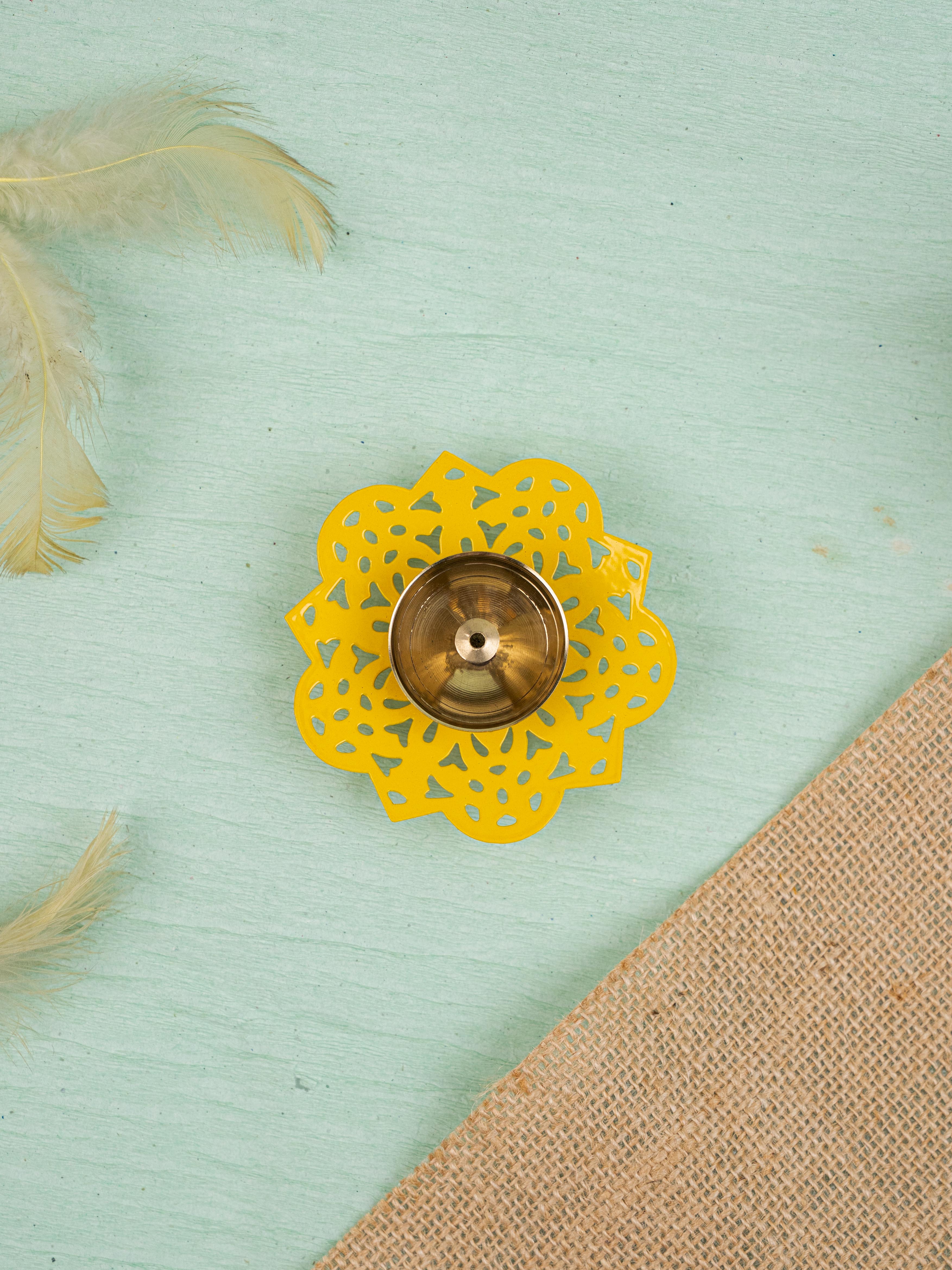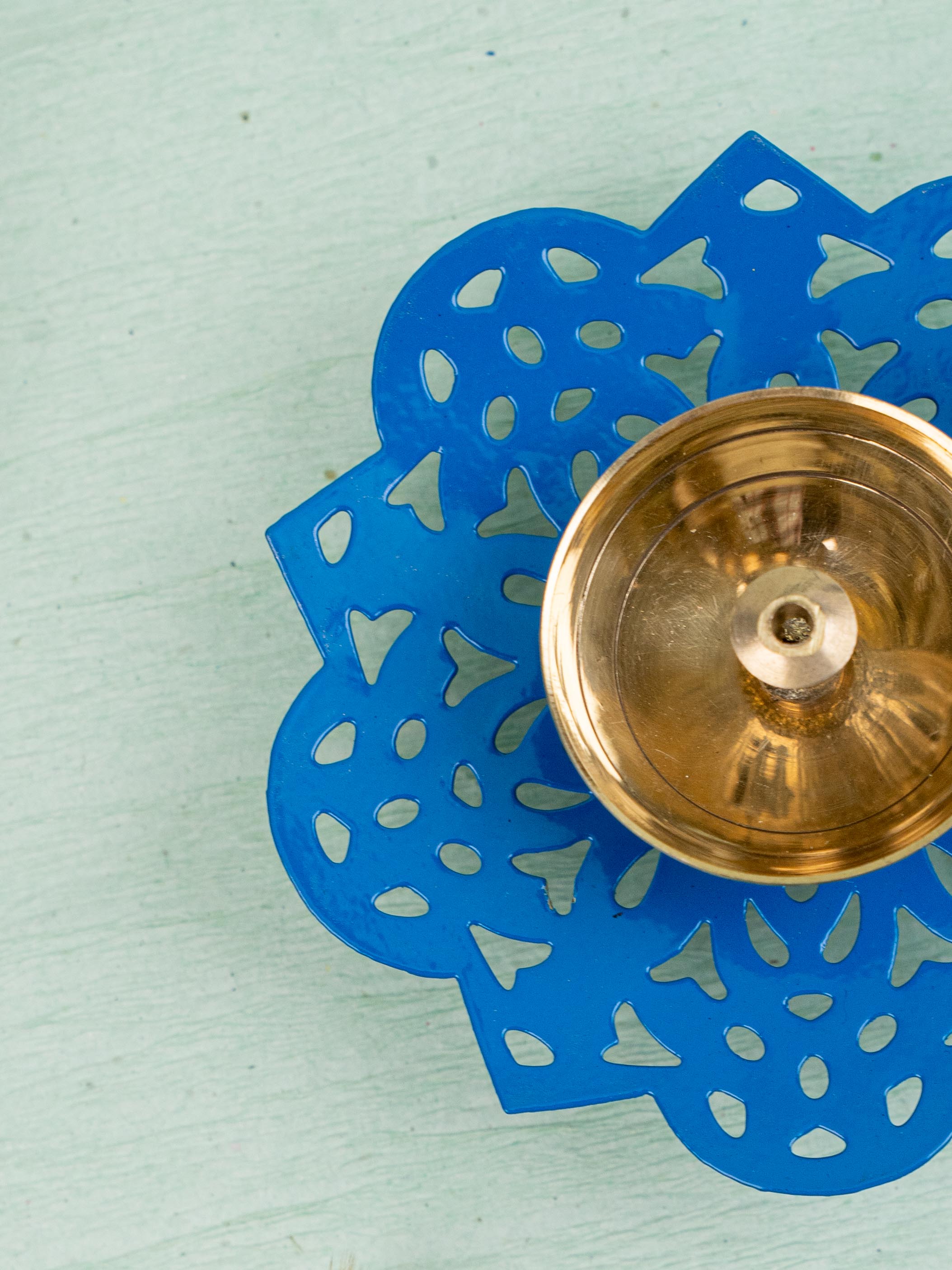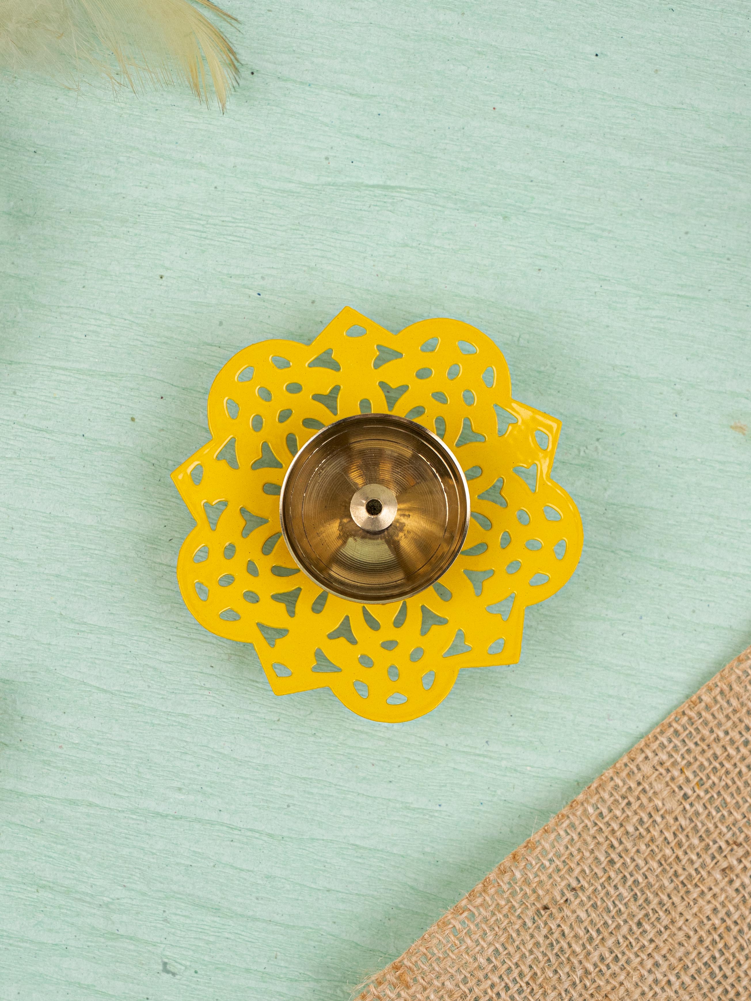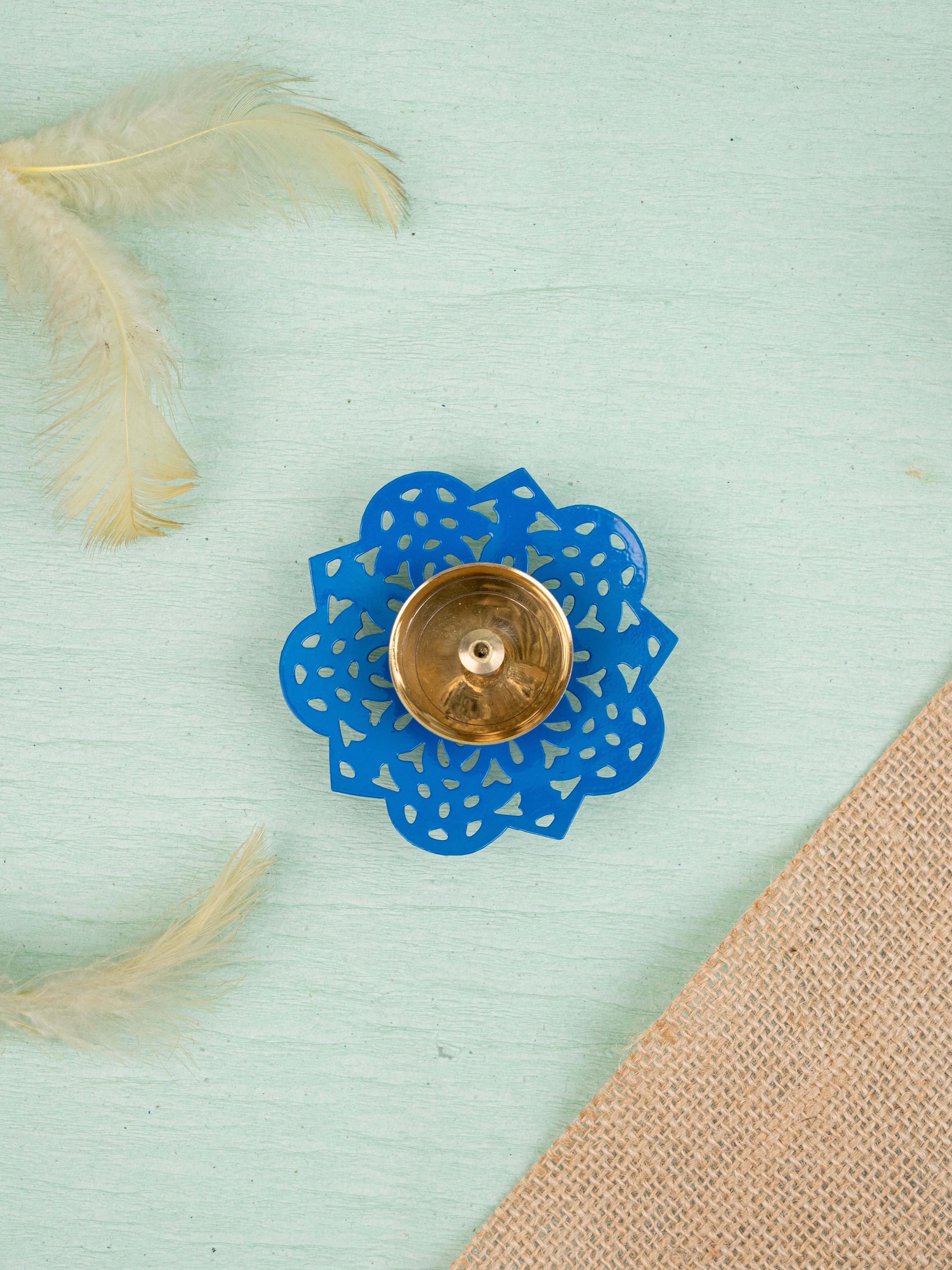 Hand Painted Brass Flower Shaped Diya - WBG1826-2